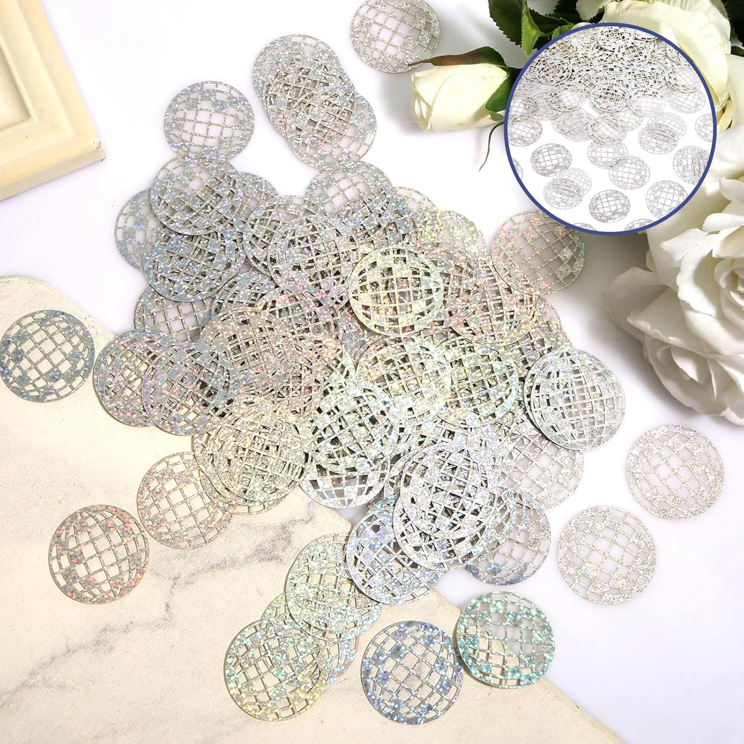 100 pezzi scintillanti da discoteca: aggiungi un tocco di glamour retrò al tuo evento con la nostra confezione di 100 scintillanti coriandoli a sfera da discoteca. Perfette per decorazioni per feste in discoteca, queste vivaci decorazioni elevano senza sforzo tavoli, centrotavola o piste da ballo, creando quell'iconica atmosfera decorativa per feste anni '80 con il minimo sforzo. Brillantezza vivace e accattivante: progettati per catturare la luce, i nostri coriandoli ad alta lucentezza portano un'energia giocosa a qualsiasi celebrazione. Che si tratti di migliorare le decorazioni della discoteca o aggiungere un tocco di stile all'arredamento generale delle feste, le superfici riflettenti garantiscono un'atmosfera abbagliante che gli ospiti adoreranno. Materiale PET durevole e di alta qualità: realizzati in PET liscio e leggero, i nostri coriandoli offrono il giusto equilibrio tra flessibilità e lucentezza. A differenza delle alternative fragili, queste decorazioni per feste in discoteca mantengono la loro brillantezza per tutta la notte, resistendo alle lacrime o allo sbiadimento precoce. Perfette per qualsiasi occasione festiva: dalle serate a tema discoteca ai matrimoni e ai compleanni, queste versatili decorazioni per palline da discoteca si adattano perfettamente. Spargili casualmente per un look spensierato o organizzali deliberatamente, in entrambi i casi, infonderanno al tuo evento un divertimento, umore celebrativo. Magia decorativa istantanea e senza sforzo: nessuna confusione, solo trasformazione festiva! Basta cospargere i nostri coriandoli sulle superfici per evocare istantaneamente lo spirito delle discoteche e delle decorazioni per feste anni '80. Un modo semplice ma di grande impatto per trasformare qualsiasi spazio in un rifugio vivace e scintillante.