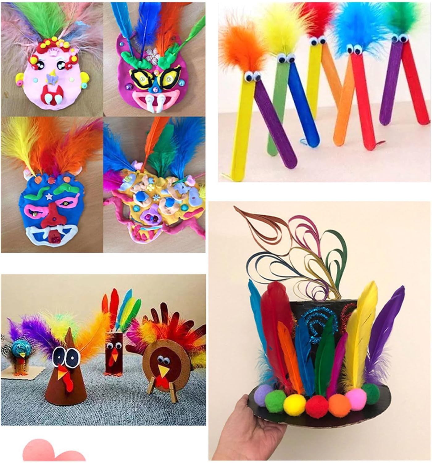 Questi materiali piumati, offrono versatilità per diversi progetti e presentano colori vivaci e bellissimi motivi che migliorano qualsiasi artigianato Realizzati con oche e peli di anatra facili da usare, sono morbidi, portatili e sicuri da maneggiare, rendendolo un'opzione eccellente per creare bellissimi fiori piumati, orecchini e molto altro ancora Ideale per designer di tutti i livelli, compresi bambini dell'asilo, insegnanti, genitori e appassionati di artigianato che desiderano aggiungere un tocco unico alla loro creazione Per l'uso in lezioni d'arte scolastiche, attività familiari, decorazioni per festival e allestimenti per feste, questi accessori piumati ispirano immaginazione e creatività Sviluppa la tua creatività con la nostra confezione di 100 accessori colorati piumati, per una vasta gamma di decorazioni e decorazioni, dagli acchiappasogni alle decorazioni per matrimoni