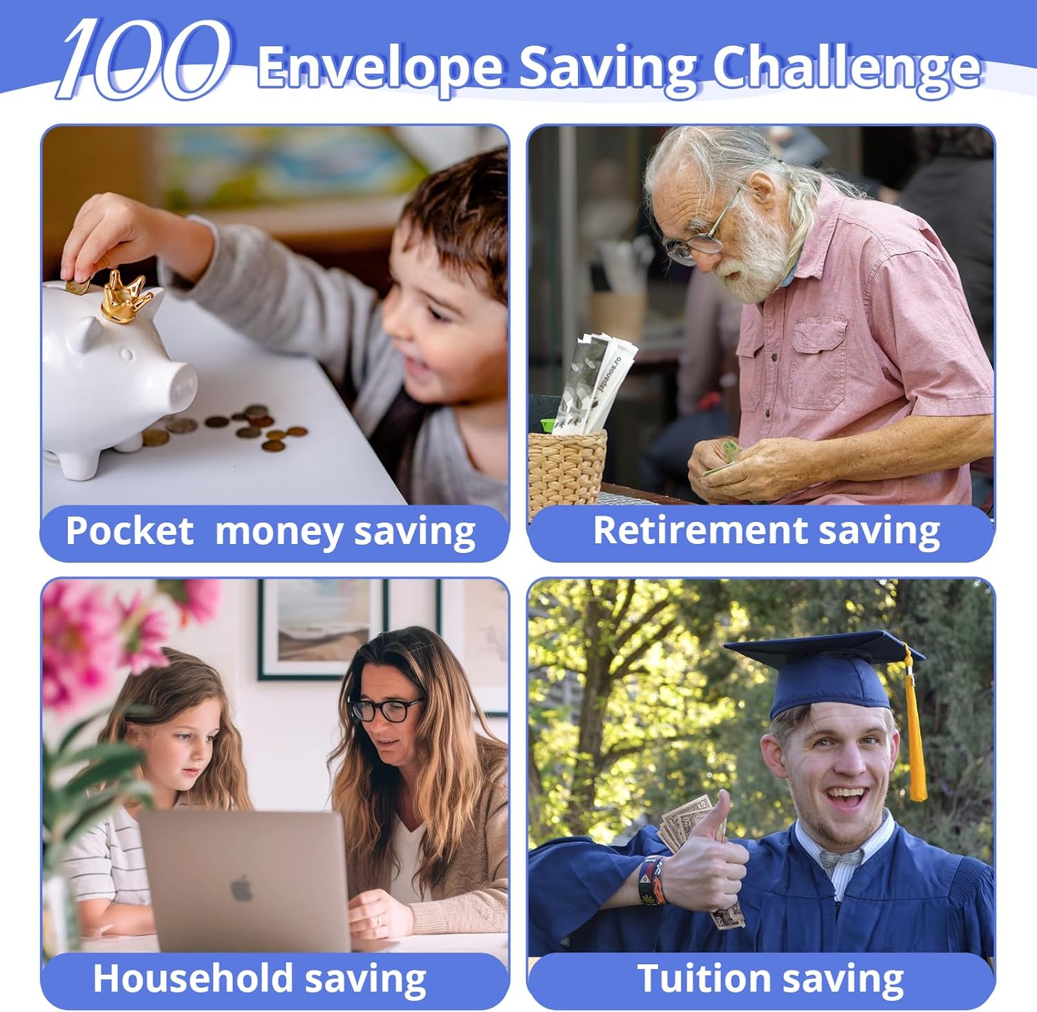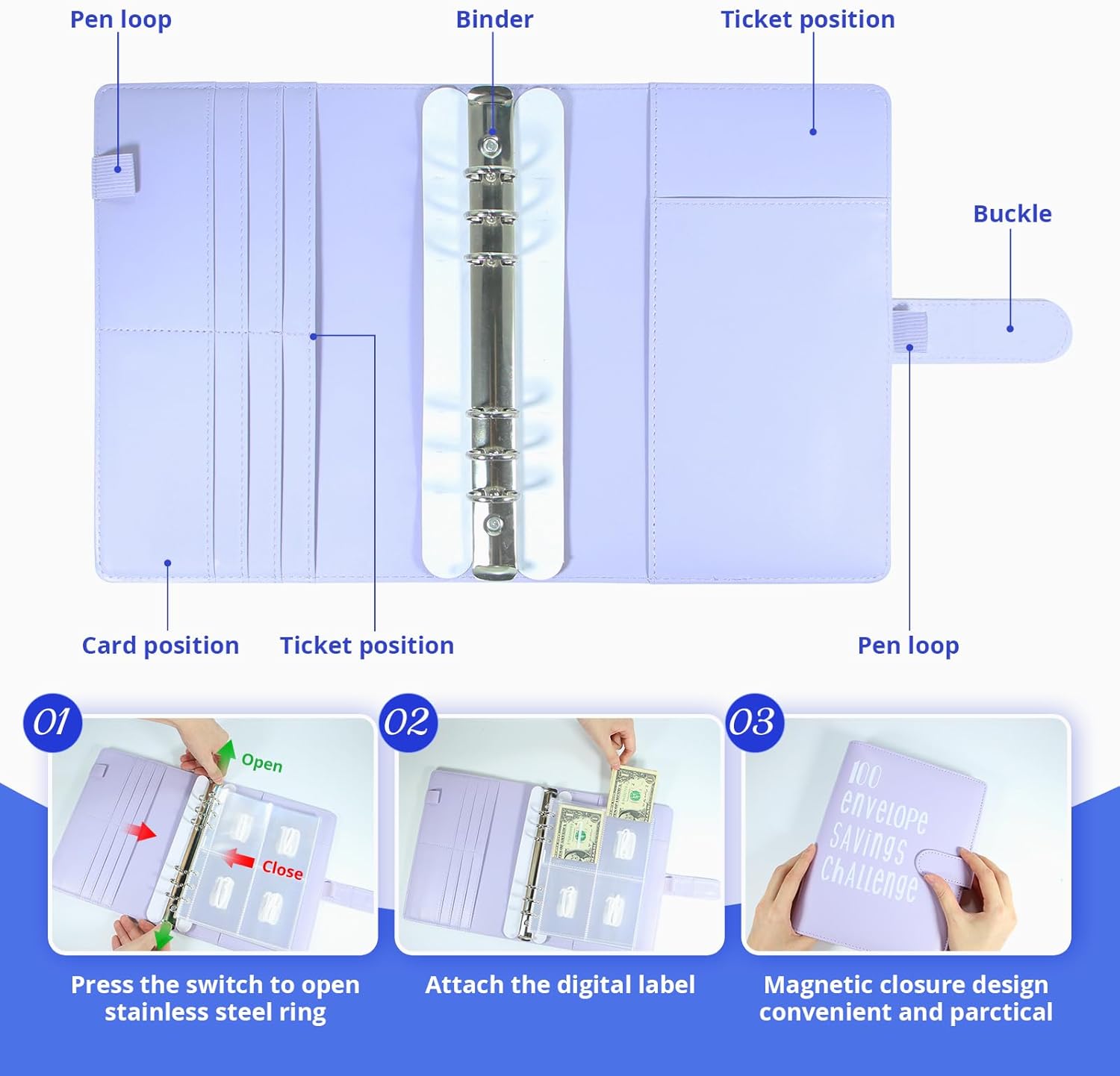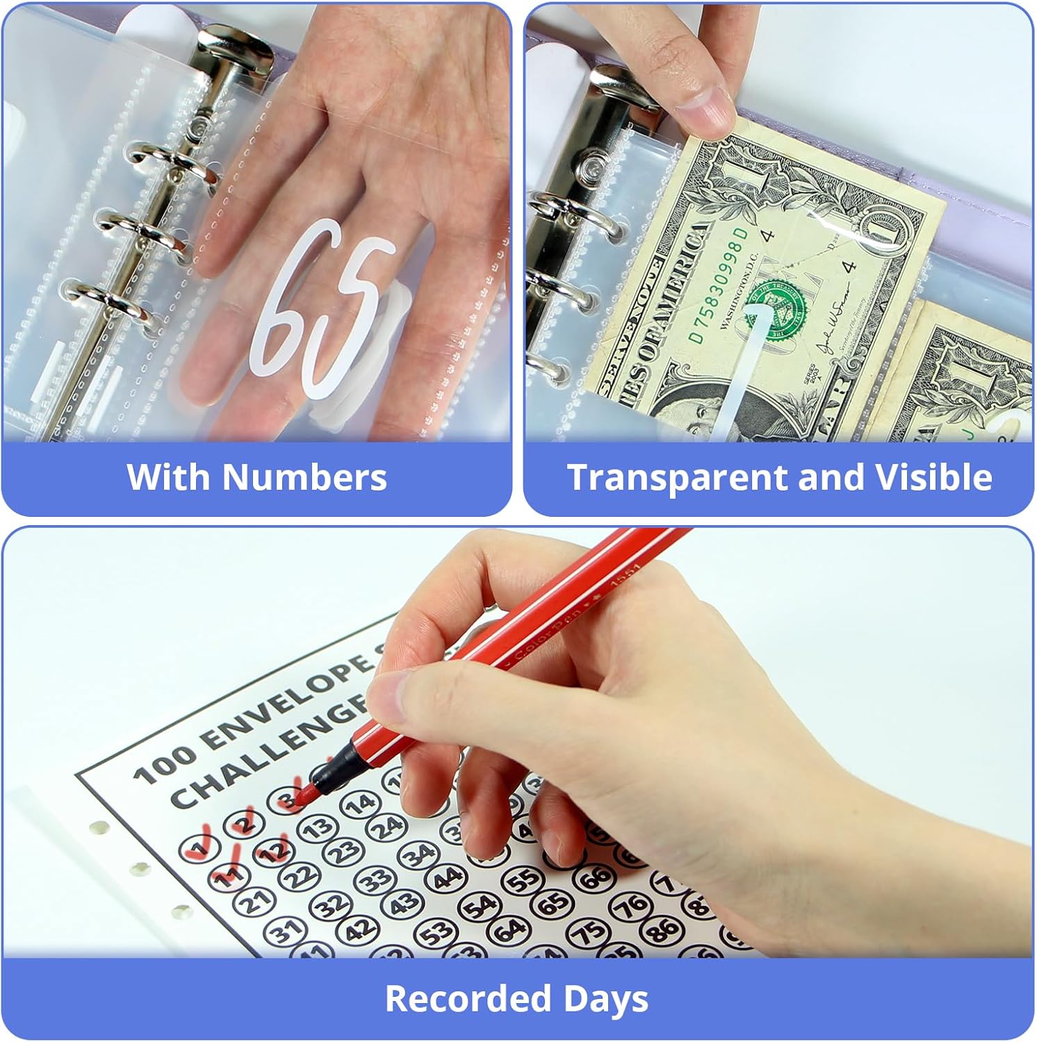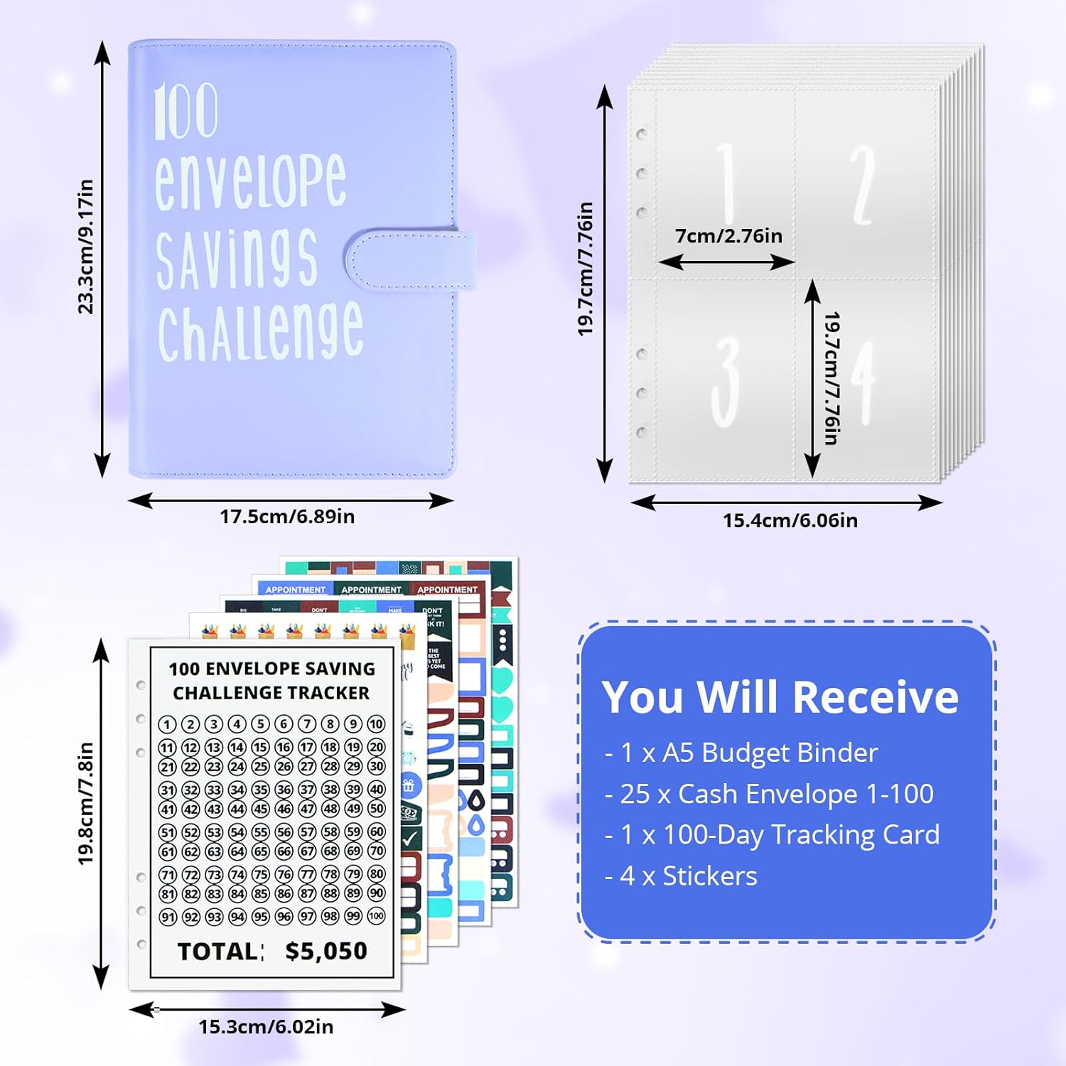 Materiale in pelle e PVC di alta qualità: Realizzato in pelle e PVC, il raccoglitore per i risparmi è impermeabile e resistente agli strappi per un uso prolungato. L'elegante raccoglitore per il bilancio viola tiene al sicuro banconote e contanti Tabella da parete del risparmio in 100 buste: Questo libro per il risparmio vi aiuterà a creare un budget, a tenere traccia delle spese e a organizzare i risparmi e il budget. Utilizzate questo libro se volete risparmiare per vacanze, auto, fondi di emergenza, matrimoni, compleanni o altro Portatile e facile da usare: Il planner di bilancio può essere portato con sé o tenuto in tasca. L'eccellente combinazione di accessori vi permette di completare la vostra documentazione ovunque andiate. È inoltre possibile utilizzare il raccoglitore per il bilancio come libro per il risparmio e come portafoglio per il sistema di buste per il bilancio in contanti Kit completo di strumenti per il risparmio: Il raccoglitore per la sfida delle buste vi aiuta a gestire le vostre finanze in modo efficiente, consentendovi di depositare fino a 5.050 dollari alla vecchia maniera. Completo di un libretto di risparmio compatto in formato A5 e di una serie di tasche per buste da 1 a 100, il kit offre un metodo di risparmio collaudato Regalo ideale: Per Capodanno, Natale, compleanni, Pasqua e San Valentino, questo libretto di risparmio A5 è il regalo perfetto per genitori, amici, amanti, figli e colleghi