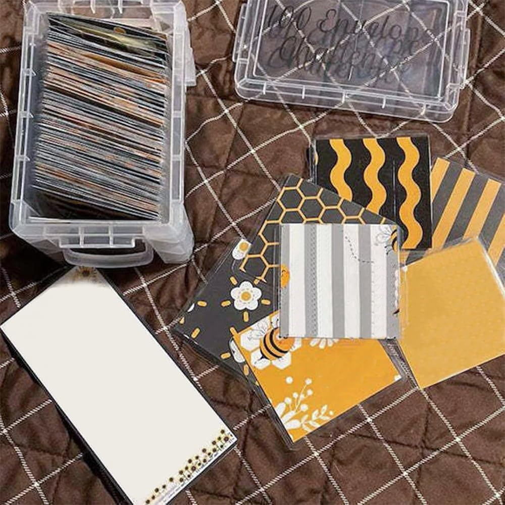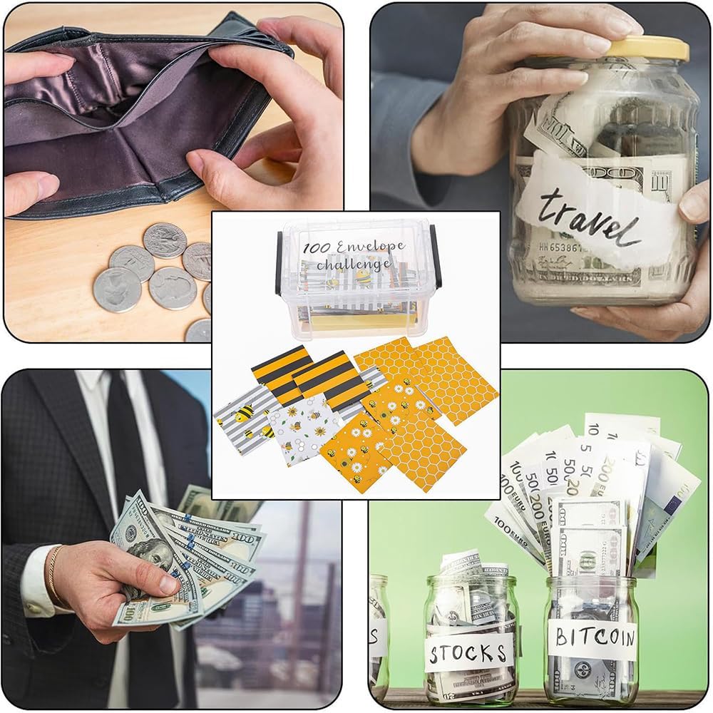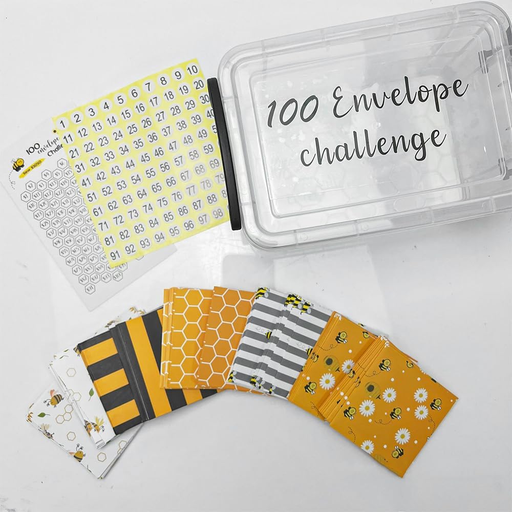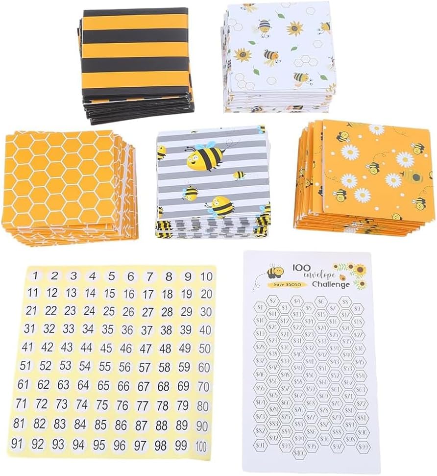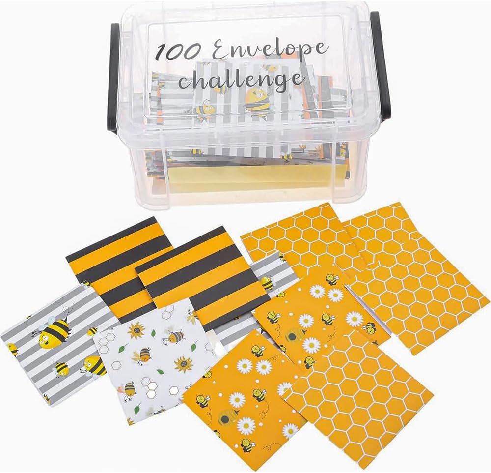 Sistema di risparmio coinvolgente: il set include 100 buste, che forniscono un approccio strutturato al risparmio. Questo sistema ti incoraggia a risparmiare importi variabili nel tempo, aiutandoti a raggiungere i tuoi obiettivi finanziari in modo divertente e gestibile. Design affascinante con api: ogni busta presenta un adorabile motivo a forma di ape, progettato per aggiungere un tocco di stravaganza e positività al tuo percorso di risparmio. Il design allegro non solo rende il processo di risparmio più piacevole, ma fornisce anche una motivazione visiva per rimanere impegnati nei tuoi obiettivi finanziari. Facile da usare: basta selezionare una busta, mettere la quantità di denaro desiderata al suo interno e monitorare i tuoi progressi man mano che procedi. Questo metodo semplice semplifica l'integrazione nella tua routine quotidiana e ti assicura di rimanere in carreggiata con il tuo piano di risparmio. Opzione regalo versatile: ideale per compleanni, festività o qualsiasi occasione speciale, questo cofanetto salva-denaro è un regalo pratico e premuroso. È perfetto per amici e familiari interessati a fare un budget, risparmiare denaro o iniziare un nuovo obiettivo finanziario. Confezione elegante e funzionale: il set è contenuto in una scatola portaoggetti dal design accattivante con un motivo a forma di ape, che non solo è pratica per organizzare le buste, ma è anche un'aggiunta attraente a qualsiasi scrivania o scaffale. Il design della scatola assicura che le buste siano mantenute in perfette condizioni, fungendo anche da delizioso elemento decorativo.