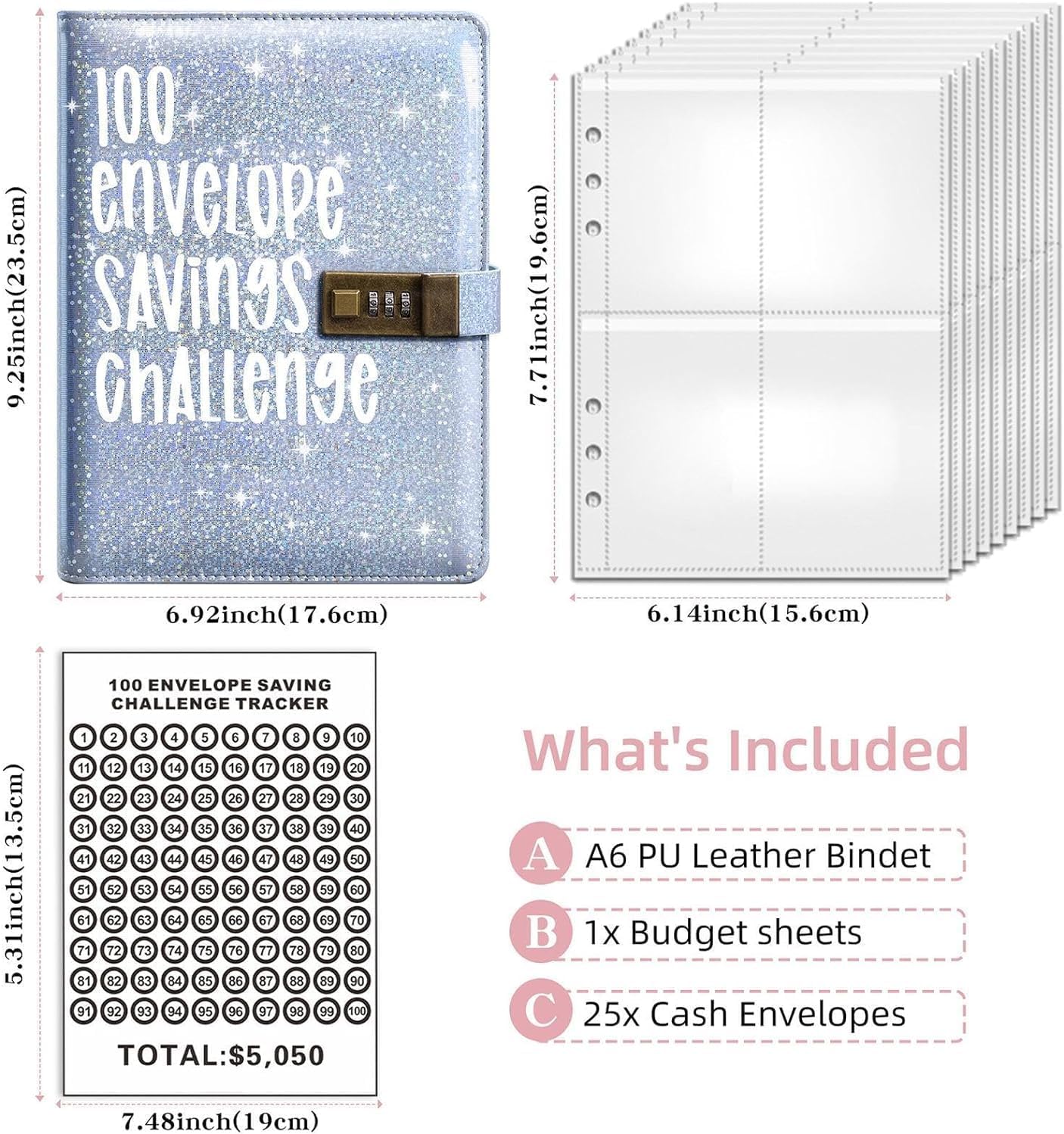 Set di cartelle sfidate da 100 buste: la cartella Challenge da 100 buste offre un modo unico per risparmiare denaro. Basta iniziare con $1 nella prima borsa il primo giorno e aumentare l'importo ogni giorno fino a raggiungere $100. Alla fine del viaggio di sfida hai risparmiato un enorme $5.050, che è un modo divertente e stimolante per compiere questa impresa. 【Modo semplice e divertente per risparmiare $5.050】: cambia il modo in cui gestisci le tue spese con la nostra cartella Challenge da 100 buste. Usa le ricevute come strumento per prendere il controllo delle tue finanze, insegnare ai bambini preziose abilità di risparmio di denaro e coinvolgere tutta la famiglia in divertimento pratico per raggiungere i tuoi obiettivi. 【Regalo pratico e impegno familiare】: la nostra cartella Challenge da 100 buste è facile da usare e viene fornita con 25 buste per denaro con numeri etichettati, in modo da poter risparmiare fino a $5.050. Con 4 slot per pagina e 100 slot in totale, è facile monitorare i tuoi progressi e raggiungere i tuoi obiettivi finanziari. 【Portatile】: questo raccoglitore Challenge con 100 buste è molto portatile e si adatta alla tua borsa o nello zaino, in modo da poterlo portare ovunque e seguire i tuoi obiettivi di risparmio. 【Busta impermeabile】: con un materiale in similpelle morbida e resistente agli strappi e una struttura impermeabile, questa cartella 100 Envelope Challenge resisterà alla prova del tempo.
