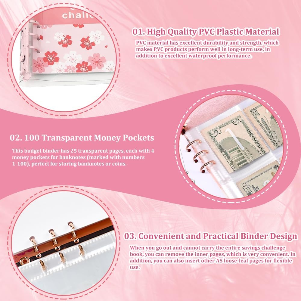 【Durevole e Riutilizzabile】: Questo raccoglitore di bilancio a5 è realizzato in materiale plastico trasparente di alta qualità e la sua natura altamente trasparente consente di vedere chiaramente i progressi del risparmio all'interno. Costruiti per resistere all'usura dell'uso quotidiano, i nostri raccoglitori ti forniscono una registrazione affidabile e duratura dei tuoi risparmi, facendo durare più a lungo il tuo piano di risparmio. 【4 Diverse Modalità di Risparmio di Denaro】: Questo diario del risparmio di denaro contiene quattro diverse modalità di sfida di risparmio di denaro, come: sfida di risparmio di denaro di 52 settimane, sfida di risparmio di denaro di 365 giorni, sfida di risparmio di denaro personalizzata e sfida di risparmio di denaro orientata agli obiettivi. Quindi, devi utilizzare solo una scheda di tracciamento della sfida per passare in modo flessibile da una modalità all'altra. 【Leggero e Portatile】: Il peso leggero e le dimensioni portatili del libro delle sfide per risparmiare denaro ti consentono di metterlo facilmente nella borsa, nello zaino o nella valigetta, non importa dove ti trovi, puoi registrare i tuoi risparmi sempre e ovunque Salvando i progressi. Inoltre, con il pratico design a raccoglitore, puoi anche rimuovere le singole pagine interne per l'uso, il che è più conveniente. 【Modo Interessante per Risparmiare Denaro】: Questo saving challenge non è solo un semplice strumento per risparmiare denaro, è anche un potente assistente per raggiungere i tuoi obiettivi finanziari. Puoi utilizzare in modo flessibile le quattro modalità sfida per risparmiare per vari obiettivi, come l'acquisto di un'auto, la preparazione per il viaggio, ecc. Con registrazioni chiare e un monitoraggio visivo dei progressi, puoi pianificare le tue finanze in modo più efficace. 【Sistema Completo per Risparmiare Denaro】: Il set include un raccoglitore bello e resistente, 25 pagine interne trasparenti sostituibili (incluse 100 tasche per risparmiare denaro, contrassegnate con numeri di serie 1~100), 4 sfide in diverse modalità. Non è necessario acquistare accessori aggiuntivi per iniziare subito la tua sfida di risparmio di denaro. Tutto è pronto, basta muovere le dita per iniziare il tuo viaggio di risparmio.