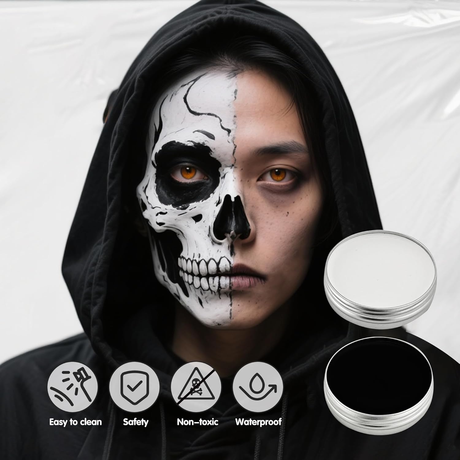 🌗Trucco per Halloween in bianco e nero—— Questo set per il trucco di Halloween contiene: Nero 50 g + Bianco 50 g + 2 pennelli per il trucco, confezione squisita, set per il trucco di Halloween molto conveniente. La grande capacità può soddisfare più esigenze e può essere utilizzata direttamente o miscelata con altri colori per creare diversi colori che ti piacciono, perfetti per la pittura del viso e del corpo. 💄Sicuro, confortevole e delicato sulla pelle—— Questo set per il trucco di Halloween per adulti è realizzato con materie prime di alta qualità, con consistenza morbida e delicata, alta copertura, non secca, resistente e può coprire facilmente l'intero viso. Trucco Halloween Adatto per il trucco di adulti e bambini. Si consiglia di eseguire un test allergico dietro l'orecchio prima dell'uso. ♻️Sicuro e non tossico—— Il trucco alla moda per adulti e bambini è realizzato con ingredienti di alta qualità che sono sicuri, non tossici, privi di parabeni, delicati e rispettosi dell'ambiente, offrendoti l'esperienza più sicura e confortevole. 🎃Facile da usare e da pulire—— La nostra vernice per il trucco per il viso di Halloween è facile da usare e può essere applicata sulla pelle con una spugna, un pennello o con la punta delle dita. Dopo aver completato il trucco, si consiglia di utilizzare una cipria in polvere per fissare il trucco e ottenere risultati migliori. I pigmenti possono essere facilmente rimossi con acqua tiepida e sapone. Se rimane del pigmento, rimuovilo con uno struccante. ⚰️Molteplici occasioni—— Il trucco in maschera per bambini e adulti è adatto a molte occasioni, come feste di carnevale, Halloween, spettacoli teatrali, attività scolastiche o dell'asilo, ecc. Look perfetto per la tua festa a tema, cosplay, festa di compleanno, spettacolo teatrale e altro ancora!