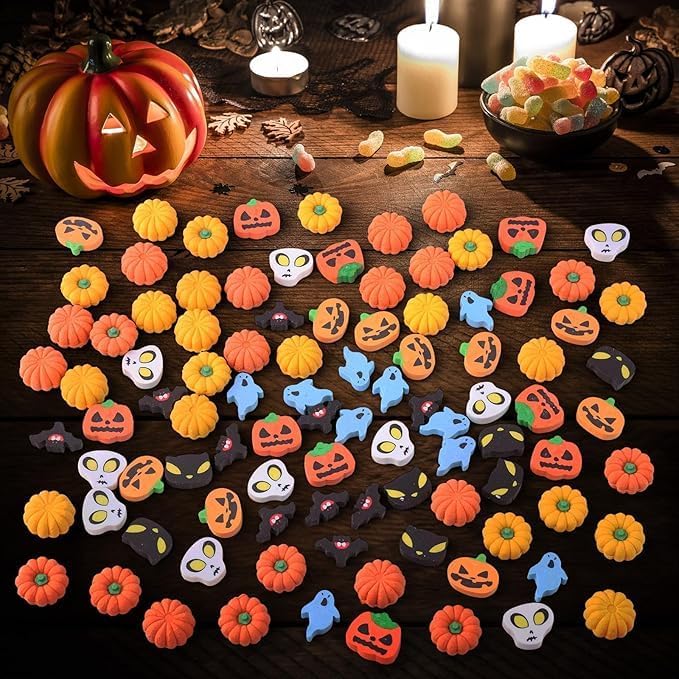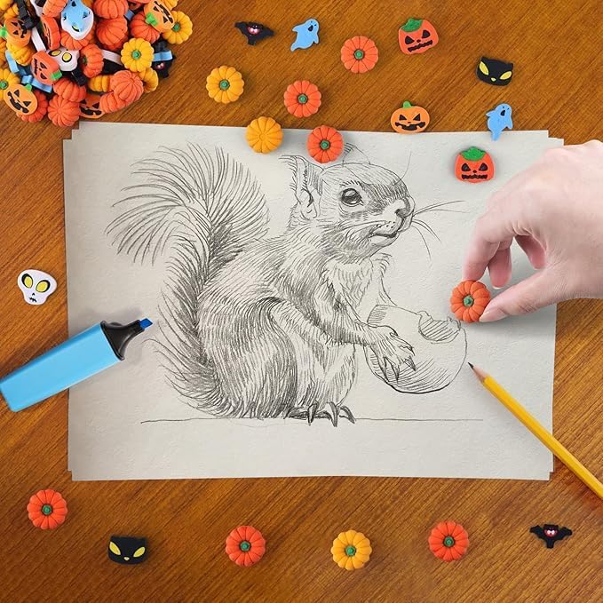 Quantità: la nostra confezione include 100 mini gomme da cancellare, composte da 40 gomme a forma di zucca e 60 mini animali fantasma pipistrello. Questi sono sufficienti per l'uso quotidiano, assicurandoti di non dover fare acquisti frequenti. Materiale di alta qualità: realizzate in gomma, queste gomme a forma di zucca offrono un facile utilizzo, in grado di cancellare i normali segni di matita in modo pulito con pochi colpi e senza danneggiare la carta sui tuoi libri. Elementi classici per Halloween e Ringraziamento: perfettamente progettato per feste di Halloween o distribuzione di caramelle. Queste gomme autunnali con elegante design a forma di zucca attirano gli studenti e migliorano il loro interesse di apprendimento. Uno strumento di studio ideale per gli studenti. Ideale per giocattolo: le mini gomme per bambini di Halloween sono stampate con motivi su entrambi i lati, destinati ad attirare l'attenzione. Queste mini gomme autunnali sono giocattoli adatti al Ringraziamento, al festival del raccolto, ad Halloween o alle celebrazioni autunnali della comunità per diffondere allegria festiva tra i bambini. Ampia applicazione: le gomme a forma di zucca di Halloween stimolano la creatività dei bambini, contribuendo a creare intriganti regali di novità, oggetti da collezione, premi e riempitivi per sacchetti di caramelle. Adatto per qualsiasi compleanno a tema, aggiungono un'atmosfera gioiosa.