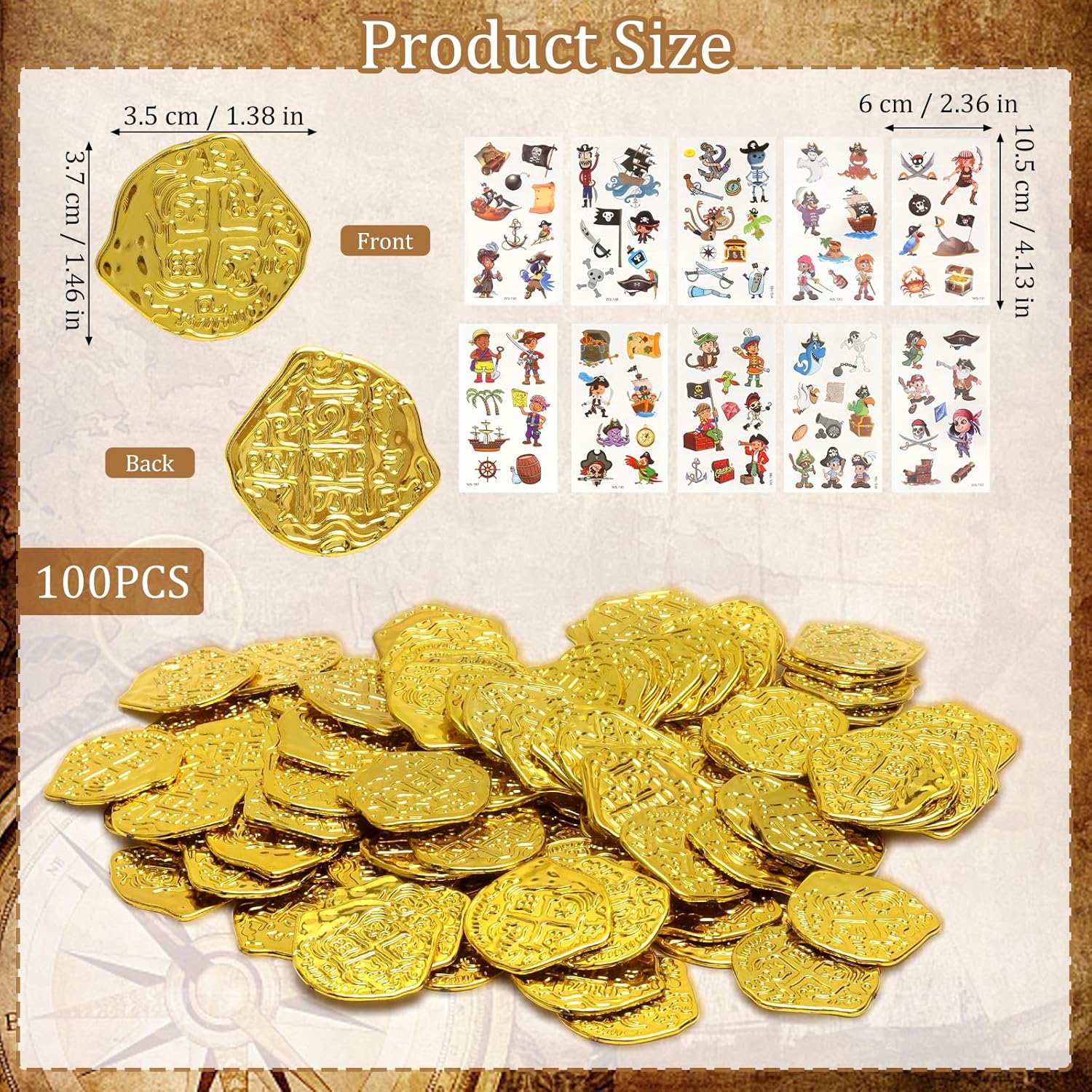 【Set completo con adesivi】Riceverai 100 monete dorate da circa 3,5 x 3,7 cm e 140g più 10 adesivi a tema pirite, ideali per caccia al tesoro per feste compleanno e giochi a tema pirata per bambini 【Design realistico e accattivante】Le monete finte presentano motivi classici come teschi o forzieri. Il colore dorato brillante aggiunge un tocco autentico alle decorazioni per feste o giochi con soldi finti 【Materiali sicuri e inodori】Realizzate in plastica PP, le monete finte sono leggere, non tossiche e prive di bordi taglienti. Sicure anche per i più piccoli, perfette per giochi educativi o premi 【Multifunzione per ogni occasione】Adatte a caccia al tesoro, feste di compleanno, giochi di ruolo, attività scolastiche o come riempitivo calendario dell’avvento. I soldi finti si integrano perfettamente in ogni evento a tema pirata 【Giocattolo decorativo ed educativo】Oltre a essere soldi finti euro reali, queste monete sono perfette per decorazioni da tavolo, premi scolastici o piccoli regali a sorpresa per bambini