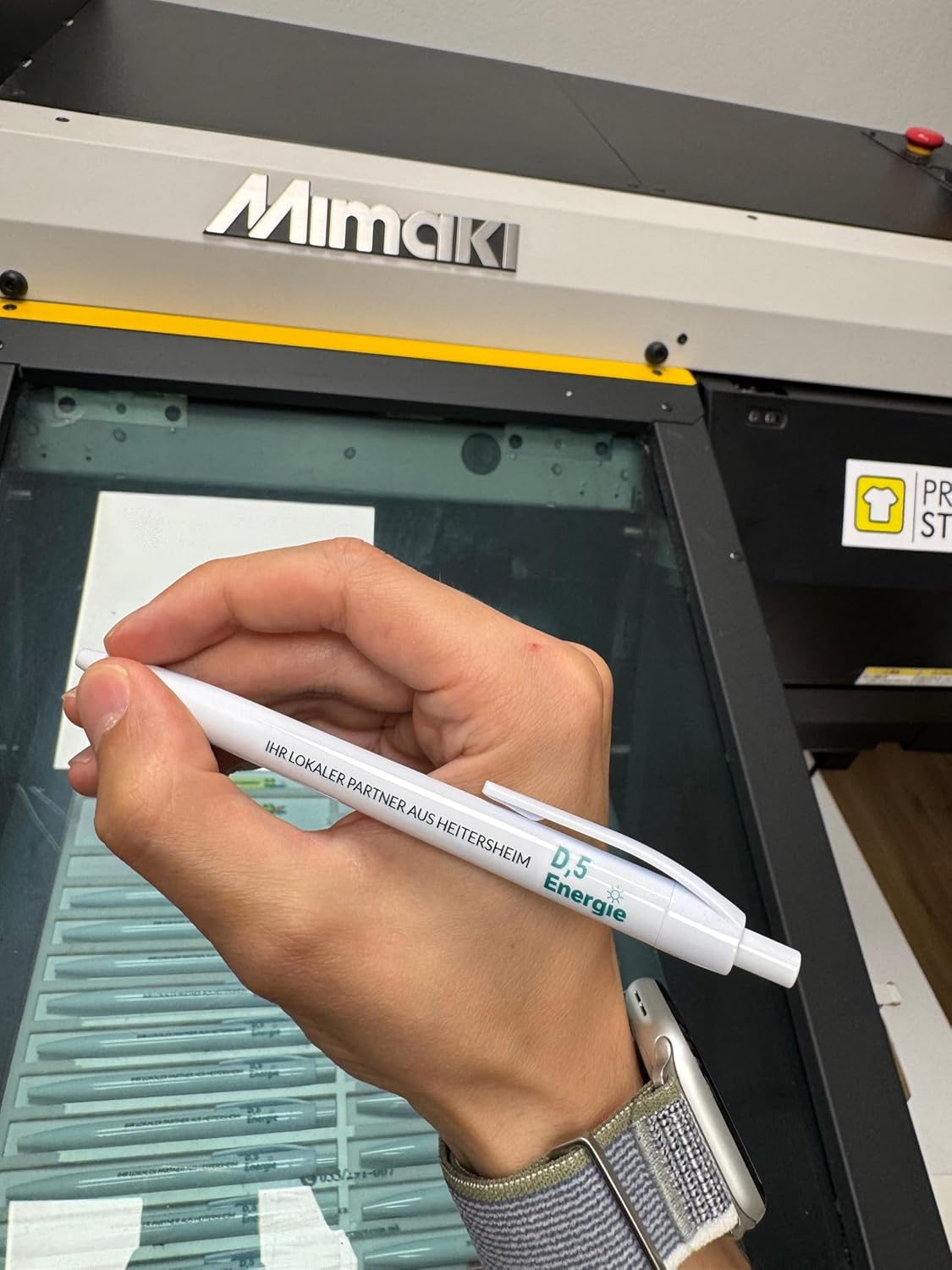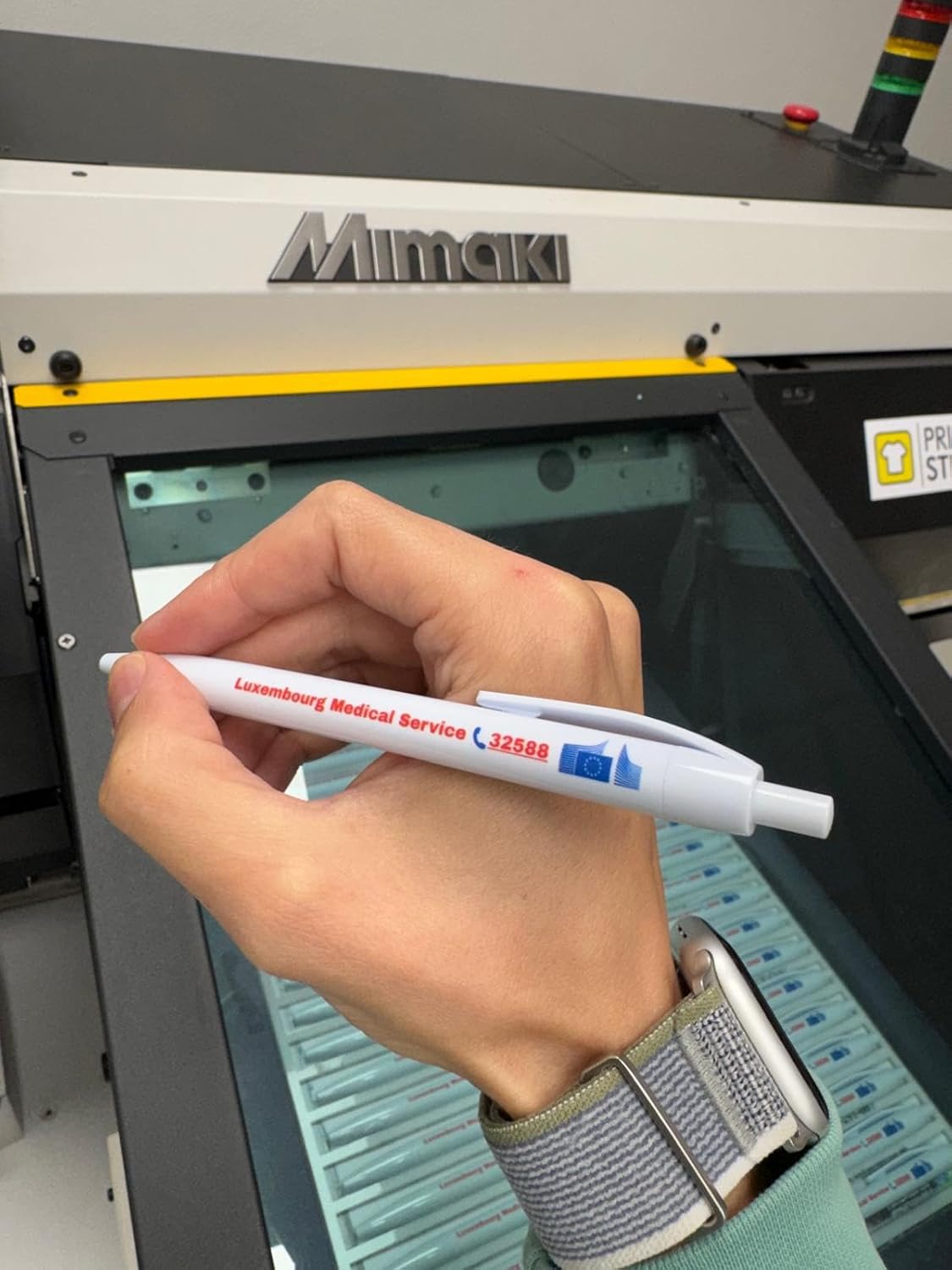 Stampa UV di alta qualità: il tuo logo, testo o foto della migliore qualità, resistente ai graffi e durevole. Stampa a colori – stampiamo in tutti i colori, che si tratti di testo, grafica o logo. Design personalizzato: carica il tuo design o utilizza il nostro servizio di grafica gratuito. Perfetto per aziende ed eventi: ideale come penna a sfera promozionale, regalo aziendale, articolo fieristico o omaggio. Servizio di progettazione gratuito: correzioni del logo e personalizzazioni grafiche incluse, senza costi aggiuntivi.