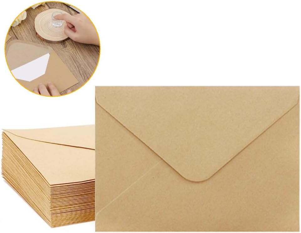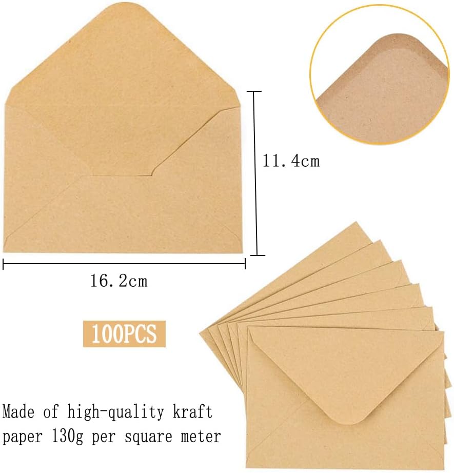 Set di buste: contiene un totale di 100 buste di carta kraft C6 buste classiche retrò, dimensione busta marrone di 11,4 x 16,2 cm, grammatura di 130 g/m². Sigillatura con colla bagnata: ogni busta senza finestra viene fornita con colla bagnata sul lembo. Basta bagnare la superficie adesiva sul lembo superiore con acqua e premere per far aderire la chiusura. Puoi anche utilizzare etichette adesive per rinforzare e decorare la busta. Scopo: queste buste sono perfette per essere utilizzate come biglietti di auguri, inviti, inviti, buste regalo e altro ancora. Materiale: la busta marrone è realizzata in carta kraft di alta qualità, morbida e resistente, robusta e durevole, non facile da danneggiare, sicura ed ecologica, bella e pratica. Creatività fai-da-te: la superficie della busta di carta kraft è vuota, consentendoti di scrivere e disegnare in modo creativo per creare una busta unica.