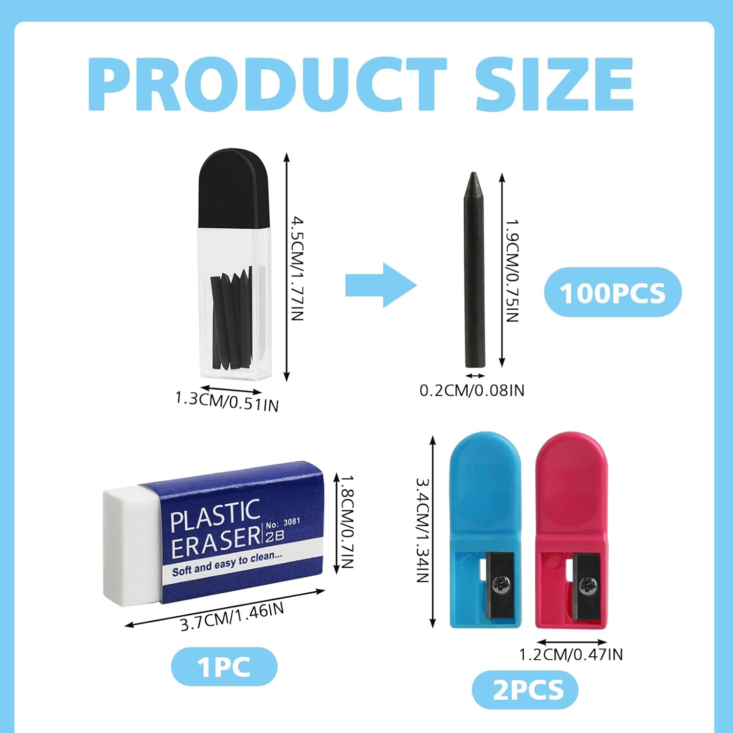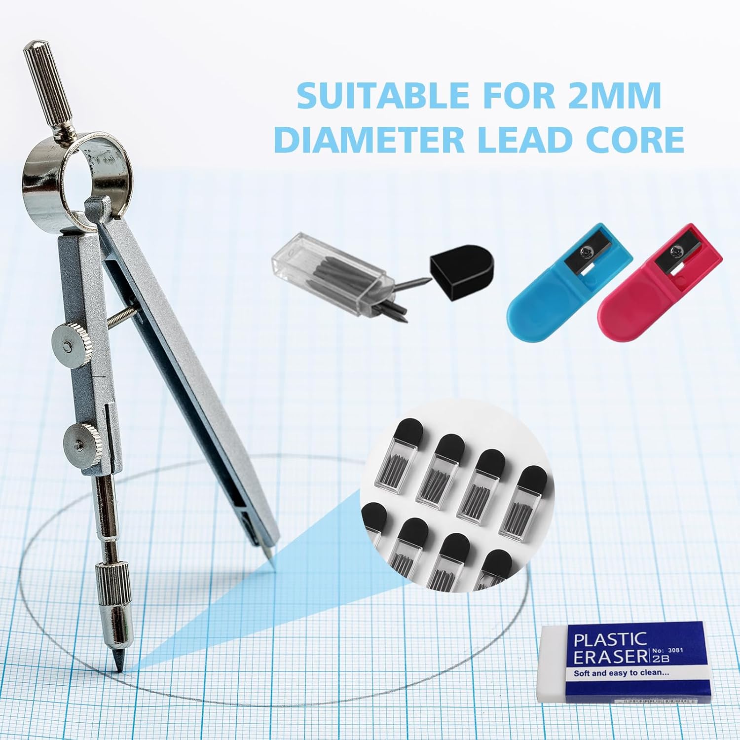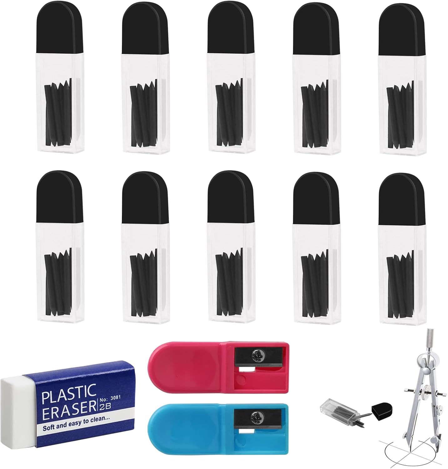 【L'imballaggio comprende】 Il set di puntali di ricambio rotondi contiene un totale di 100 puntali per bussola, confezionati in 10 scatole trasparenti. Viene fornito con 2 temperamatite e 1 gomma. Il dosaggio è sufficiente per l'uso quotidiano. 【Materiali di alta qualità】 Il diametro del piombo tondo di 2mm è realizzato in robusta grafite, che è liscia, stabile e non facile da rompere, sicura e non tossica. 【Punte compasso ricambio】 Tipo 2B: ognuna misura 2 cm di lunghezza e 2 mm di diametro. Adatte a tutti i calibri rotondi con anima in piombo da 2 mm. 【Facile da salvare】 L'imballaggio della penna è realizzato in plastica di alta qualità, con dimensioni ridotte e facile da chiudere, rendendolo adatto per la conservazione e l'uso della penna. 【Ampiamente usato】 Adatto per applicazioni generali di scrittura, come appunti, schizzi, lettere, ecc. È possibile utilizzarlo in ufficio, in classe, a casa e in altre occasioni. Pacchetto compatto, facile da trasportare. È un must per il lavoro e lo studio.