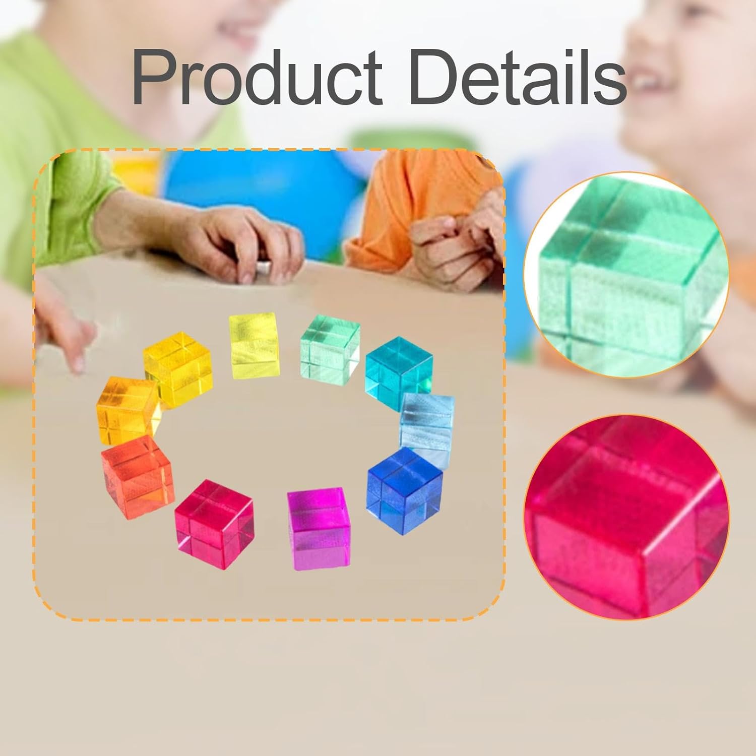 【SET GENEROSO DA 100 PEZZI E FACILE DA CONSERVARE】: Set di 100 gemme arcobaleno, con 10 colori diversi per massimizzare le opzioni creative. Ogni blocco misura 25x25x25 mm, adatto ai bambini. 【VERSATILE PER GIOCHI DA SOLI E DI GRUPPO】: Ideale per qualsiasi ambiente, dalle sale alle aule della scuola centri di educazione precoce. Questi blocchi impilabili sono una risorsa per la scoperta indipendente, il legame genitore-figlio e promuovono il lavoro di tra amici. 【BLOCCO DI GEMME TRASLUCIDI】: Cattura l'attenzione del tuo bambino con questi splendidi cubi simili a gemme. Realizzati in acrilico altamente trasparente, ogni blocco vanta colori brillanti e una finitura che cattura magnificamente la luce. 【ACCENDI CREATIVITÀ E IMMAGINAZIONE】: Con una ricca varietà di colori, questi blocchi cubici uniformi offrono possibilità di gioco aperte. Per costruire imponenti, creare mosaici colorati o progettare i propri modelli unici. 【EDUCATIVO PRECOCE】: Più che un semplice giocattolo, questi mattoncini sono un potente strumento per lo sviluppo precoce. Impilando, ordinando e costruendo, i bambini migliorano il ragionamento spaziale, il pensiero logico e le capacità motorie fini.