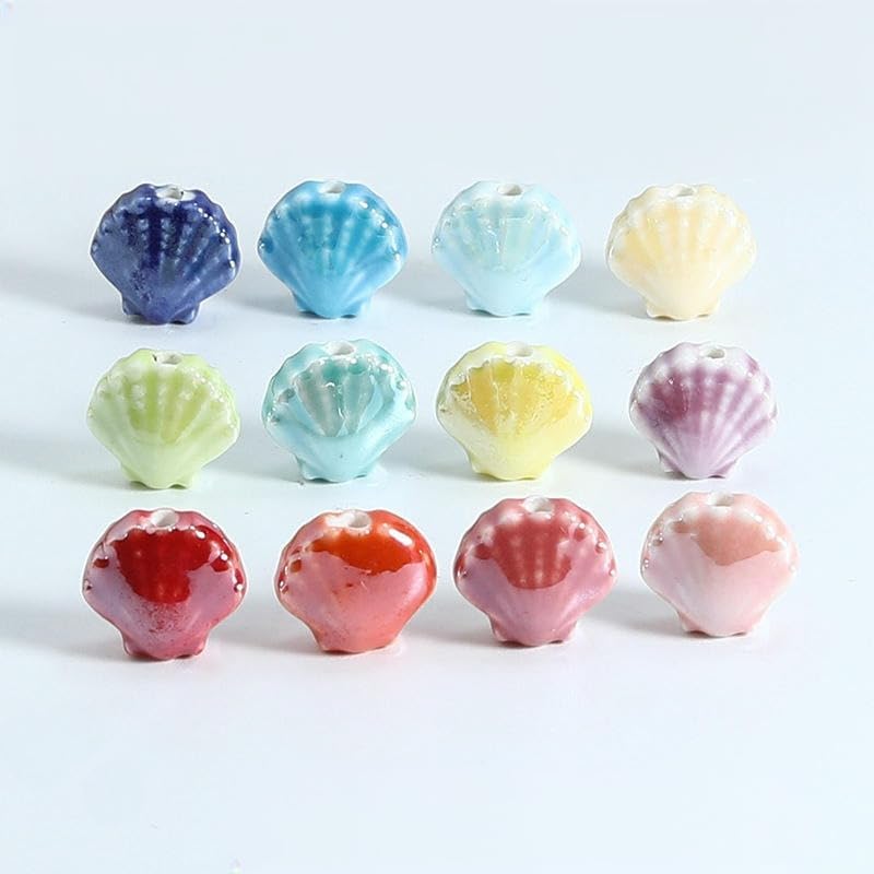 Perline di ceramica colorate a forma di conchiglia, dimensioni: 12 mm, diametro del foro: circa 2 mm, spessore: 6,8 mm, 12 colori, 100 pezzi/confezione Queste perle a forma di conchiglia sono realizzate in ceramica e smaltate a mano, hanno un aspetto liscio, non si rompono o sbiadiscono facilmente e sono comode da indossare Queste perle di porcellana a conchiglia sono uniche e facili da abbinare, puoi aggiungere le tue perle di conchiglia preferite, perle o ciondoli come perline distanziatrici, o semplicemente infilarle insieme per creare un bellissimo braccialetto Progettate a forma di conchiglia, queste perle di ceramica colorate hanno un aspetto unico e una consistenza chiara, che ricorda il mare, donando a chi le indossa un umore gioioso Queste perline di ceramica sciolte a conchiglia sono molto adatte per braccialetti fai da te tessuti a mano, creazione di gioielli, portachiavi, creazione di ciondoli e possono anche essere regalate ad amici a cui piacciono le perline fatte a mano