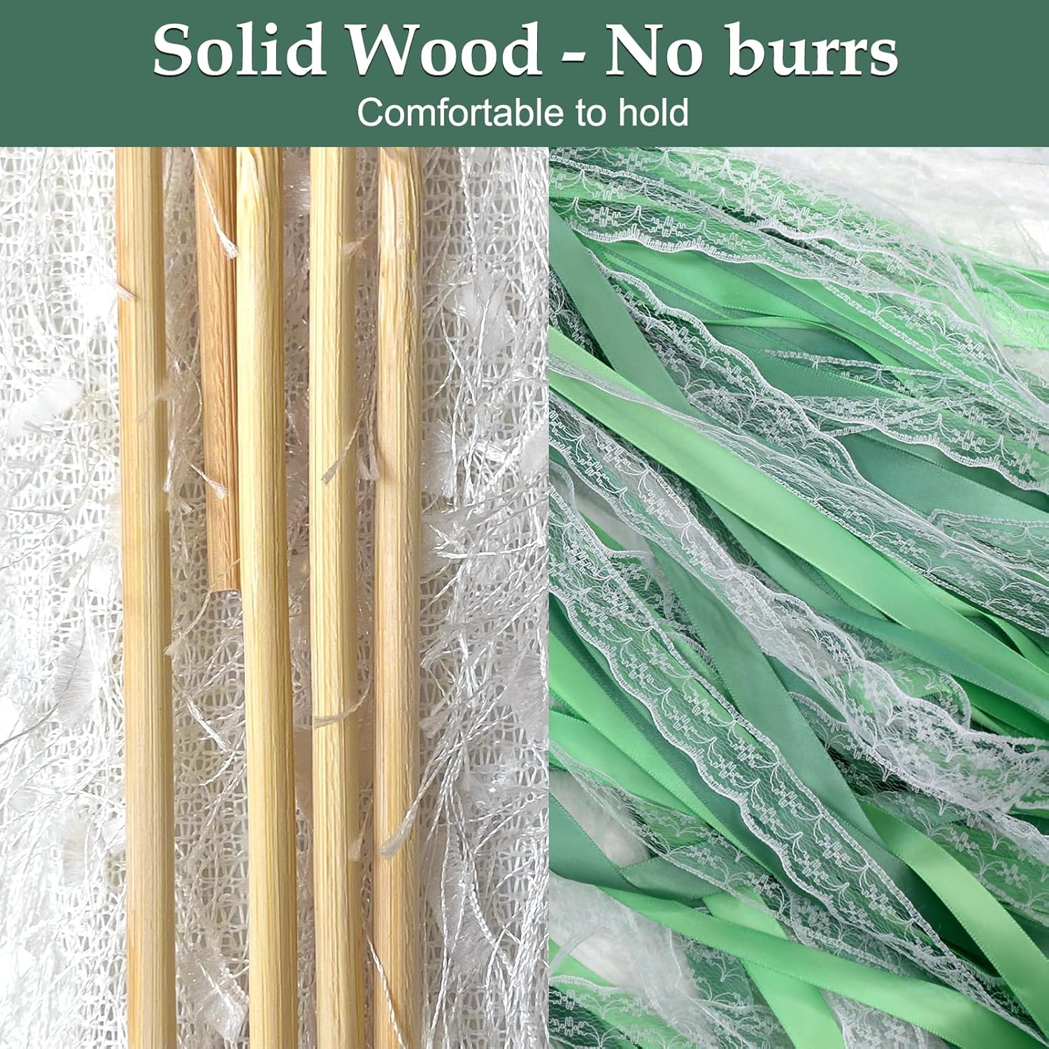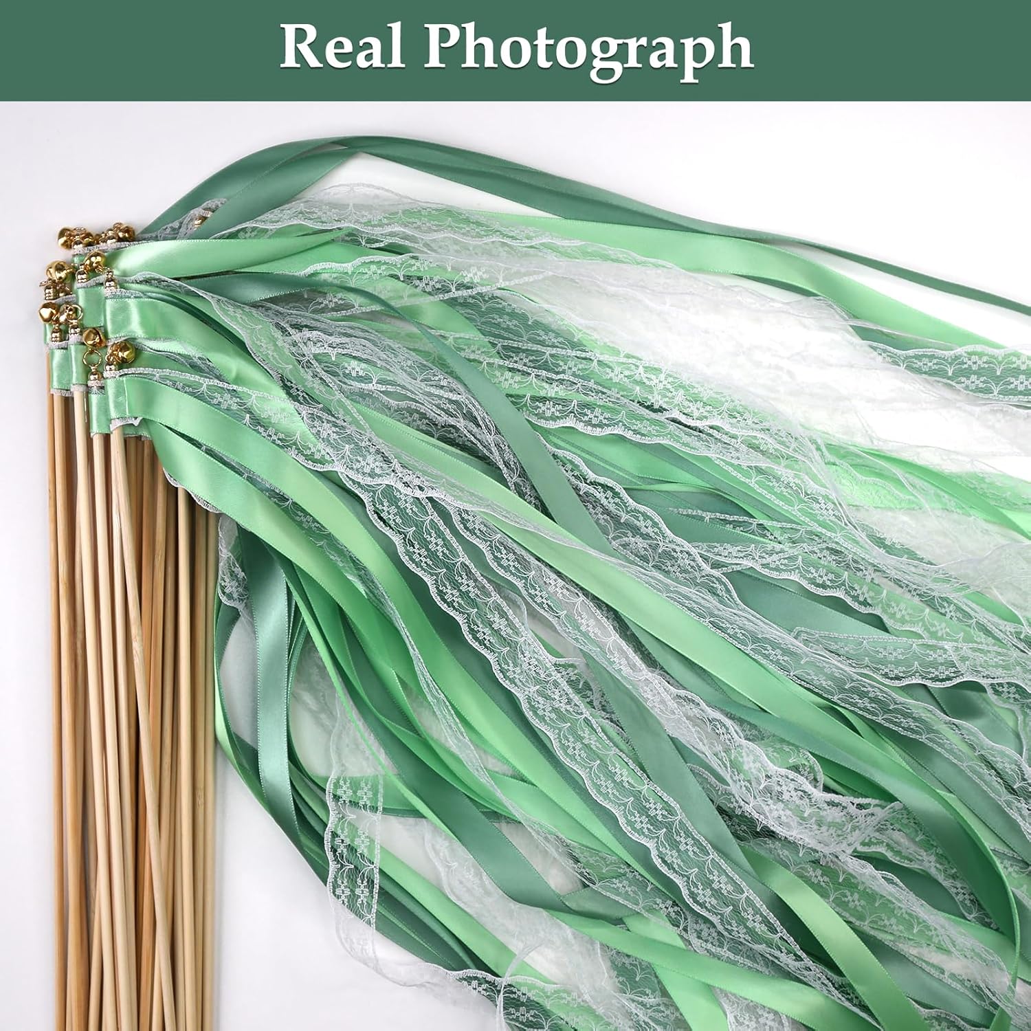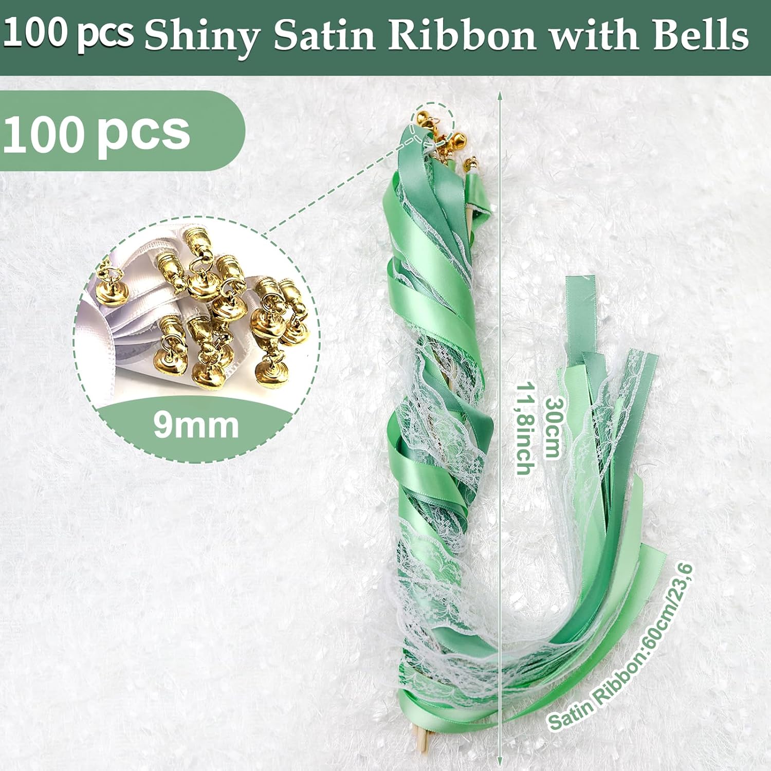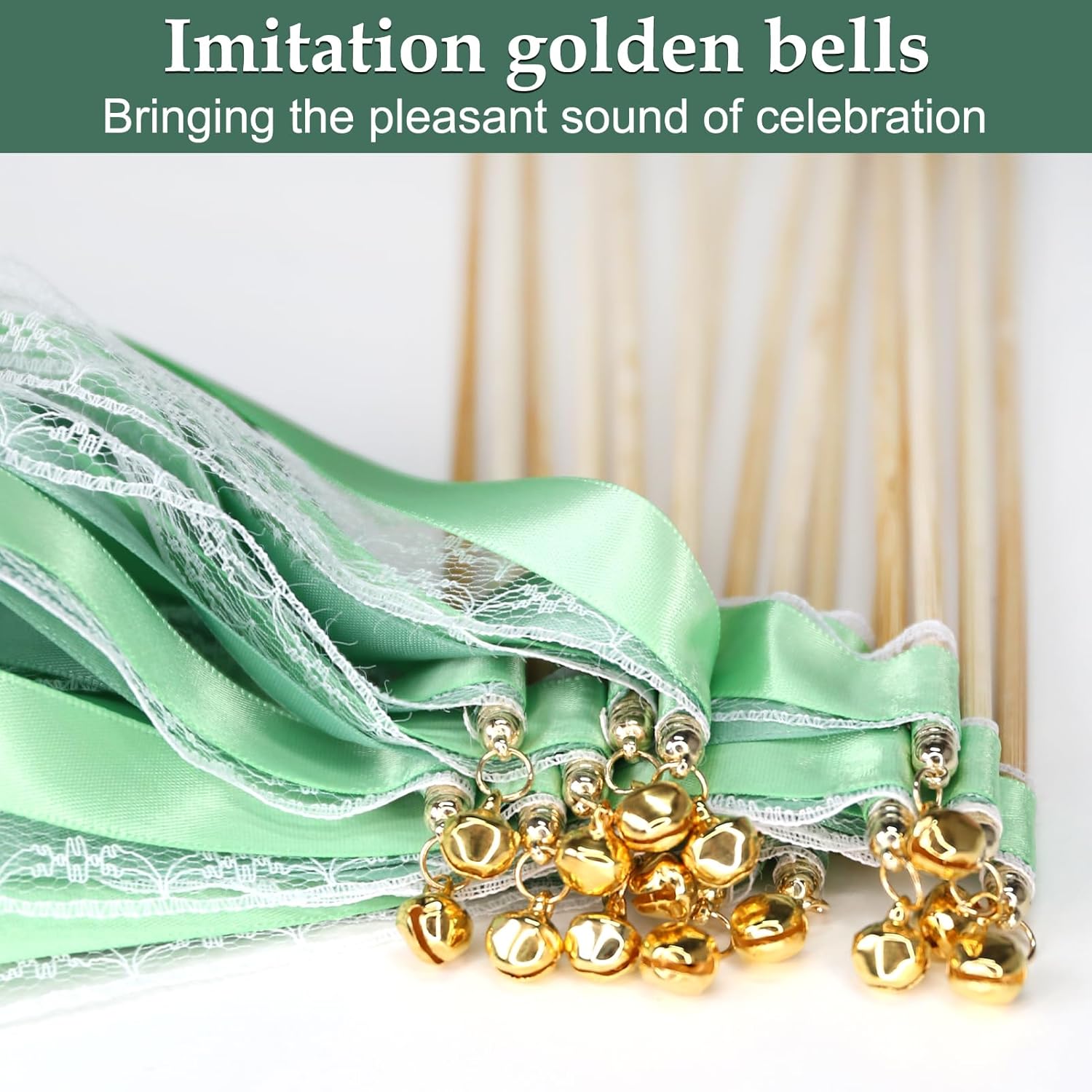 100 bastoncini di legno con campanelle: riceverete 100 nastri in legno con campane; i bastoncini sono lunghi 30 cm, ogni bastoncino ha una fascia di 60 cm, il diametro delle campane è di circa 0,9 cm; le belle campane possono portare un buon umore, le bacchette verdi per matrimonio simboleggiano purezza e pace, semplici e belle, creano un'atmosfera romantica e festosa. I nastri con campane sono facili da indossare e leggeri. Nessuna sbavatura e riutilizzabile e non cade facilmente】: il nastro è realizzato in tessuto di alta qualità, forte e durevole, saldamente collegato al bastone di legno in una forma d'onda, non c'è bisogno di preoccuparsi che il nastro cadere; le campane hanno una buona superficie lucida e un suono croccante; l'asta di legno è realizzata in legno naturale, la superficie liscia e nessuna sbavatura, non fa male alla mano, comoda da tenere. Adatto a tutti i tipi di celebrazioni: queste bacchette da matrimonio sono perfette per cerimonie nuziali, feste di vacanza, interazioni intime, giochi per studenti, attività di classe, spettacoli, ricevimenti, feste, compleanni, battesimi, Halloween, Natale, Capodanno e altro ancora. Usa una bacchetta magica invece del tradizionale lancio di coriandoli - nessuna confusione Grandi dimensioni Bells Sound Bigger: le nostre campane sono più grandi delle normali campane, il diametro è di 0,9 cm e il suono è più forte, il che può creare un'atmosfera allegra durante feste o matrimoni. Il suono dolce e i nastri svolazzanti ti regaleranno ricordi indimenticabili che possono portare molta gioia a tutti i tipi di feste e celebrazioni e far immergere le persone nella gioia. Ogni volta che fai oscillare il nastro, suonerà la campana, che sarà una benedizione per la sposa e lo sposo, e può anche essere usato come oggetto di festa per varie altre parti Design in pizzo più elegante: i nostri nastri hanno un design in pizzo, molto elegante, bello e unico. Eleganti nastri di pizzo sono regali perfetti per matrimoni e feste, riflettono elegantemente sotto la luce. Le bacchette in nastro di pizzo verde sono tutte realizzate a mano, sono semplici e belle