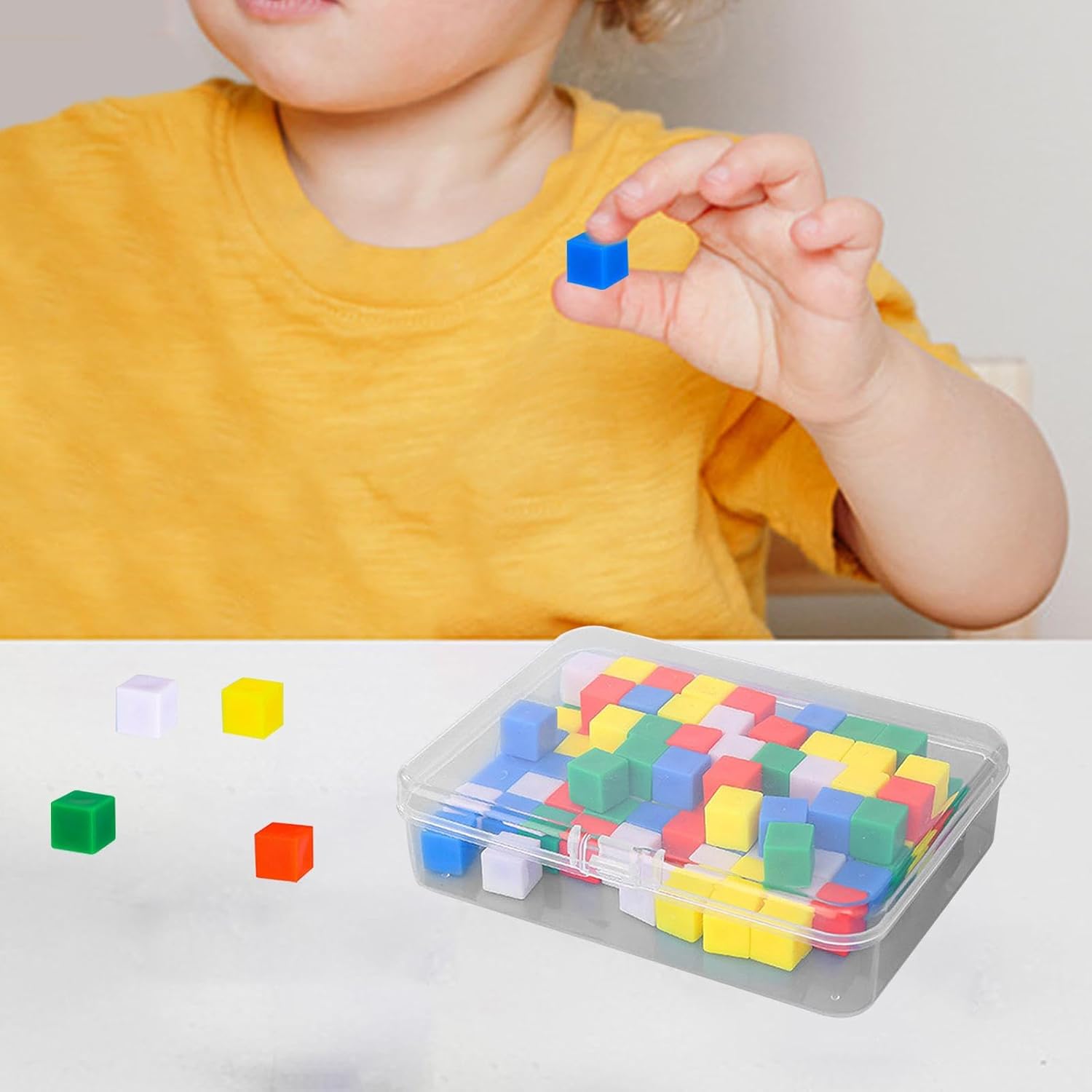 【Migliora le capacità motorie fini】: i cubi centimetrici aiutano i bambini a esercitarsi ad afferrare, impilare e riconoscere colori e forme confrontando dimensioni e quantità 【Materiale】: i conteggio sono realizzati in PP di qualità con bordi lisci (10x10x10 mm per blocco), per le manine dei più piccoli 【Colori vivaci e coinvolgenti】: i cubi dai colori vivaci rendono l'apprendimento divertente migliorando il riconoscimento dei colori e la percezione visiva 【Gioco creativo ed educativo】: Math Cubes incoraggia la costruzione fantasiosa, la consapevolezza spaziale e concetti matematici come addizione e sottrazione 【Set da 100 pezzi】: include 100 mini blocchi e una scatola di immagazzinaggio per una facile organizzazione, ideale per l'uso domestico o in classe