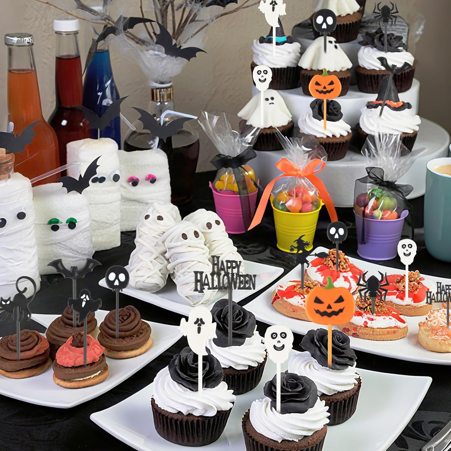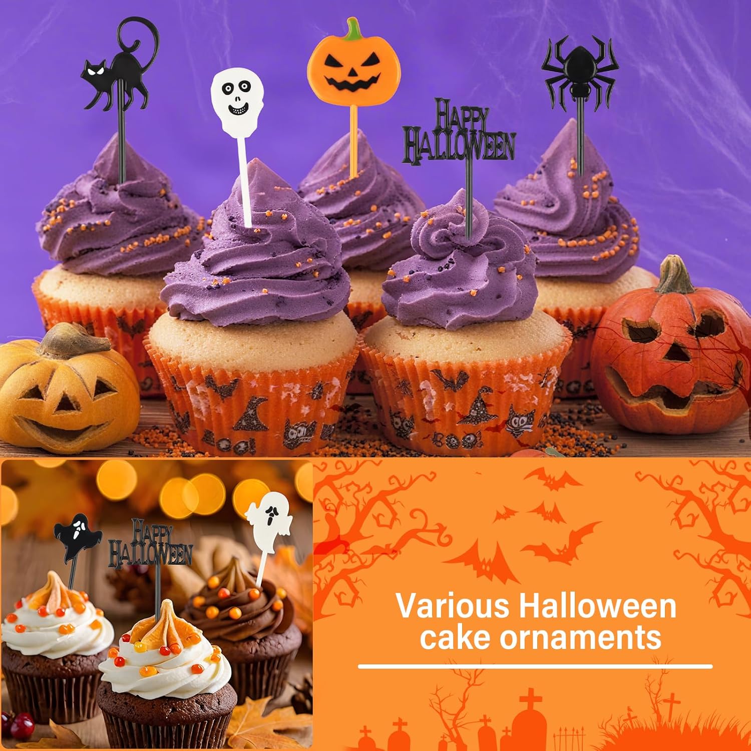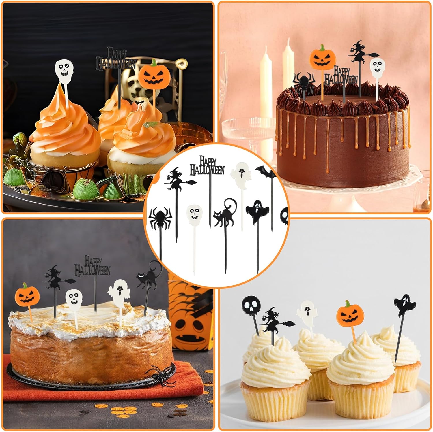 👻【Set di decorazioni per torte di Halloween】Riceverai 100 decorazioni per torte di Halloween con 10 motivi diversi, tra cui ragno, zucca, strega, fantasma, scheletro, pipistrello, ecc., 10 pezzi per motivo. 👻【Materiale di alta qualità】Queste decorazioni per cupcake di Halloween sono realizzate in plastica per alimenti, ideali per decorare i tuoi piatti. Robuste e resistenti, sono sicure per bambini e adulti e puoi usarle con sicurezza. 👻【Dimensioni adatte】Ogni decorazione per cupcake di Halloween è lunga circa 8 cm. La punta dello stuzzicadenti è sottile e dura, il che consente di inserirla in torte e frutta dura, rendendo le tue decorazioni per la festa di Halloween più colorate e originali. 👻【Design creativo】Ogni decorazione per torta presenta un motivo di Halloween, che incarna gli elementi di Halloween e lo rende accattivante. Ideale come regalo per una festa di Halloween, migliorerà l'atmosfera di Halloween. 👻【Ampia applicazione】Può essere utilizzato non solo per decorare feste di Halloween, feste di compleanno di Halloween e feste di Halloween per bambini, ma anche per cupcake, dolci quotidiani, matrimoni, decorazioni per torte fai da te, ecc.