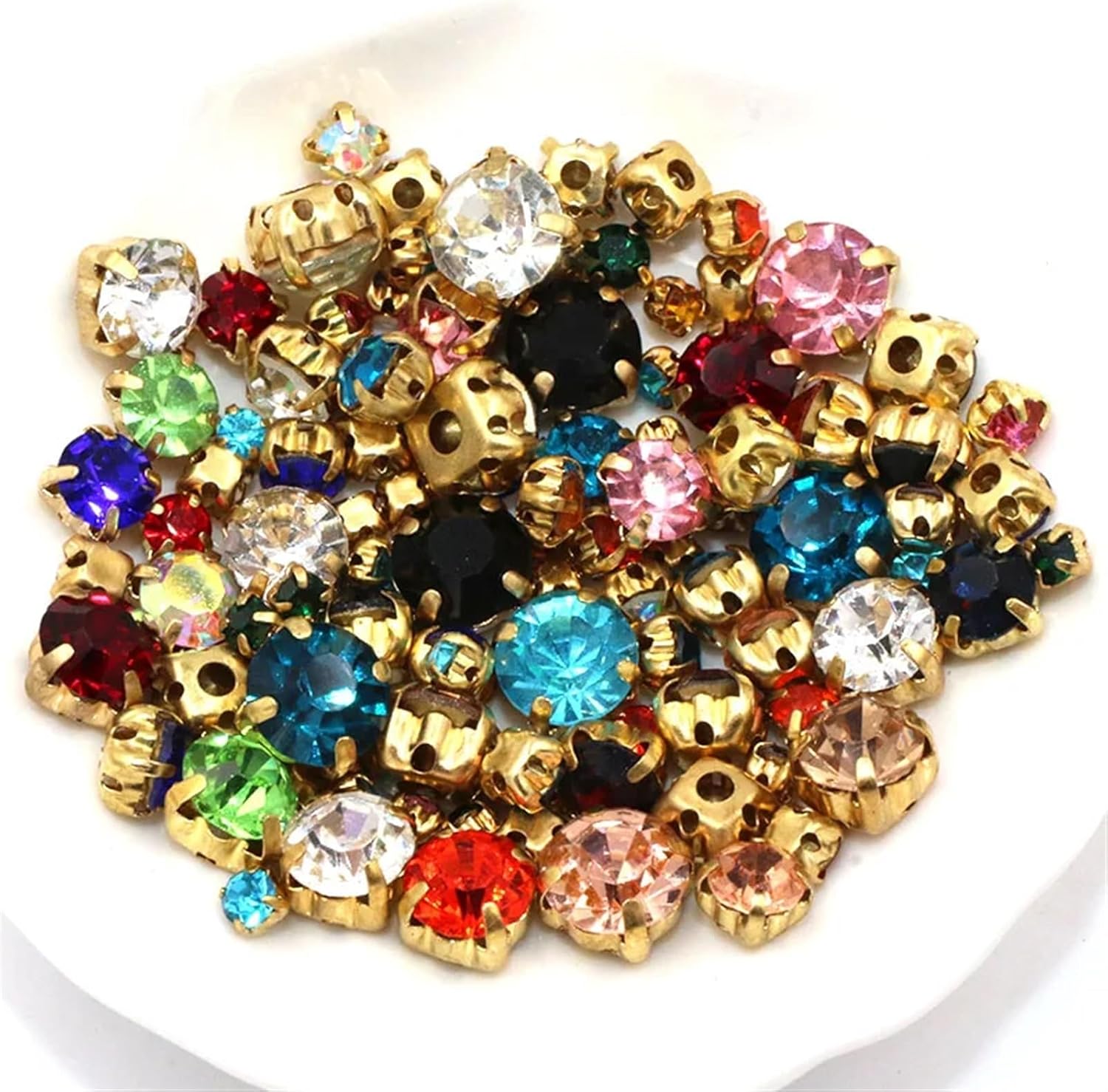 100 Pezzi di Perline di Cristallo di Vetro di Dimensioni Miste for Abbigliamento, incastonatura di Artigli Dorati, Strass da Cucire, Fai da Te, Abito da Sposa(Smoke Yellow)