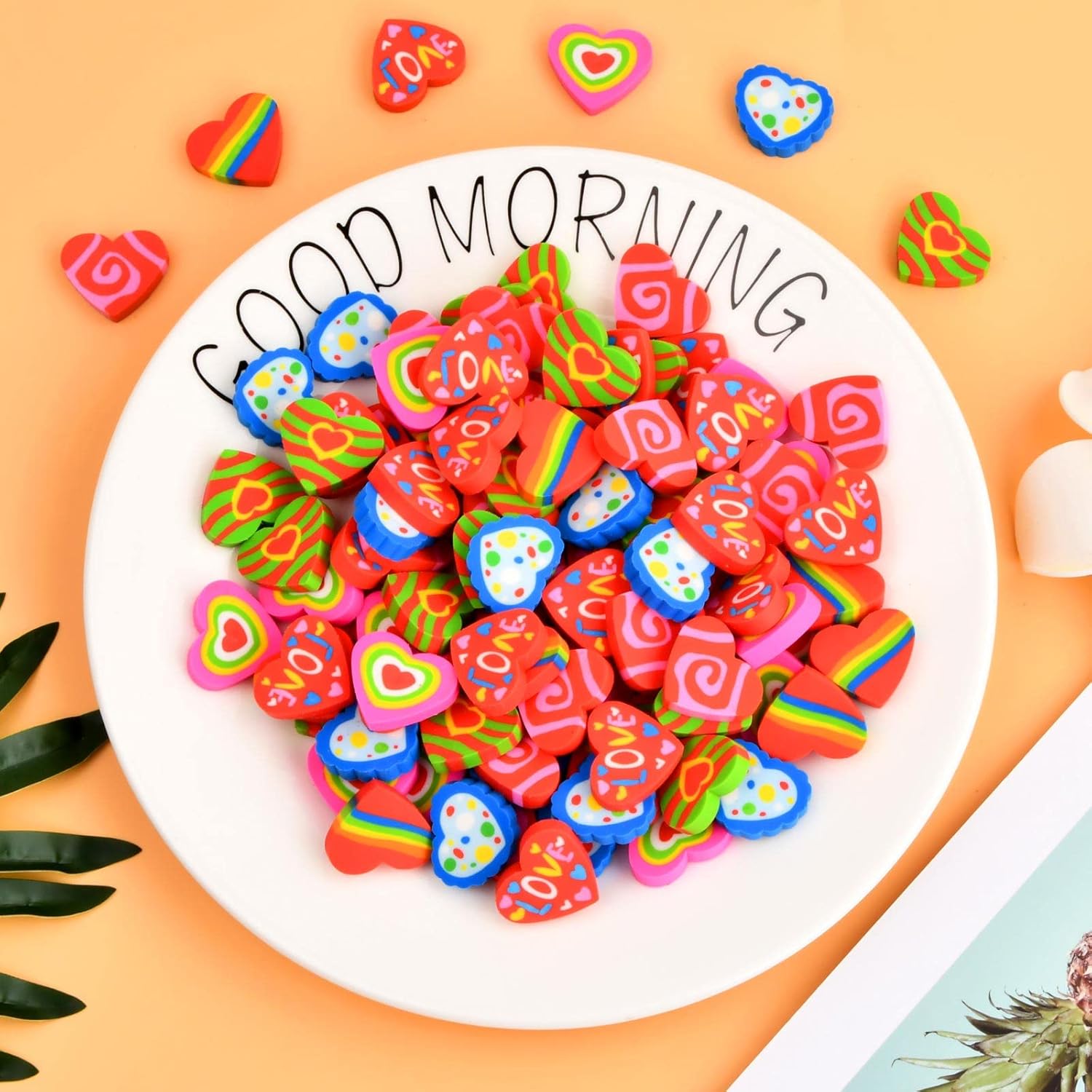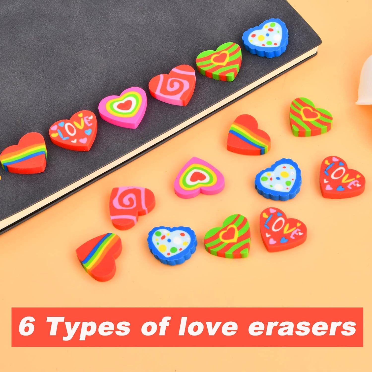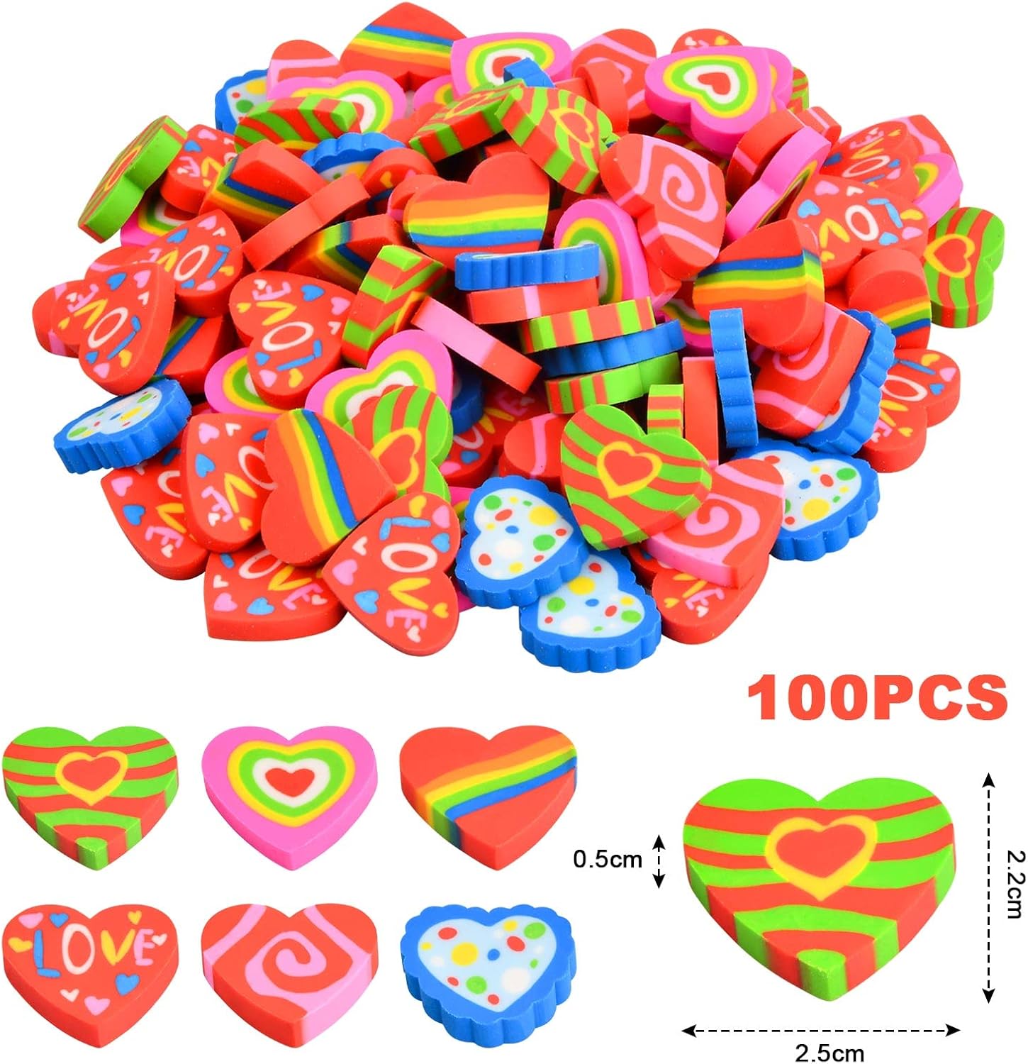 【Il pacchetto include】 100 pezzi di gomme da cancellare, ogni dimensione è 2,5x2,2 cm. Le gomme sono super kawaii e colorate, perfette per bambini e studenti. 【Super Cute Love Heart Patterns】 Queste mini gomme sono a forma di cuore e sono disponibili in 6 diversi modelli, ognuno con colori vivaci e design eleganti, amati dai bambini e possono essere usati come divertenti regali per il ritorno a scuola. 【Materiale di alta qualità】 Queste gomme sono realizzate in gomma morbida, atossica e inodore, sicura per i bambini, resistente e facile da rimuovere. 【Quantità sufficiente】 100 yuan sono sufficienti, non preoccuparti di perdere la gomma, è molto resistente e i bambini possono anche condividerla con i compagni di classe. 【Ampia applicazione】 Ottimo per regali per la festa dei bambini, regali per il rientro a scuola, premi in classe, premi per i compiti, premi per giochi divertenti, bomboniere per feste di compleanno, cancelleria carina, riempitivi per sacchetti regalo, bomboniere, decorazioni per feste di San Valentino e decorazioni per la tavola, ecc.