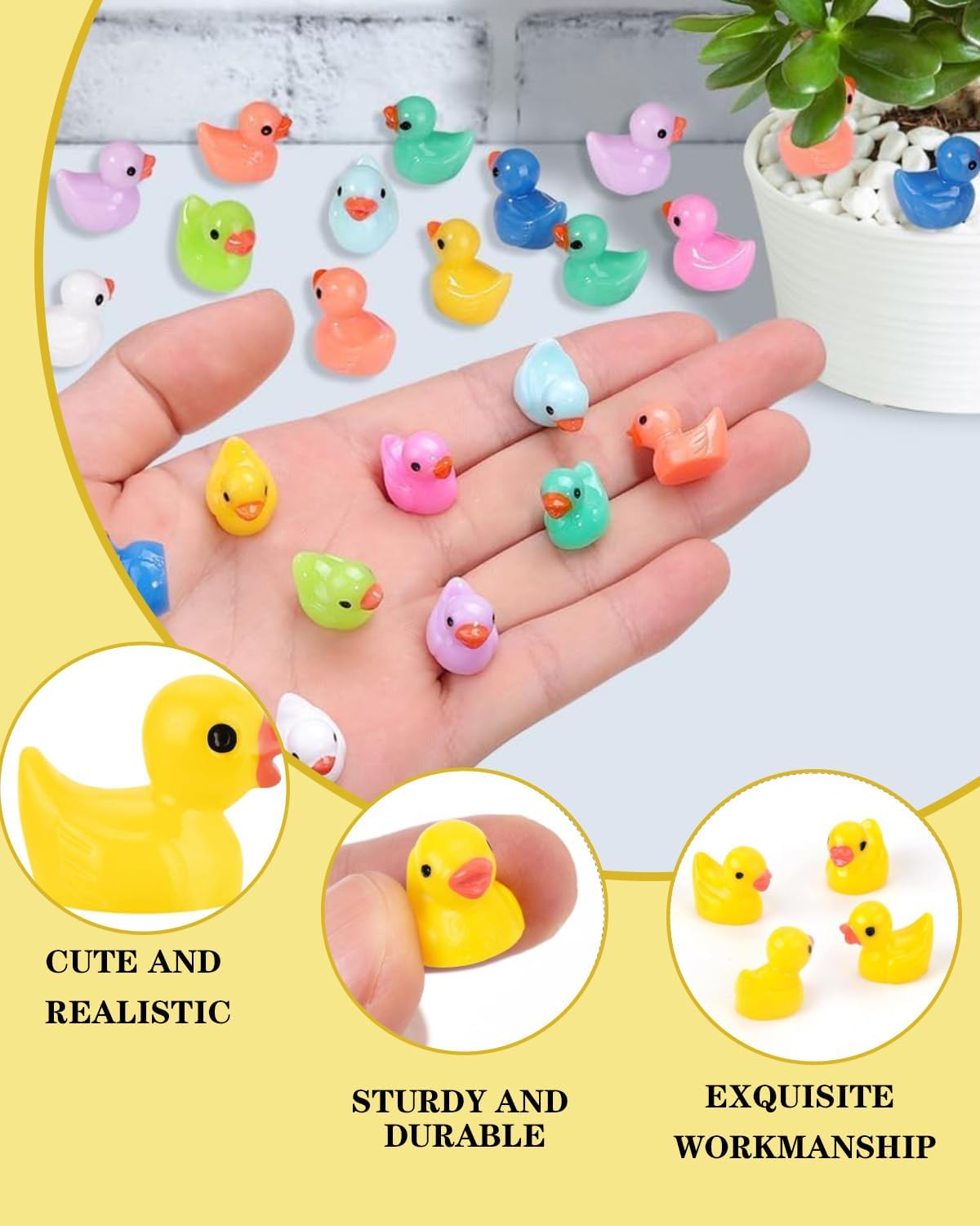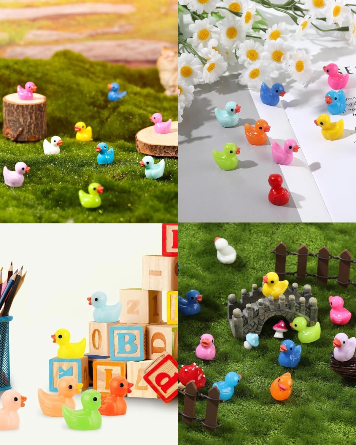 Confezione: riceverai 120 mini papere in 10 colori, fornendo tanto colore per tutte le tue creazioni e decorazioni. Le piccole anatre aggiungono anche un'esperienza visiva diversa alle tue creazioni. Dimensioni: l'anatra misura circa 1,5x1,8 cm, piccola e compatta, facile da trasportare ed esporre. Le anatre in resina possono soddisfare qualsiasi tua creazione magica e immaginazione, come lavori fai-da-te, decorazioni per la scrivania, decorazioni di paesaggi in miniatura, ecc. MATERIALE DI ALTA QUALITÀ: Queste mini papere sono realizzate in resina di alta qualità, impermeabile, liscia e leggera. Fanno durare più a lungo il tuo lavoro, così puoi divertirti e condividere il tuo lavoro più a lungo. REGALO IDEALE PER BAMBINI E ADULTI: le mini papere in resina presentano disegni carini e vivaci che i bambini e gli adulti adoreranno, rendendole regali di compleanno perfetti, bomboniere, regali di festa. Puoi decorare una casa delle bambole o un giardino in miniatura con i tuoi bambini, il che ti regalerà un'esperienza meravigliosa. Ampia applicazione: la piccola statua di anatra ha un grande fascino per gli appassionati di fai da te e mini paesaggi. Puoi creare facilmente miniature carine e vivaci che portano un divertimento senza fine nella tua vita. Ad esempio B. Decorare giardini micro-paesaggistici, bonsai, acquari, acquari.