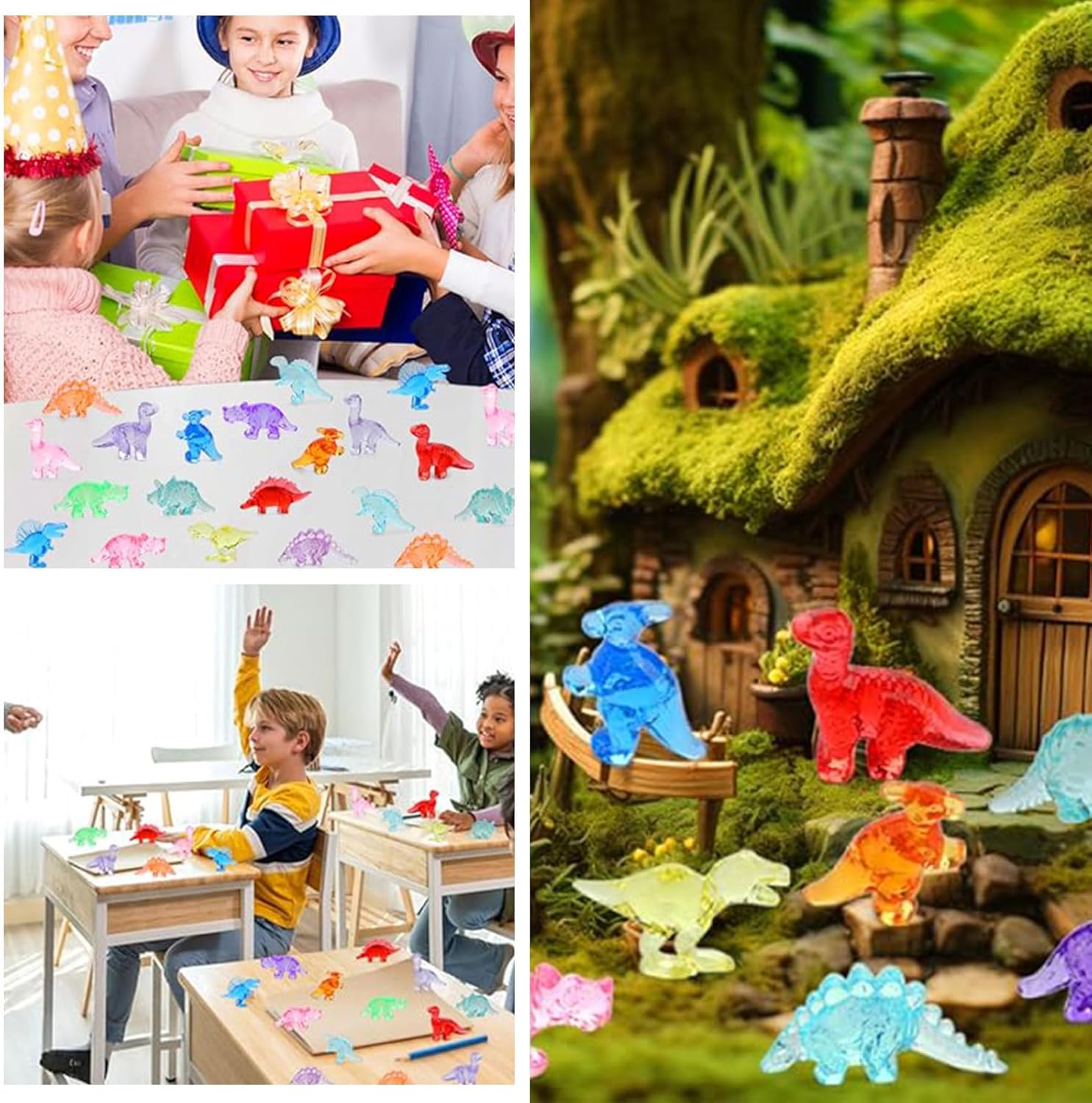 100 pezzi di mini figure di dinosauri: Riceverai 100 diversi e colorati mini dinosauri. Questi piccoli dinosauri in resina aggiungono divertimento alle tue creazioni fai-da-te e soddisfano le tue esigenze di decorazione, rendendo la tua decorazione non più monotona Regali per feste di dinosauri: Queste simpatiche mini figure di dinosauri sono perfette come decorazioni per feste, decorazioni per torte, topper per cupcake, sacchetti regalo di Pasqua, riempitivi per uova di Pasqua per bambini dai 3 agli 8 anni Applicazioni versatili: Con i mini dinosauri puoi creare paesaggi unici, decorare case delle bambole in miniatura, acquari, vasi di fiori e giardini delle fate, oppure posizionarli su scrivanie, tavoli, nel soggiorno, camera da letto, ufficio o come riempitivi di vasi Giocattoli premio per classi di bambini: Insegnanti, genitori, nonni o persone che amano premiare possono utilizzare questi mini dinosauri come giocattoli premio nelle casse del tesoro, portando divertimento e gioia agli eventi per bambini o nelle lezioni Gioco di nascondino con mini figure di animali: I minuscoli dinosauri sono realizzati in resina di alta qualità, sono resistenti al colore e impermeabili, permettendo alle tue decorazioni o lavori di mantenere il loro fascino a lungo. Puoi anche avviare una caccia al tesoro con famiglia e amici