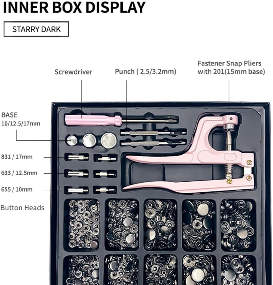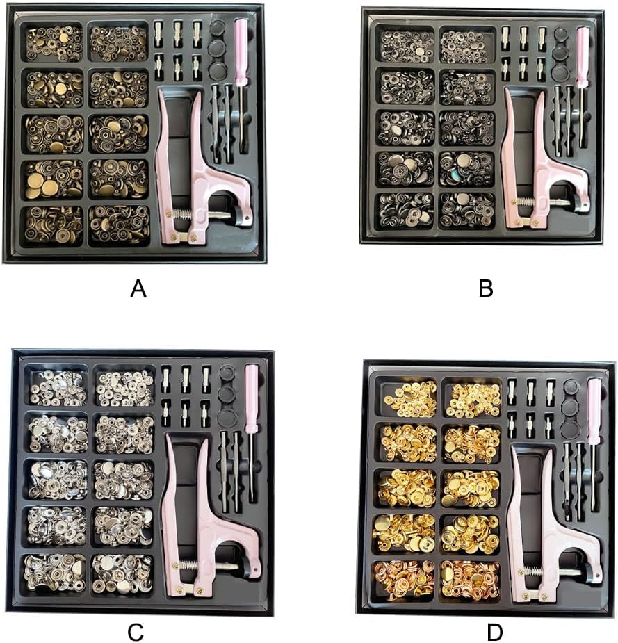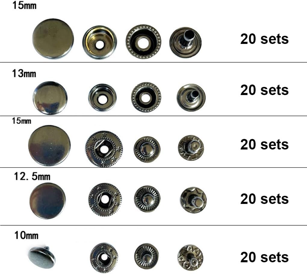 Descrizione: Set di bottoni: questo set di bottoni automatici contiene 5 diversi tipi di bottoni che possono soddisfare le tue diverse esigenze e dispone di 13 strumenti. Dimensioni dei bottoni: questo kit di bottoni automatici contiene elementi di fissaggio di diverse dimensioni. È possibile utilizzare dispositivi di fissaggio di diverse dimensioni per adattarsi a diversi tipi di vestiti. Applicazione: questo set di bottoni in rame è una buona scelta per sostituire un bottone usurato o danneggiato, o semplicemente per cambiare stile. adatta al posto: questo bottone automatico è adatto per artigianato in pelle, borse, custodie, vestiti, cinturini, giacche, jeans, zaini, scarpe, stivali e così via. Robusto: questo bottone automatico è realizzato in rame che adotta placcatura artigianale ed è di lunga durata, robusto e non facile da danneggiare. Specifiche: Colore: bronzo, grigio, argento, bianco, oro. Materiale: rame. Dimensioni (diametro): ca. 10 mm/0,39 pollici; ca. 12 mm/0,47 pollici; ca. 15 mm/0,59 pollici; ca. 17 mm/0,67 pollici. Nota: Potrebbero esserci delle distorsioni del colore dovute alle diverse risoluzioni del computer. Potrebbero esserci lievi errori dovuti alla diversa misurazione della mano. Il pacchetto include : 1 set di bottoni automatici in metallo (100 pezzi).
