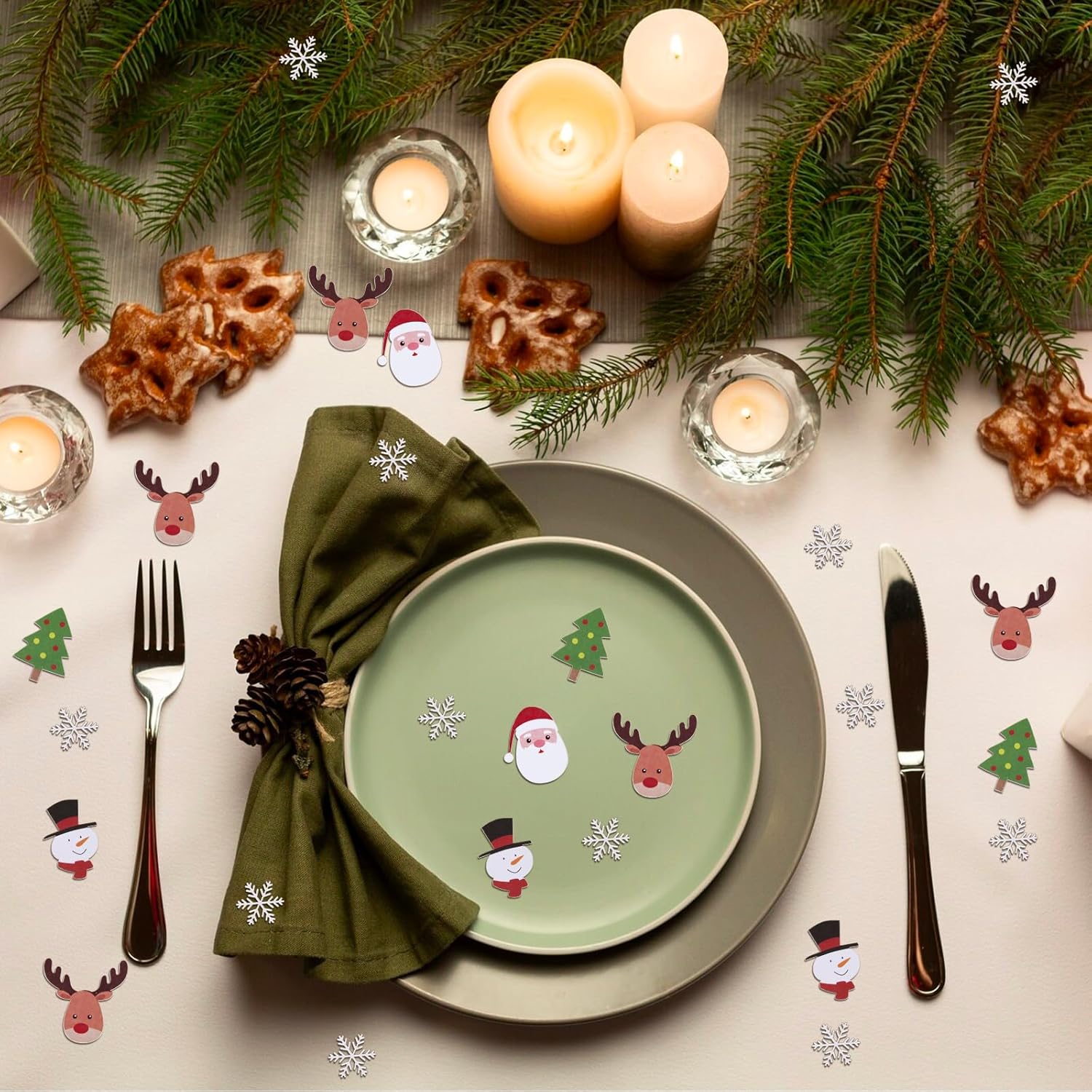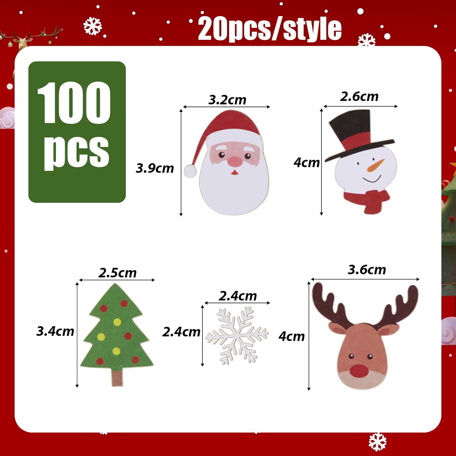 La confezione include: 100 coriandoli natalizi (compresi i disegni di Babbo Natale, pupazzo di neve, renna, albero di Natale e fiocco di neve. 20 pezzi/design) Materiali: realizzati in carta di alta qualità. Questo set di coriandoli natalizi è una perfetta decorazione per la tavola di Natale. Bellissime decorazioni natalizie: questi coriandoli presentano motivi natalizi molto classici; aggiungeranno un tocco festoso alle tue decorazioni natalizie Applicazione: perfetta per decorazioni natalizie, feste di Natale, decorazioni per la casa e l'asilo, decorazioni per ufficio, regali, delicati giocattoli festivi e così via. Può essere utilizzato per l'atmosfera festosa, la decorazione della tavola e un'ampia gamma di usi. Dimensioni: 5 tipi di dimensioni: 4*2,7 cm/3,8*3,3 cm/2,5*2,2 cm/3,8*2,5 cm/3,7*3,6 cm