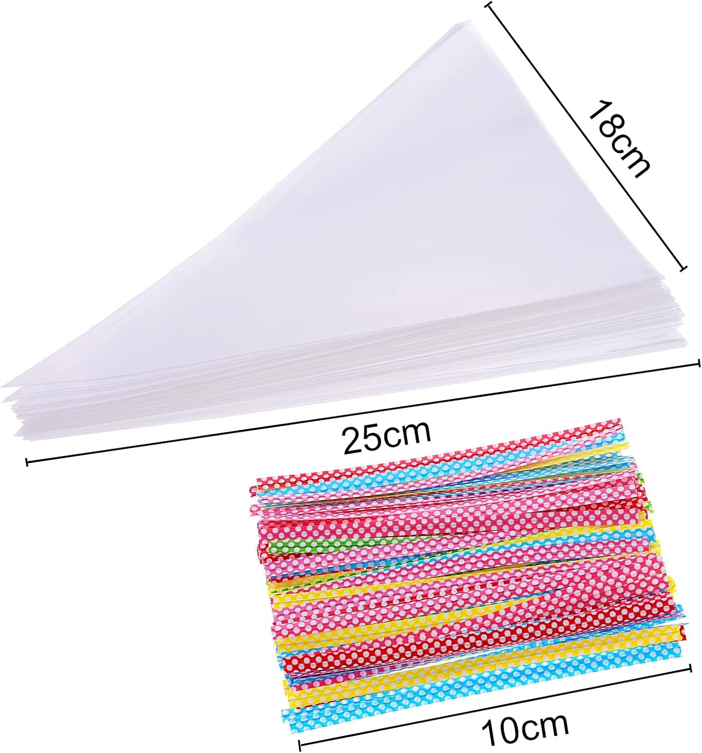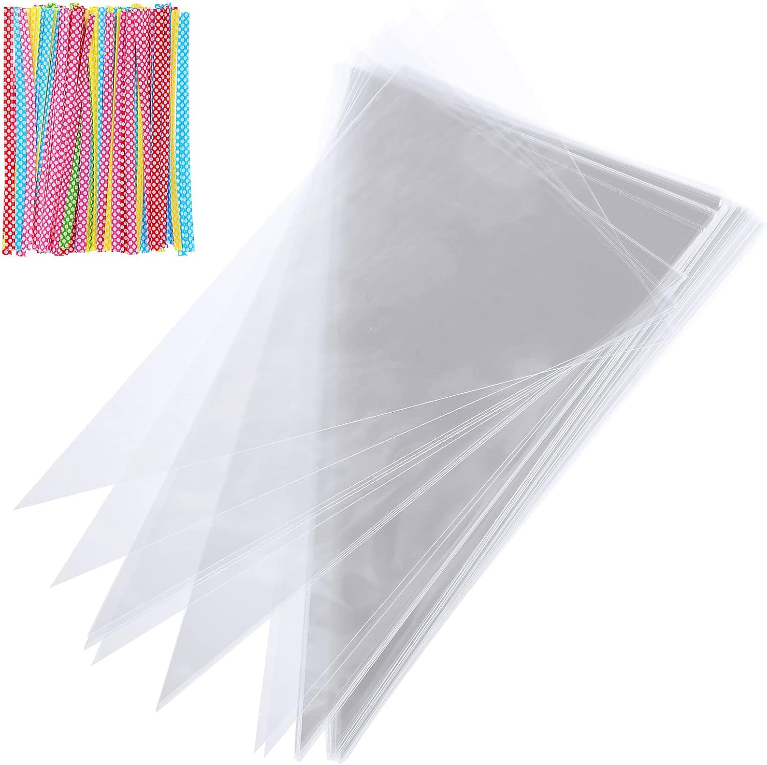 100 sacchetti di cellophane e 100 fascette metalliche. Dimensioni: 25*15 cm Materiale: OPP Adatto per la conservazione e la conservazione degli alimenti.