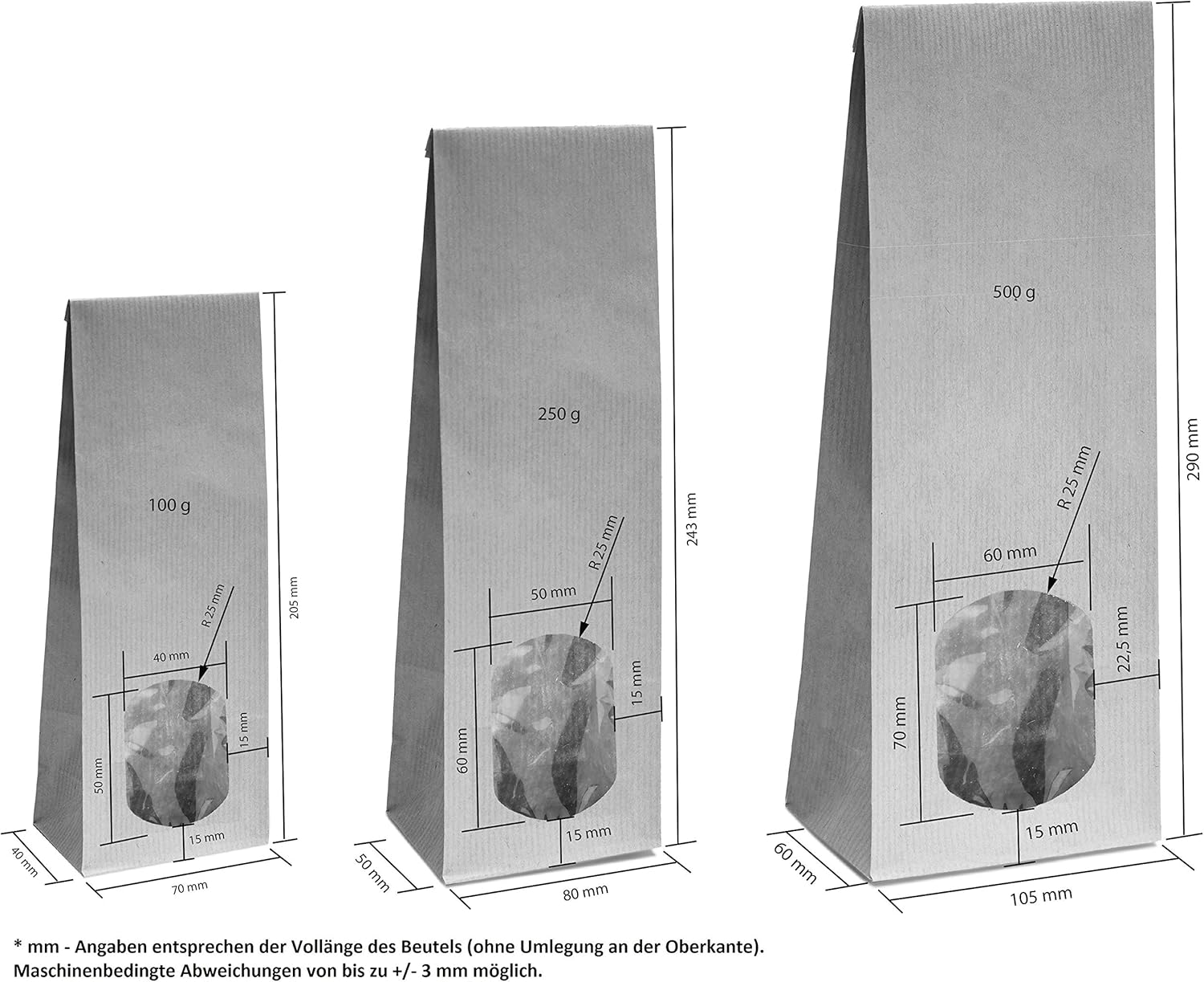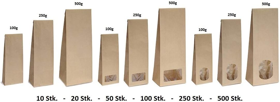 📌 Confezione per alimenti con finestra ovale I capacità circa 100 g o 250 g o 500 g 📌 Busta da 100 g = ca. 70 x 40 x 205 mm o 7 x 4 x 20,5 cm -> Made in Germany 📌 I sacchetti con fondo quadro sono realizzati con il seguente materiale: Sacchetti con finestra ovale: carta kraft da 70 g (strato esterno) con pellicola OPP da 25 My (strato interno) 📌 I sacchetti sono ideali per pasta, cose macinate finemente come spezie, tè, caffè, erbe aromatiche, sale, sali da bagno, farina ma anche per piatti leggermente grassi cose come popcorn, biscotti, biscotti, pasticcini, cioccolatini, dolciumi e dolci. 📌 I sacchetti di carta sono adatti anche come sacchetti regalo, confezioni regalo, per il fai da te come calendario dell'Avvento, come confezione regalo, facili da riempire, come sacchetti per caramelle, come sacchetti per il pane per la scuola o come sacchetti di carta per regali/omaggi promozionali