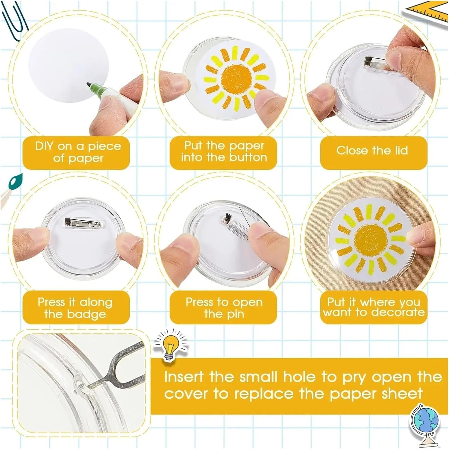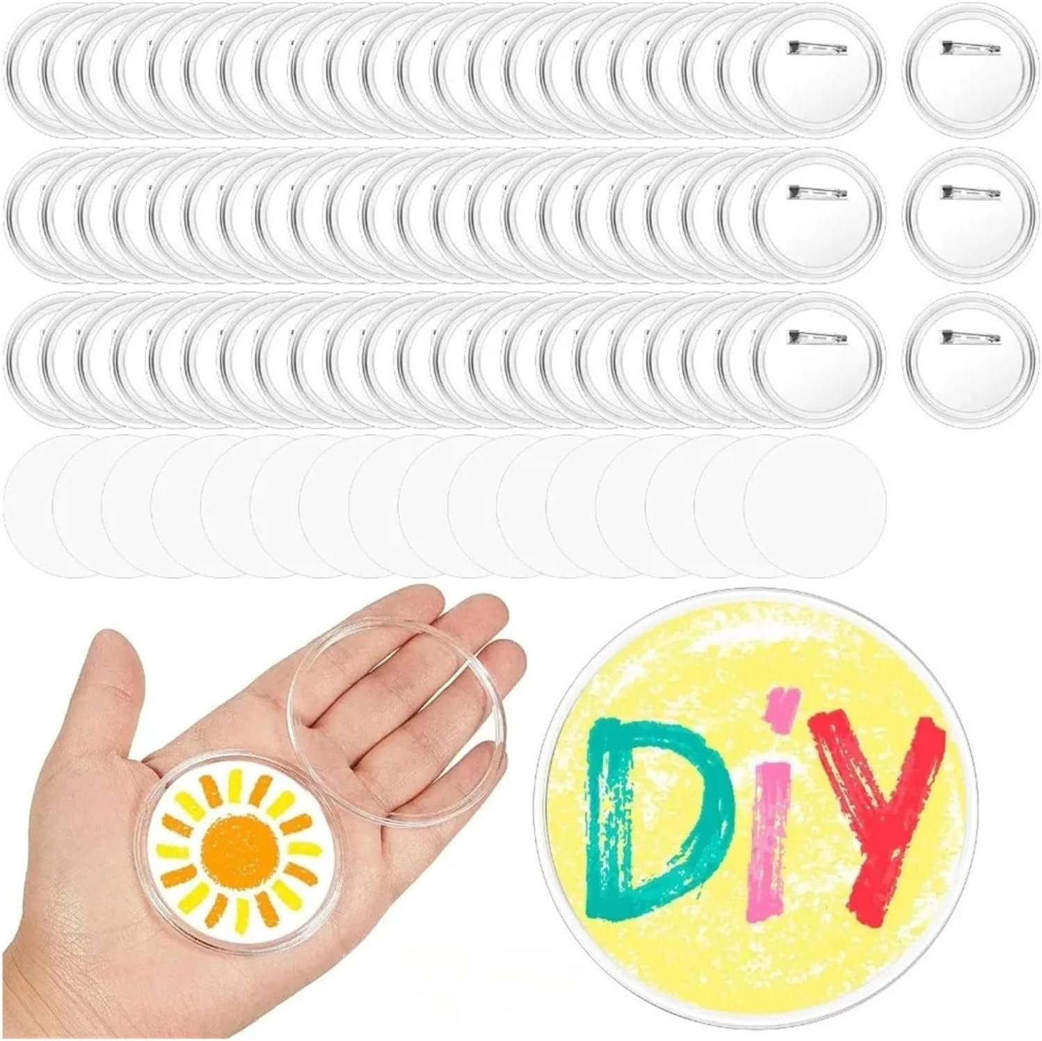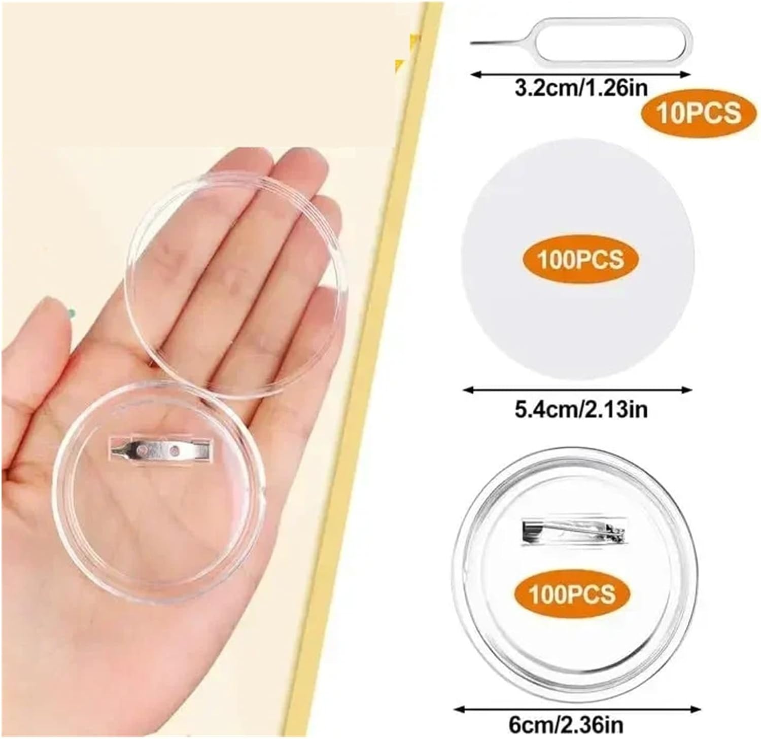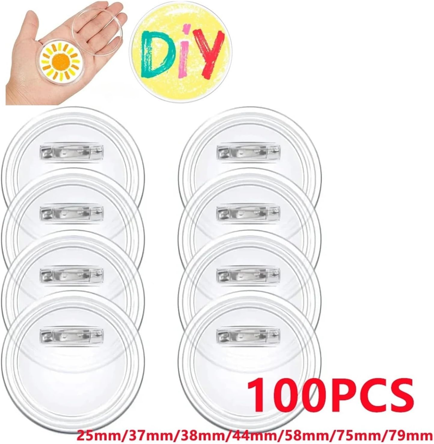 1. La confezione include 100 spille vuote, più che sufficienti for creare i tuoi badge personali 2. I nostri pulsanti trasparenti sono realizzati in acrilico, buona trasparenza, robusti e resistenti all'usura, migliore protezione del contenuto del badge 3. Dimensioni: diametro 25 mm, 37 mm, 38 mm, 44 mm, 58 mm, 75 mm, diverse dimensioni for soddisfare le tue esigenze 4. Finché il a separare le due dimensioni di taglio confronto circolare copertura è necessario modello, quindi incorporato nella base, quindi il coperchio circolare, estrarre la spilla può indossare 5. Facile da montare senza l'assistenza della macchina, agganciarli insieme correttamente, quindi pizzicare verso l'alto e intorno in entrambe le direzioni fino a sentire uno schiocco forte, quindi tirare il perno for vedere se erano scattati insieme