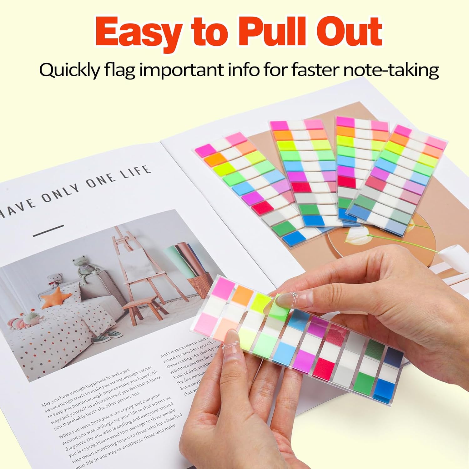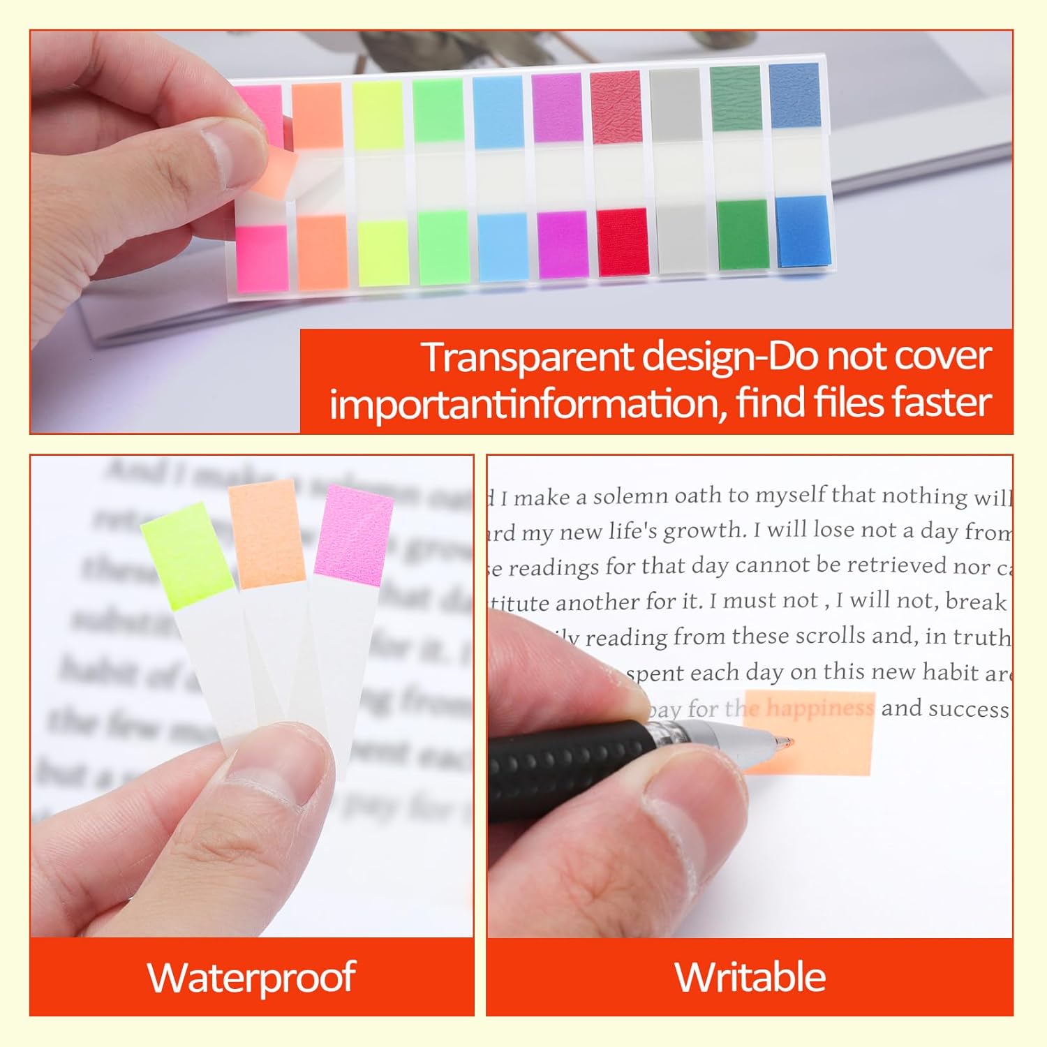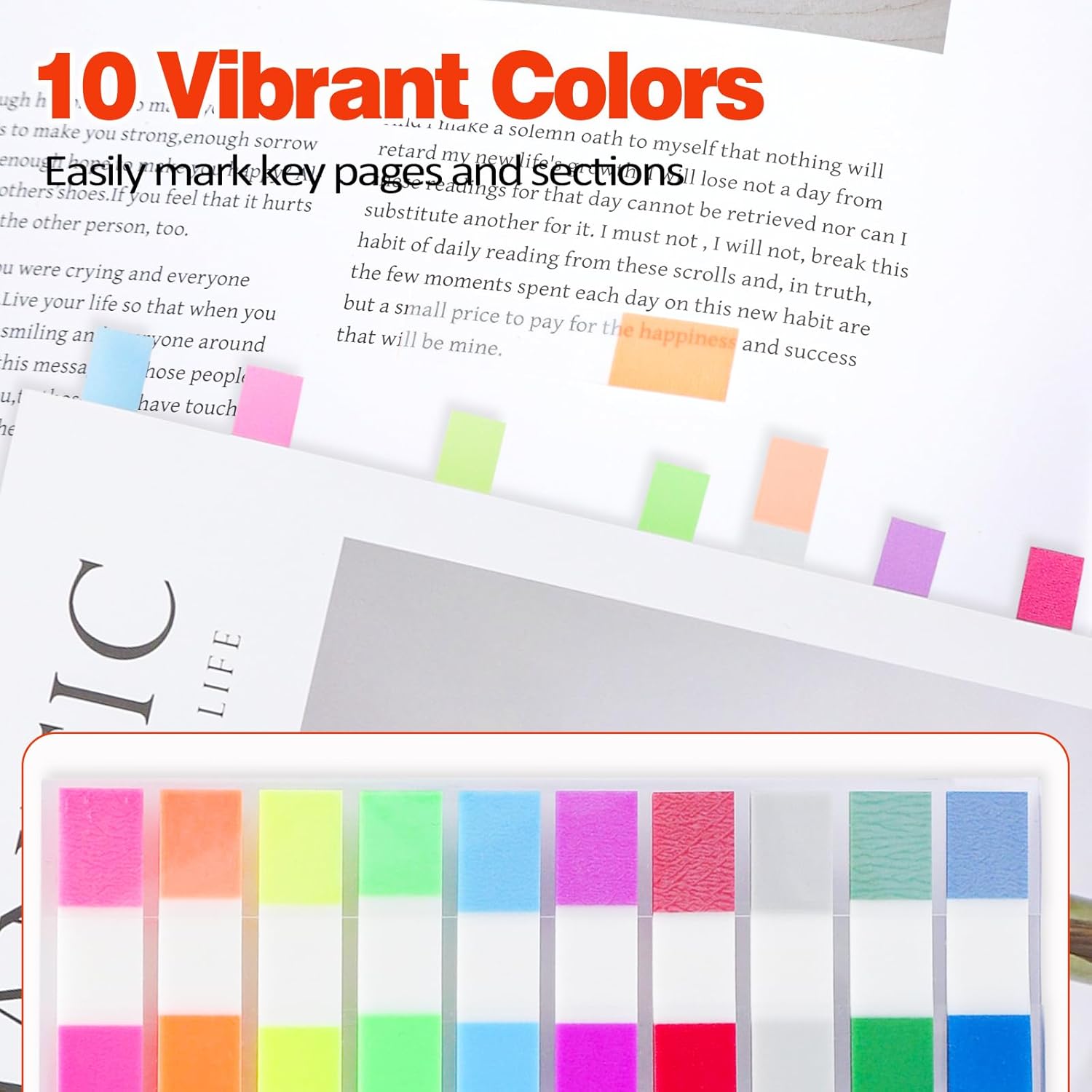 【Contenuto della confezione】Riceverai 5 confezioni di linguette adesive, 1000 pezzi in totale. Ogni confezione contiene 10 colori, con 20 pezzi per colore. 【Materiale】Segnalibro adesivo fluorescente traslucido realizzato in PET e un adesivo speciale. Colori vivaci, design pulito e minimalista, compatto e facile da trasportare. 【Indicizzazione pratica】L'area post-it trasparente opaca ti consente di prendere rapidamente appunti senza nascondere il testo. Le etichette con codice colore rendono le informazioni facili da trovare e consultare, unendo estetica e funzionalità. 【Facile applicazione e rimozione】 I segnalibri Post-it semplificano l'applicazione, la marcatura e la pulizia, con riposizionabilità. Si inseriscono facilmente nei libri, segnano le pagine e si rimuovono in modo pulito. 【Cancelleria essenziale】 Uno strumento essenziale per il lavoro e lo studio. Permettono di evidenziare appunti di lettura, libri, riviste, documenti, diari, cataloghi e fascicoli. Questi post-it trasparenti aiutano a pianificare, organizzare, dare priorità e adattare meglio le attività.