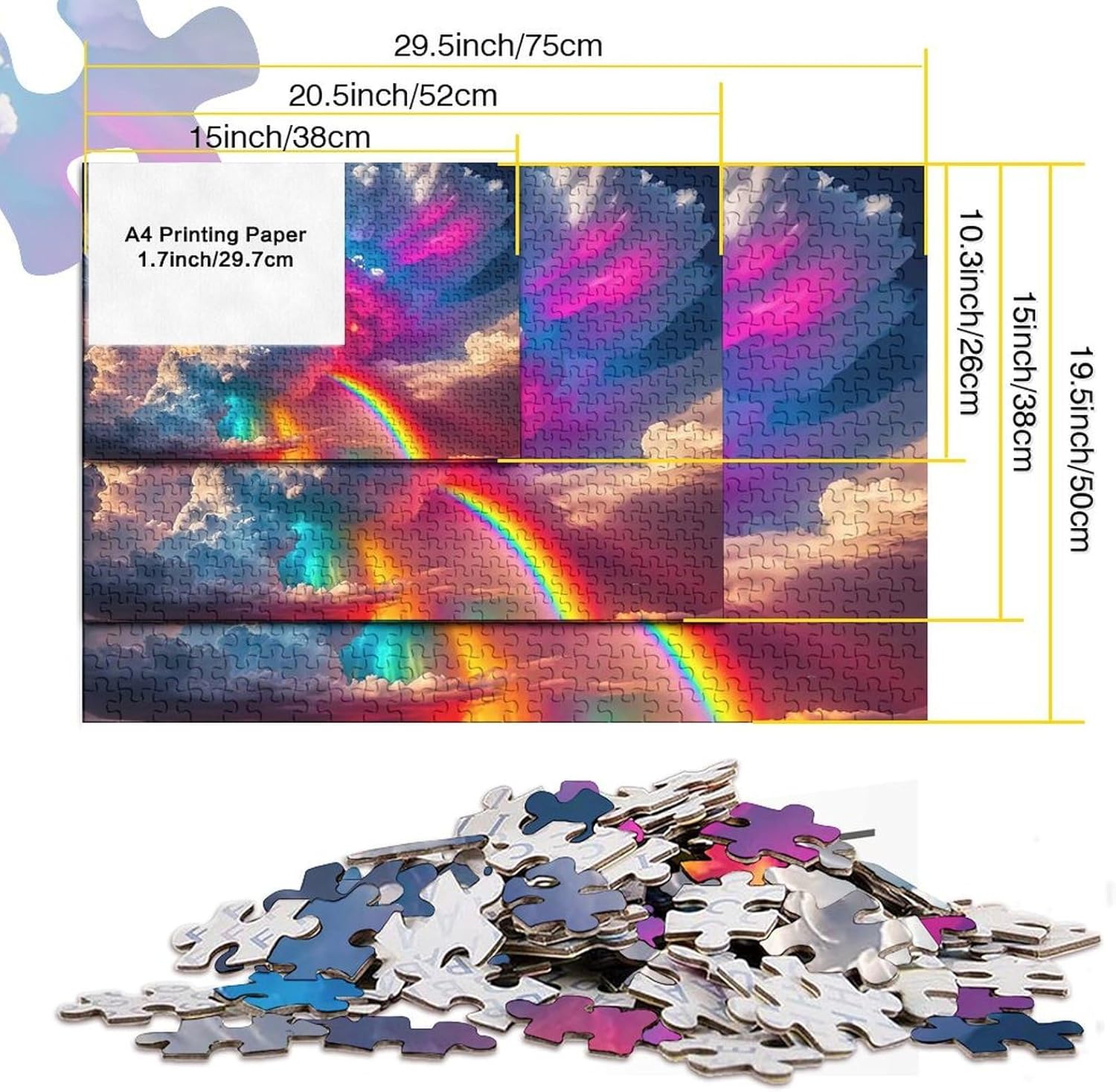 🌸GIOCHI PER ADULTI: una sfida emozionante da regalare a tutti li appassionati di puzzle e amanti dell'arte, ideale per uomo, donna o ragazzi; i puzzle aiutano a esercitare la memoria, migliorano la concentrazione e stimolano l'intuizione 🌸QUALITÀ PREMIUM: il massimo del divertimento con prodotti di altissima qualità in termini di materiali, motivi e design; realizzati in legno tagliati con fustelle fatte a mano, per un risultato impeccabile 🌸Buon regalo: il rainbow puzzle finito misura 38x26cm/1000pcs una volta completato. I migliori regali per ragazzi e ragazze dai 14 anni in su per compleanni o festività (Natale, Halloween, Ringraziamento, ecc.) 🌸Concediti una piacevole pausa relax! La nostra linea di puzzle da Rainbow 1000 pezzi è il regalo perfetto per chi ama ritagliarsi un momento di svago e di relax mettendo alla prova le proprie abilità logiche e di concentrazione 🌸I nostri Puzzle ti offrono un'ampia scelta d'immagini capace di soddisfare i gusti di tutti: grazie alla qualità dei materiali riciclati, la robustezza e resistenza dei singoli pezzi insieme alla brillantezza dei colori, ti garantiamo un risultato impeccabile e privo di riflessi