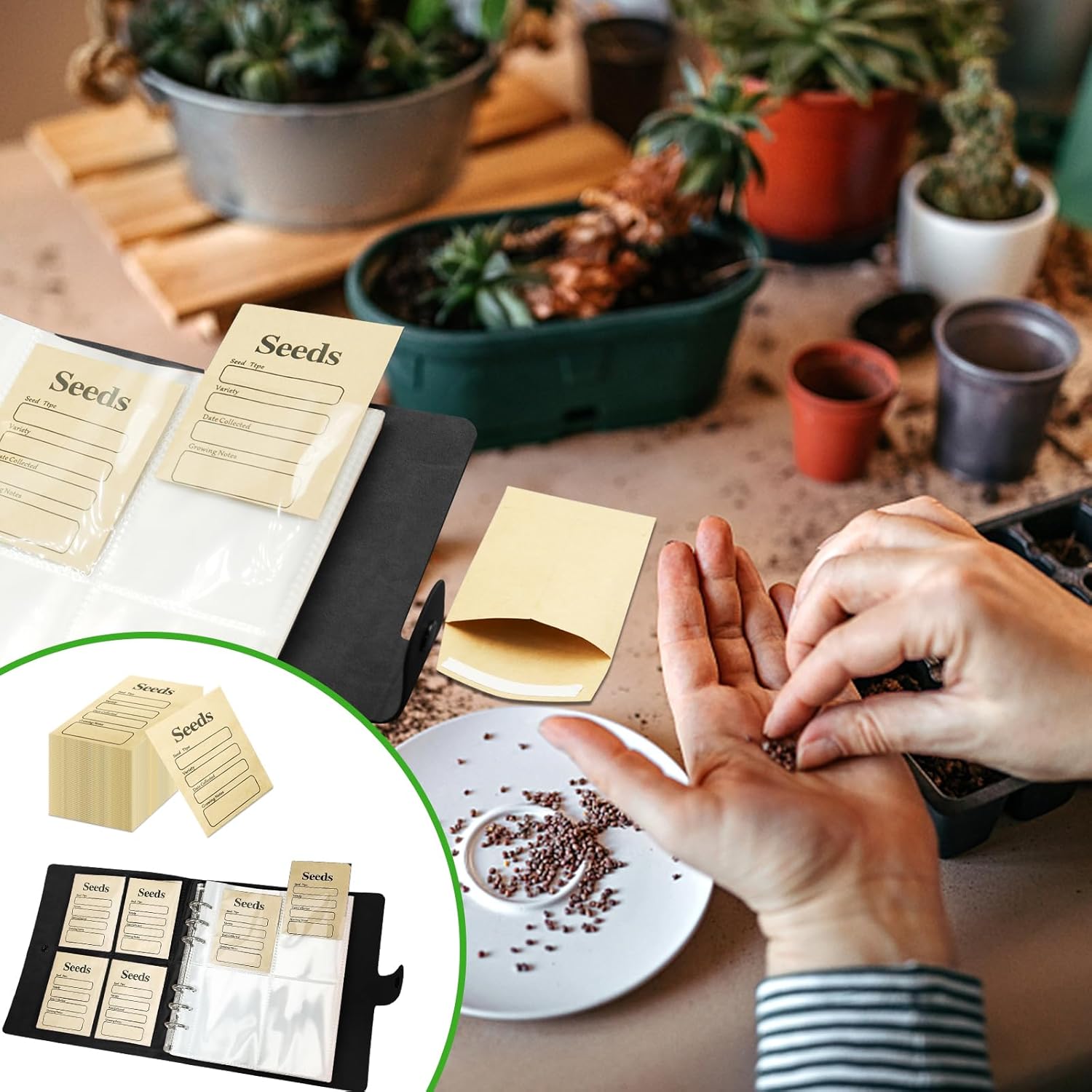 Conservazione efficiente: è possibile utilizzare buste per semi per conservare semi di ortaggi e da giardino, inserire le informazioni sui semi sulla copertura e mettere le buste per semi nella scatola organizer per semi. Il raccoglitore per semi può aiutarti a trovare il seme che desideri in modo chiaro e rapido. Materiale di alta qualità: questo contenitore per semi è realizzato in pelle e polipropilene, il sacchetto richiudibile è realizzato in carta marrone, affidabile, non facile da rompere, e la custodia è resistente all'umidità, che può mantenere i semi asciutti e ordinati. Facili da usare: le nostre buste per semi hanno guarnizioni autoadesive, compilano le informazioni sui semi sulla parte anteriore, mettete i semi nel sacchetto della busta, scoprite la carta biadesiva, piegate e premete per sigillare, quindi mettete l'organizer per la conservazione dei semi per completare la conservazione dei semi. Ampie applicazioni: oltre a conservare i semi, questo contenitore per semi può anche aiutarti a conservare piccole foto, cartoline, biglietti, adesivi, ecc. Le buste per semi possono mantenere i tuoi oggetti amati puliti e ordinati in ogni momento ed è un buon strumento di conservazione. Contenuto della confezione: la confezione contiene 1 organizer per semi rosa con 25 pagine interne, 200 tasche nella borsa e 100 buste di carta marrone. La dimensione dell'organizer per pacchetti di semi è di circa 7,48 x 7,172,7 cm, ogni sacchetto misura circa 2,56 x 3,127 cm e la dimensione delle buste per semi è di circa 2,36 x 3,38 cm. Se non sei soddisfatto del prodotto che hai ricevuto, ti preghiamo di dircelo e risolveremo il problema per te il prima possibile.