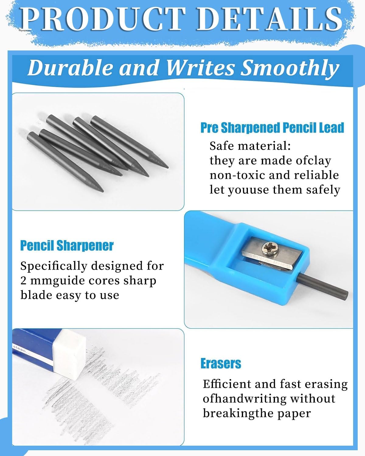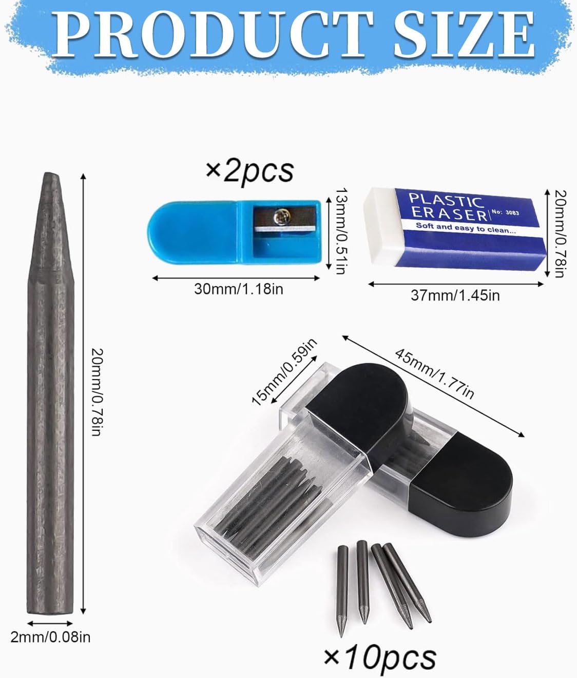 QUANTITÀ GRANDE: il set di puntali di ricambio rotondi contiene un totale di 100 puntali per bussola, confezionati in 10 scatole trasparenti. Viene fornito con 2 temperamatite e 1 gomma. Il dosaggio è sufficiente per l'uso quotidiano. Puoi anche condividerlo con i tuoi amici. Diametro 2 mm: ogni ricarica della bussola è lunga 2 cm e ha un diametro di 2 mm. Tipo 2B, adatto per la maggior parte delle bussole e matite intercambiabili, comprese le applicazioni di scrittura generali. Con un temperamatite puoi affilarlo dopo un uso ripetuto. Scrittura robusta ma fluida: la ricarica è realizzata in materiale di argilla nera, che può aumentare la durezza della bussola, rendendola stabile e non facile da rompere. Sicuro, non tossico, robusto e durevole. La penna della bussola scrive in modo fluido e aiuta a utilizzare la bussola nel modo più semplice, offrendoti una buona esperienza di scrittura. Facile da riporre: le ricariche sono conservate in una piccola scatola, la scatola di ricarica è realizzata in plastica di alta qualità, piccola e facile da chiudere. Puoi metterlo in una scatola di cancelleria o in una borsa da zaino, portarlo con te e usarlo a lungo. Risparmia e usa più comodamente. Ampia applicazione: la guida della bussola può essere utilizzata con qualsiasi bussola o matita meccanica con una guida della bussola da 2,0 mm, adatta per applicazioni di scrittura generali come appunti, lettere, disegni, segni di lavorazione del legno, schizzi, lettere, ecc. Puoi usarli in ufficio, in classe, a casa e altro ancora.