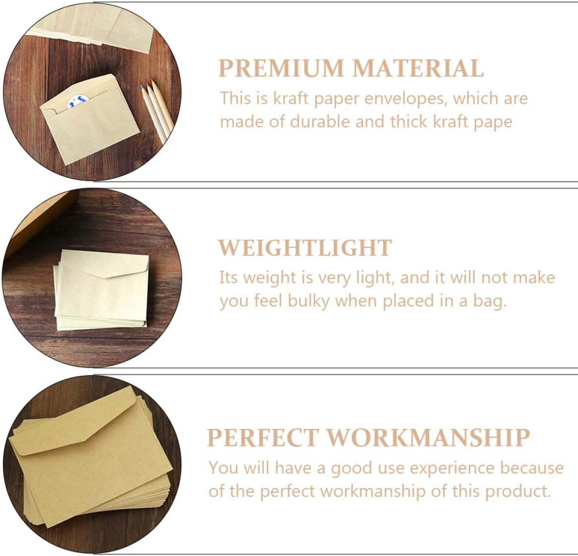 Busta semplice: la lavorazione ti offrirà un'esperienza d'uso eccellente, busta vuota Buste artigianali: design in stile vintage, elevata sicurezza, puoi utilizzare questo articolo in molte occasioni, busta per biglietti da visita Buste per file: il metodo di utilizzo è molto semplice, facile da usare e facile da estrarre, presenta buste per biglietti Mini buste vuote: realizzate in robusto materiale di carta kraft, più pratiche e durevoli, mini buste kraft Buste per inviti in carta kraft: possono contenere diversi oggetti, come tesine, documenti, riviste, giornali, ricevute aziendali, mini buste
