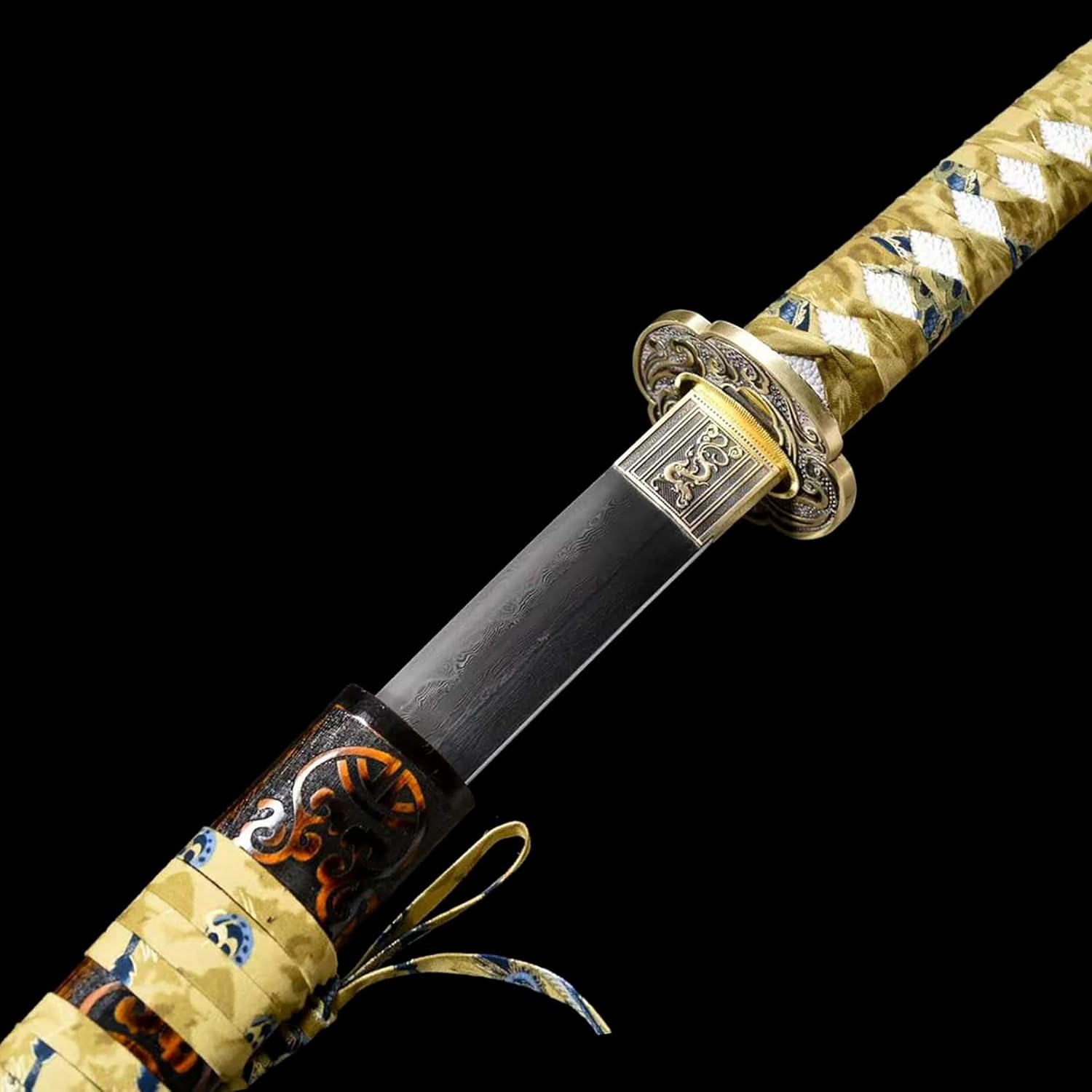 ♑️Le proporzioni sono cruciali per la progettazione delle armi. Le proporzioni perfette non solo rendono la katana più bella, ma ne garantiscono anche la praticità e la funzionalità. ♑️Lunghezza totale: 103 cm, lunghezza lama: 73 cm, lunghezza impugnatura: 26 cm, larghezza lama: 3,2 cm, spessore lama: 0,7 cm. ♑️La lama è realizzata in acciaio modellato ed è stata piegata e forgiata più volte per garantire la perfetta combinazione di durezza e tenacità. ♑️Il manico è avvolto da una corda morbida, si adatta al palmo della mano, è facile da impugnare e ha buone proprietà antiscivolo e resistenti all'usura. ♑️La katana è realizzata a mano con grande attenzione ai dettagli e mette in risalto perfettamente il fascino unico della katana. Ogni spada da samurai è un'opera d'arte unica.