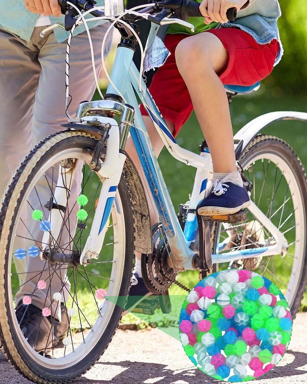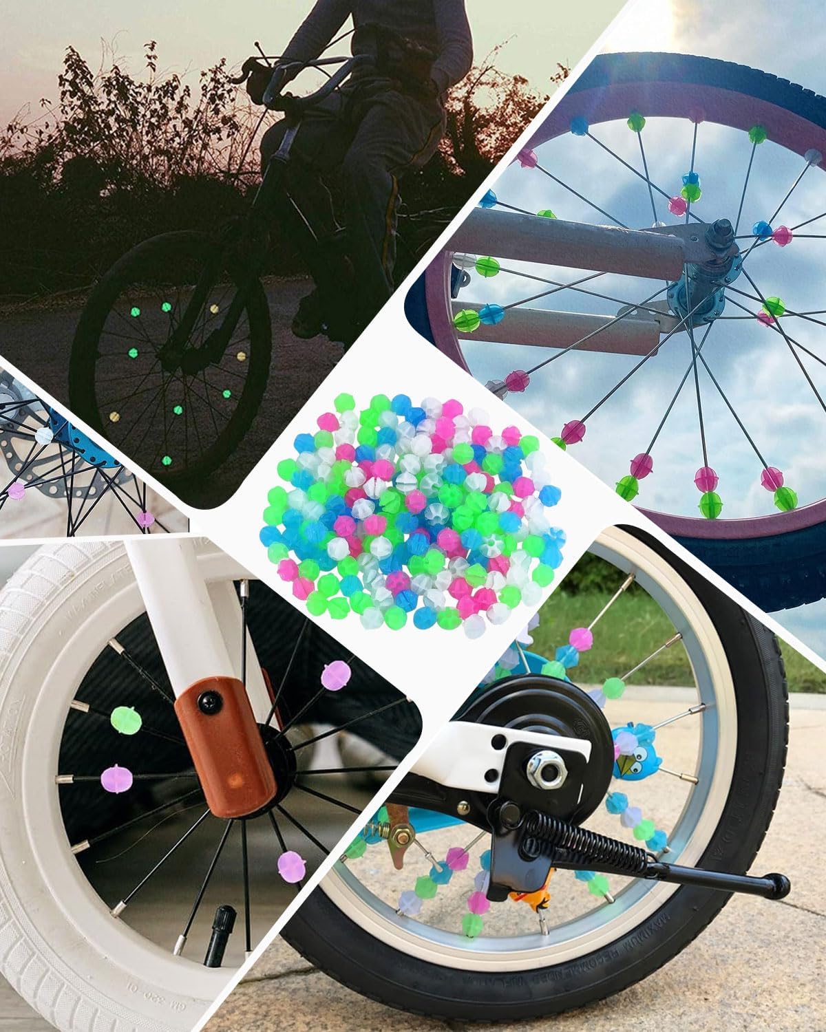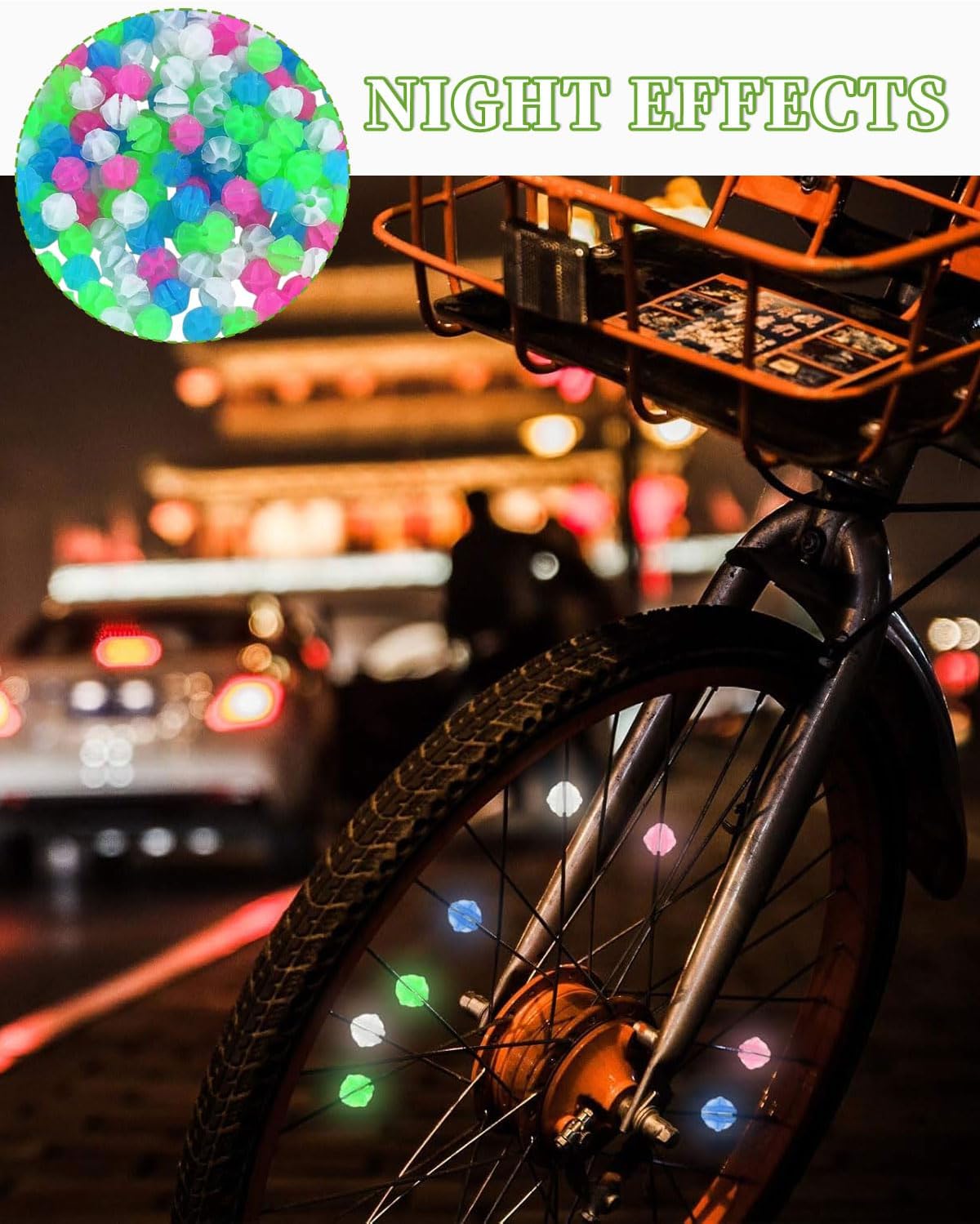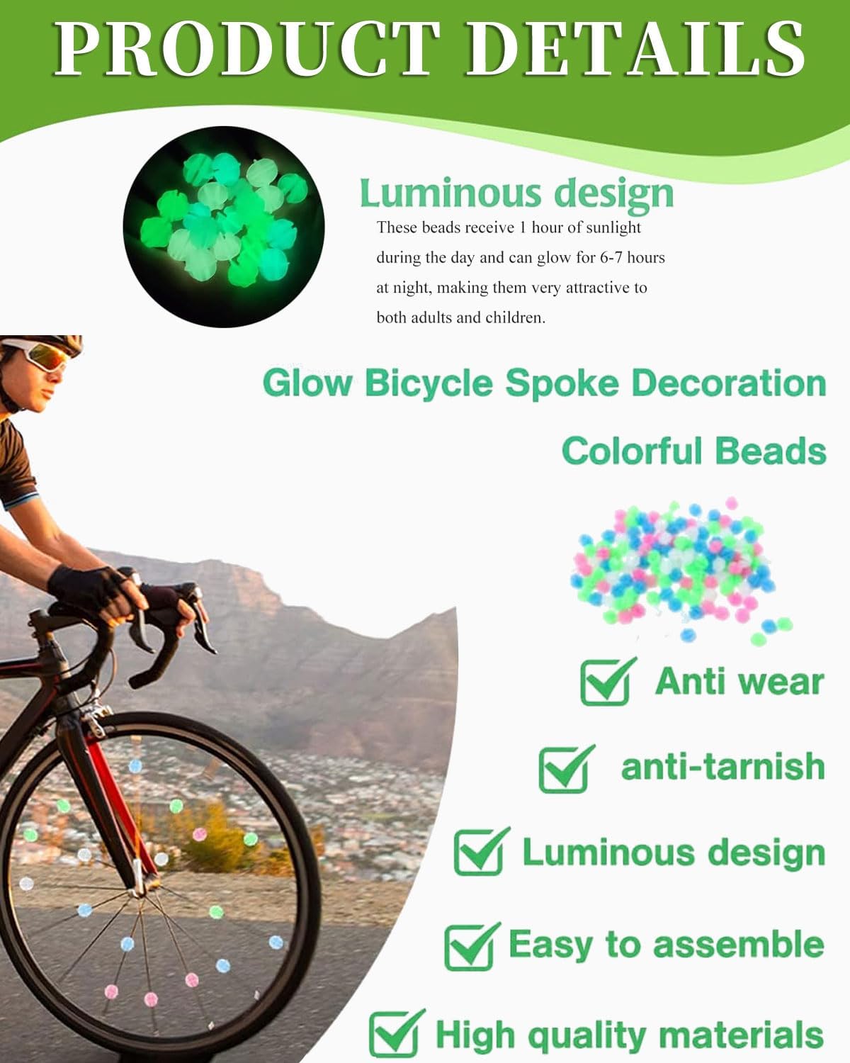 MATERIALE DI ALTA QUALITÀ: i clicker per raggi di bicicletta per bambini lucidi sono realizzati in plastica di alta qualità, resistente e non facile da deformare e sbiadire. È resistente alla pioggia e al sole, il che lo rende adatto per uso interno ed esterno. Perline che si illuminano al buio: catarifrangenti per raggi da bici per bambini molto carini che si illuminano per 6-8 ore di notte. Crea un bellissimo paesaggio stradale e alleggerisci qualsiasi umore. FACILE DA INSTALLARE: basta agganciare le perline dei raggi ai raggi della bici di tuo figlio per convertire le ruote in pochi secondi. Gli accessori per bici per bambini sono facili da installare e rimuovere e si adattano alla maggior parte dei raggi per bici standard. Applicazione: le clip per raggi per bici per bambini sono compatibili con la maggior parte dei raggi per bici. I fili di acciaio inferiori a 1 cm possono essere installati con perline di questo colore, facilitando l'installazione su bici da strada, mountain bike, bici per bambini, ecc. REGALO: questo accessorio per bicicletta per ragazze e bambini è un regalo ideale per i tuoi bambini. Può essere installato sulle ruote anteriori e posteriori della tua bicicletta. Questo set di decorazioni per raggi di bicicletta aggiungerà divertimento al tuo viaggio in bicicletta.