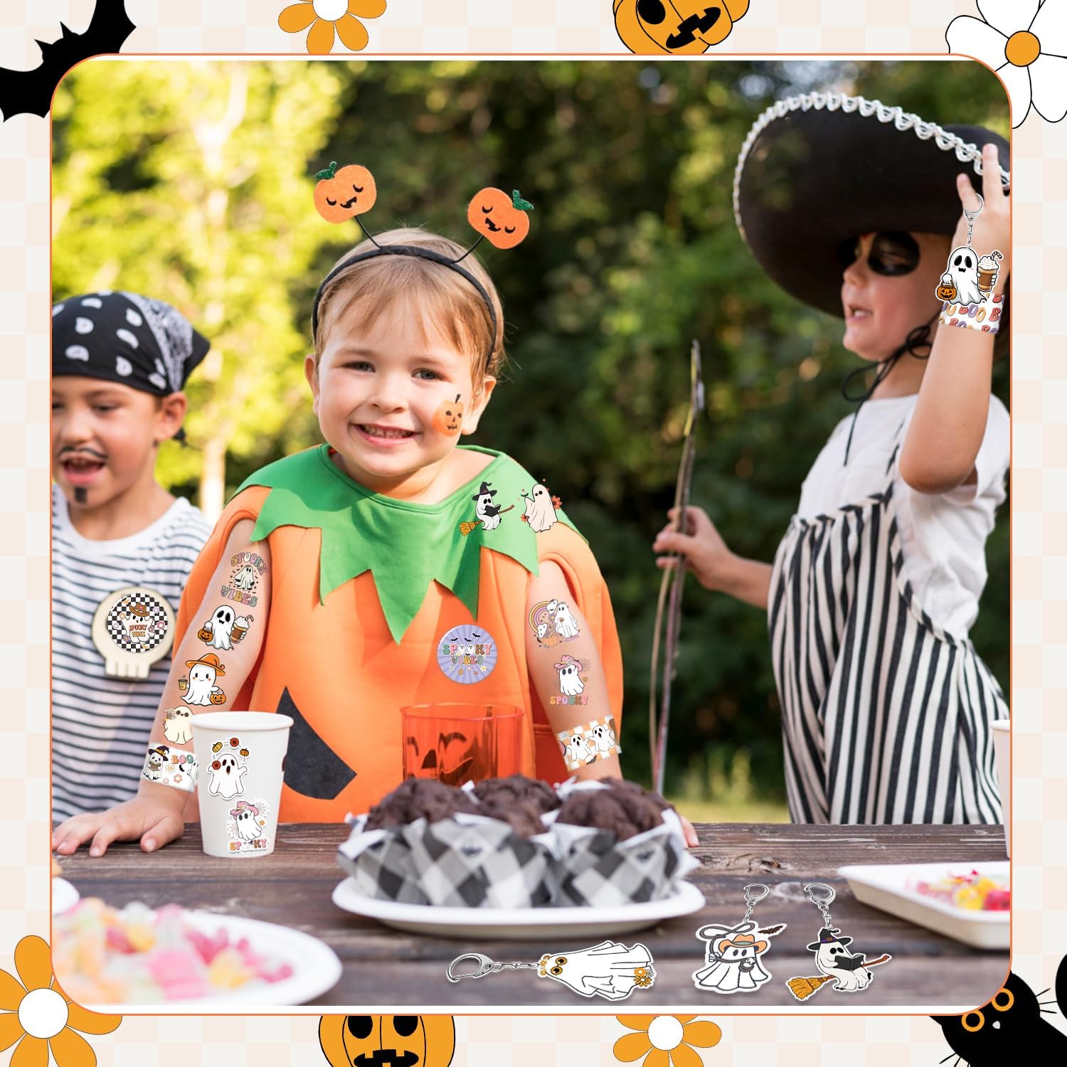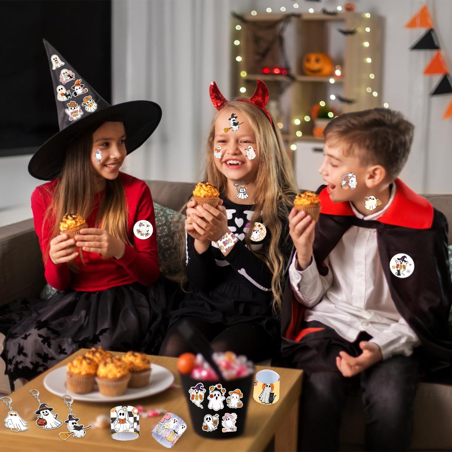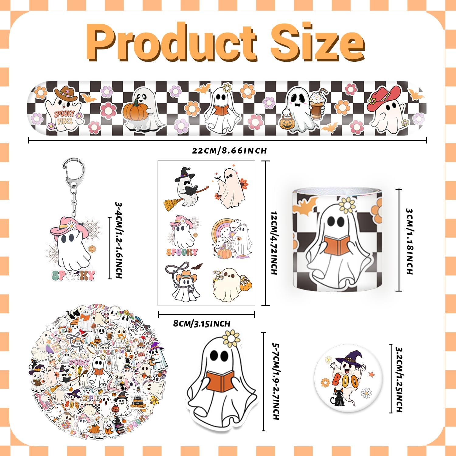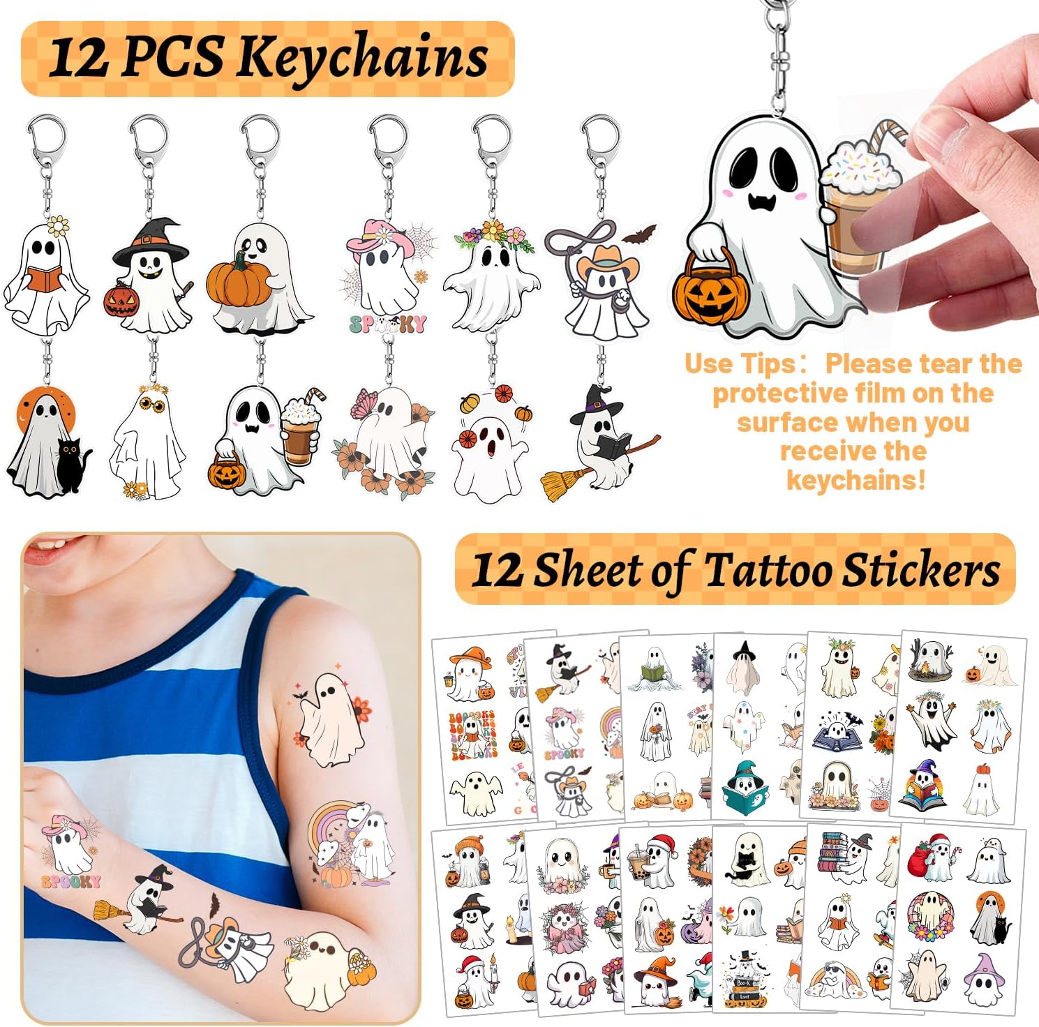 Simpatici bomboniere per feste fantasma: la nostra confezione include 12 fogli di tatuaggi temporanei fantasma, 12 simpatici braccialetti fantasma, 60 adesivi fantasma, 12 portachiavi in acrilico fantasma, 12 simpatici badge fantasma, quantità sufficiente per soddisfare le tue esigenze di festa fantasma Design unico e romanzo: le nostre decorazioni per feste fantasma sono progettate con vari simpatici motivi fantasmi che hanno diverse espressioni facciali e una postura carina, con colori vivaci, dall'aspetto bello e vivace, adatto per i bambini come premi in classe, premi di gioco. Le forniture per feste fantasma sono ideali per creare un'atmosfera spettrale e memorabile che lascerà i tuoi ospiti in soggezione Materiale e design affidabili: i nostri bomboniere di Halloween sono realizzati in materiale sicuro e innocuo e anallergico e stampati in HD con motivi chiari e colori vivaci. Il design squisito creerà un'atmosfera carina e divertente, renderà la tua festa a tema fantasma di Halloween più attraente Decorazioni per feste di Halloween: che si tratti di una festa di compleanno o di una festa a tema fantasma di Halloween, queste simpatiche decorazioni per feste di compleanno fantasma porteranno sicuramente applausi e gioia a tutti i soggetti coinvolti. Le decorazioni per feste di compleanno di Halloween possono portare un'atmosfera divertente e creativa alla tua festa, che si distinguerà sicuramente alle feste e diventerà un ottimo regalo per la tua festa Ampia applicazione: queste simpatiche decorazioni fantasma sono perfette per bomboniere fantasma, bomboniere di Halloween, feste fantasma, feste di Halloween, feste di compleanno fantasma, feste di compleanno di Halloween, riunioni di famiglia, riempitivi per sacchetti di goodie, premi in classe e molto altro ancora. Inoltre, questi simpatici accessori per feste fantasma sono anche molto attraenti per l'uso quotidiano, graziosi accessori per gli amanti dei fantasmi