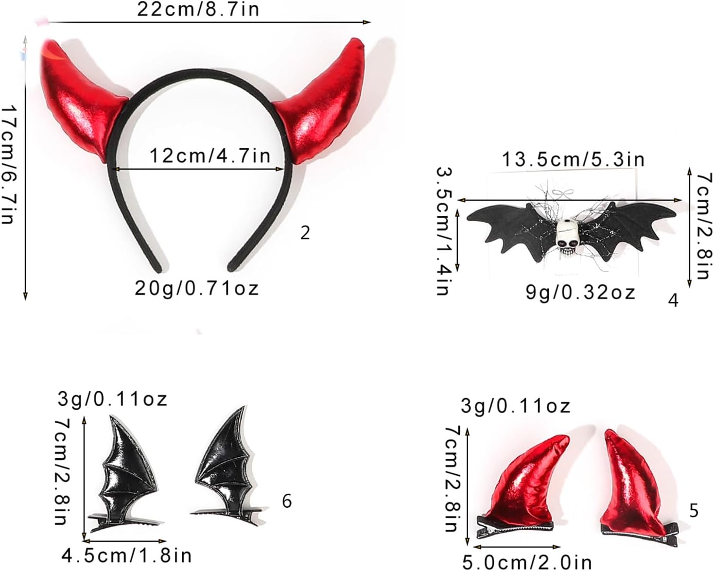 Composto da componenti di buona qualità, decorato con nastri e grandi corna di mucca Durevole e confortevole, facile da collocare con varie acconciature Adatto per varie occasioni come feste, festival musicali, Halloween, può aggiungere evidenziazione al look generale e mostrare stili di personalità Adatto per i giovani che amano lo stile della personalità e gli appassionati di tendenza che perseguono la moda e l'unicità Piccole ali di teschio diavoli con stili unici, personalità alla moda, aggiungendo fascino
