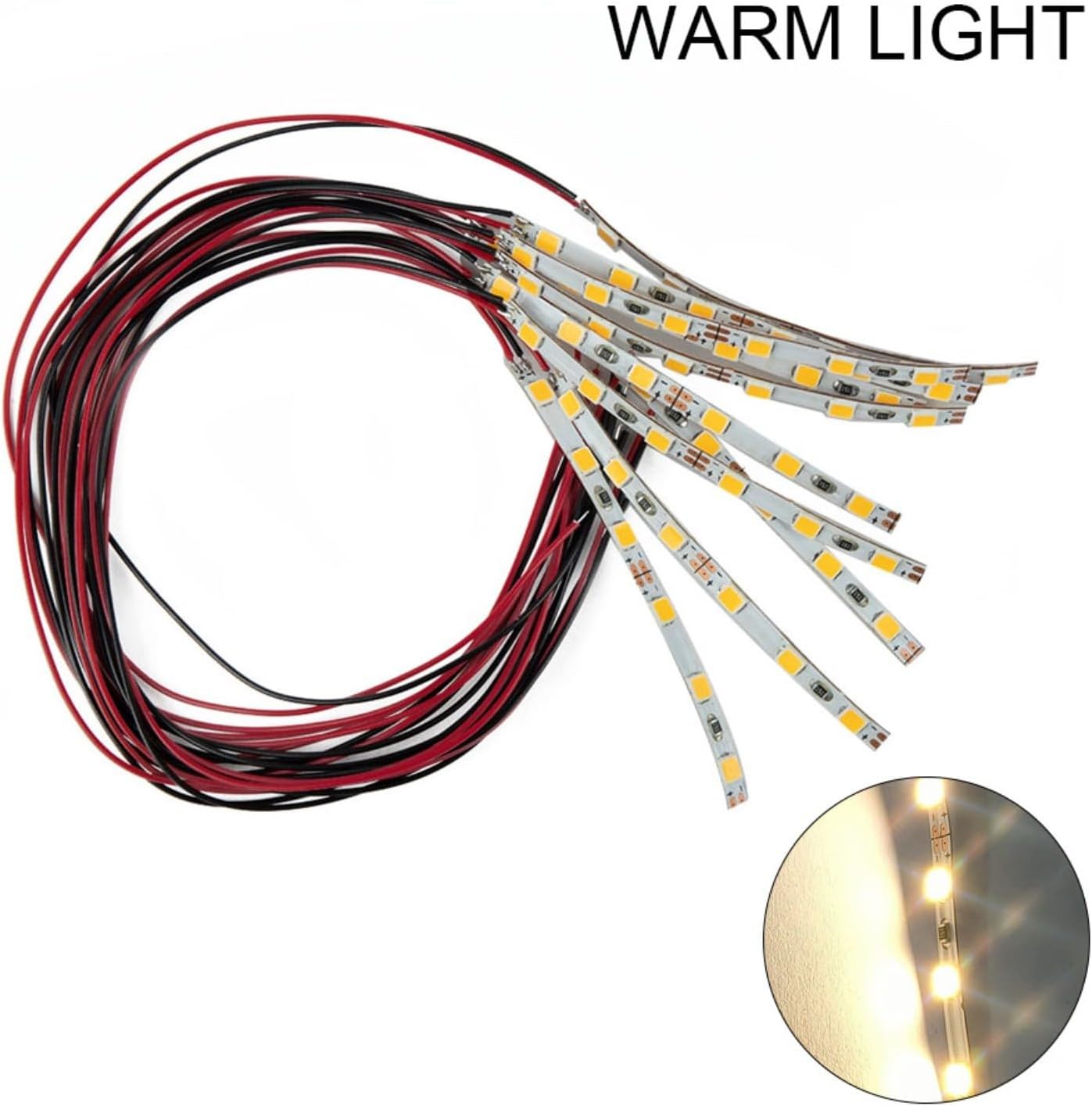 Striscia luminosa a LED: questa striscia luminosa a LED è progettata con 6 strisce bianche precablate per LED SMD, fornendo un'illuminazione uniforme con un angolo di visione di 120°. Garantisce un'eccellente illuminazione per case delle bambole, stanze in miniatura o accessori laterali per binari ferroviari modellini. Compatibilità con tensione: con una gamma di tensione diretta di 12 V ~ 18 V, questa striscia luminosa a LED è compatibile con fonti di alimentazione CA e CC. Offre flessibilità nell'adattamento a diverse configurazioni di alimentazione. 【Comodo e flessibile】Caratterizzato da un design autoadesivo, questa striscia luminosa a LED è e può essere fissata in modo flessibile a varie superfici. Il suo cavo lungo 20 cm offre un'ampia lunghezza per un comodo posizionamento. Opzioni di luce calda o bianca: è possibile scegliere tra luce calda e luce bianca in base alle proprie preferenze e all'atmosfera desiderata. Entrambe le opzioni garantiscono un'illuminazione chiara e vivace.