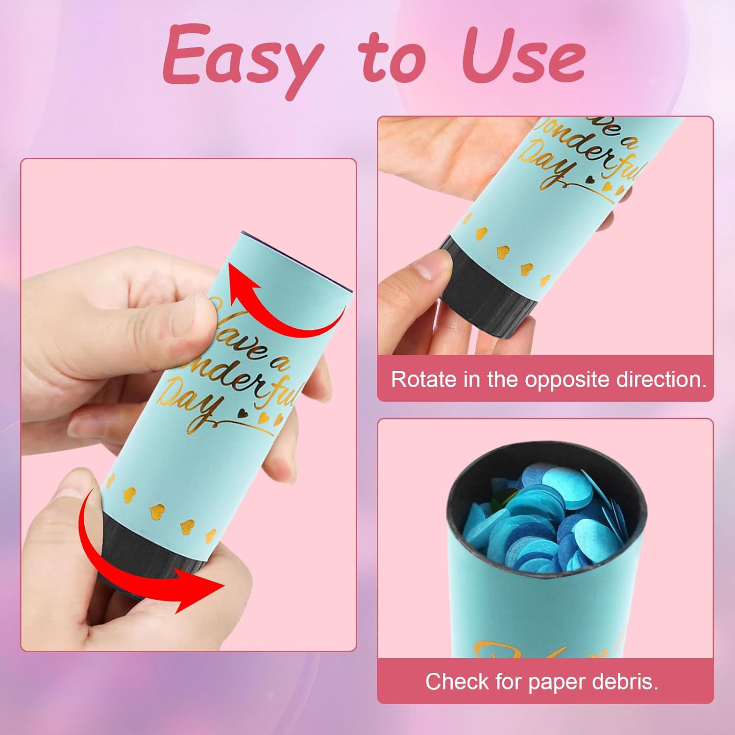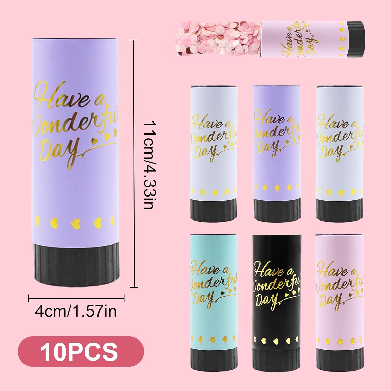 🎉 Set di 10 Spara Coriandoli Manuali:Nel pacchetto riceverai 10 spara coriandoli per matrimonio/ feste, con un diametro di ~4 cm e un'altezza di 11 cm. Taille compatta e leggera, facile da impugnare con una mano — perfetto per uso individuale o in gruppo durante le celebrazioni. 🎉Materiale Del Prodotto: Realizzati in plastica resistente e carta riciclata: i coriandoli in carta sono biodegradabili, rispettosi dell’ambiente e sicuri per adults e bambini (sotto supervisione). Adatti a eventi indoor (sale ricevimenti, case) e outdoor (giardini, spiagge) — senza lasciare detriti persistenti. 🎉 Facile da Usare: Nessuna complicazione: basta premere il meccanismo con un clic per rilasciare i coriandoli in pochi secondi. Senza pile, senza attrezzi o preparazioni — accessibile a tutti, ideal per sorprese spontanee (es. cutting del torte, entrata della sposa). 🎉 Design Colorato : I coriandoli offrono una palette di colori vibranti, creando effetti visuali spettacolari che illuminano l’atmosfera. 🎉 Ampi Scenari di Uso: Perfetto per matrimoni, compleanni, San Valentino, anniversari, baby shower, lauree o feste tra amici. Funziona sia all’interno (senza rischi di vento) che all’esterno — aggiunge joie e colore a ogni momento speciale da ricordare.