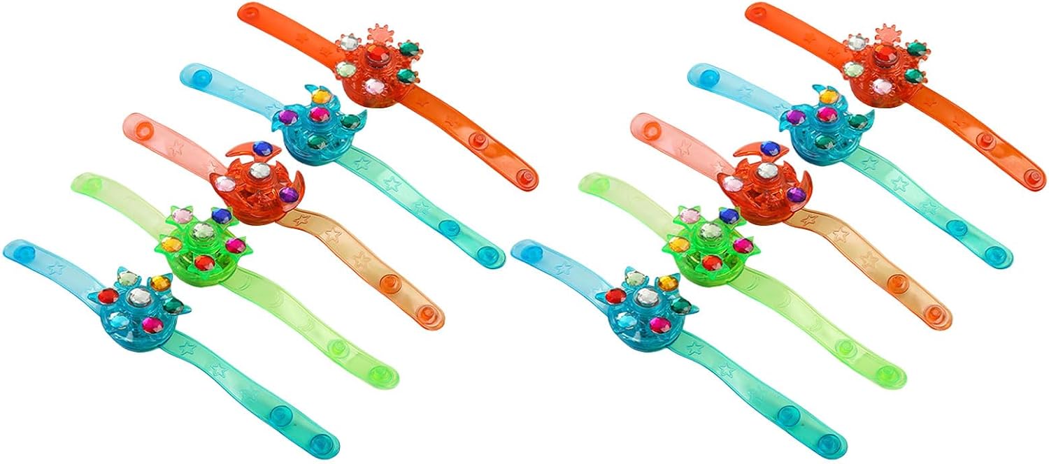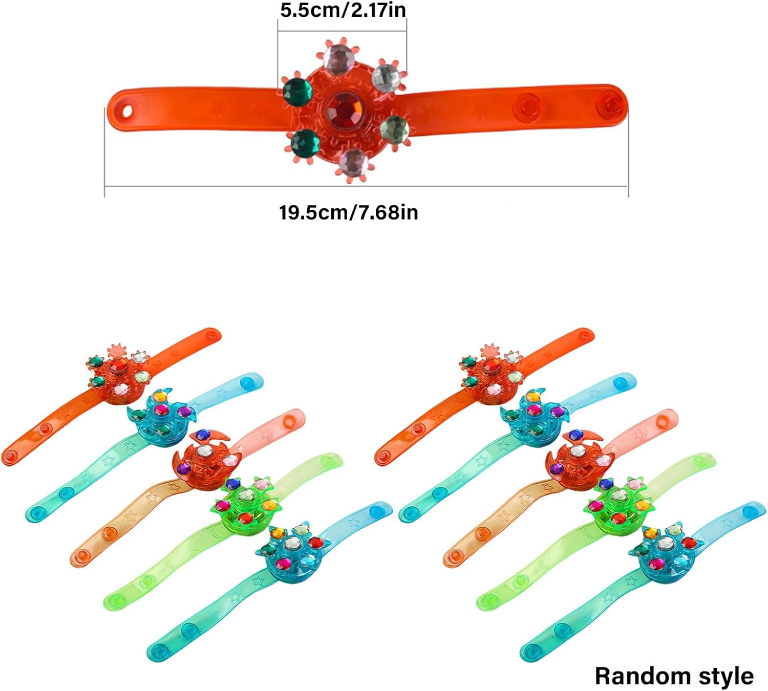 Il brivido dei nostri braccialetti luminosi con parte superiore rotante creativa lampeggiante, con disegni luminosi che si illuminano Realizzato in PVC, questi giocattoli sono progettati per resistere al gioco attivo, rendendo eccellente per coloro che cercano esperienze uniche e divertenti Perfettamente adatto per bambini, adolescenti e adulti che amano giocattoli coinvolgenti e interattivi Ogni confezione contiene 10 stili assortiti casualmente, garantendo sorprese e facile portabilità per il divertimento in viaggio Per gli appassionati di feste e partecipanti alle attività all'aperto, questi giocattoli luminosi aggiungono eccitazione a feste di compleanno, celebrazioni di festival, viaggi in campeggio e corse notturne