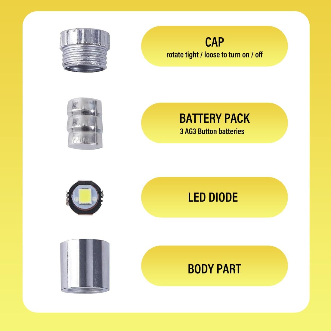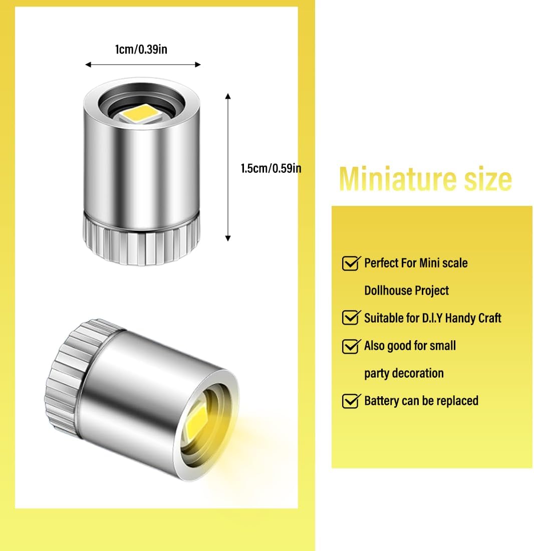 Robusto e Durevole: Le mini luci led a batteria sono realizzate con materiali di alta qualità che le rendono robuste e durevoli. Sono dotate di 3 batterie a bottone che garantiscono una lunga durata e possono essere riutilizzate più volte per assicurare un'illuminazione duratura alle vostre decorazioni. Facile da Usare: Queste luci led a batteria non hanno pulsanti né cursori. Per accenderle o spegnerle, è sufficiente avvitare o svitare il coperchio. Quando le spegnete, reinserite la scheda isolante bianca. Facili e veloci da usare, sono ideali per ogni tipo di progetto decorativo fai-da-te. Dimensione Compatta: Ogni piccola luce LED misura circa 1,5 cm di altezza e 1 cm di larghezza. Il loro design compatto è perfetto per scenari in miniatura ed è ideale per decorare giocattoli in miniatura, modellini e progetti di artigianato. Luce Calda Bianca: Le luci LED a batteria emettono una luce calda bianca, morbida e piacevole, aggiungendo un'atmosfera accogliente alle vostre miniature o decorazioni. Alimentate da tre batterie AG3/RL41 (incluse), offrono una lunga durata di illuminazione e consentono la sostituzione delle batterie. Applicazioni Multiple: Queste lucine led decorative sono adatte per decorare scene in miniatura, lanterne di carta, palloncini, case delle bambole in miniatura, alberi di Natale, blocchi da costruzione e molto altro ancora. Possono anche essere utilizzate per vari progetti fai-da-te, dando vita alle vostre idee creative in modo vivace e brillante.