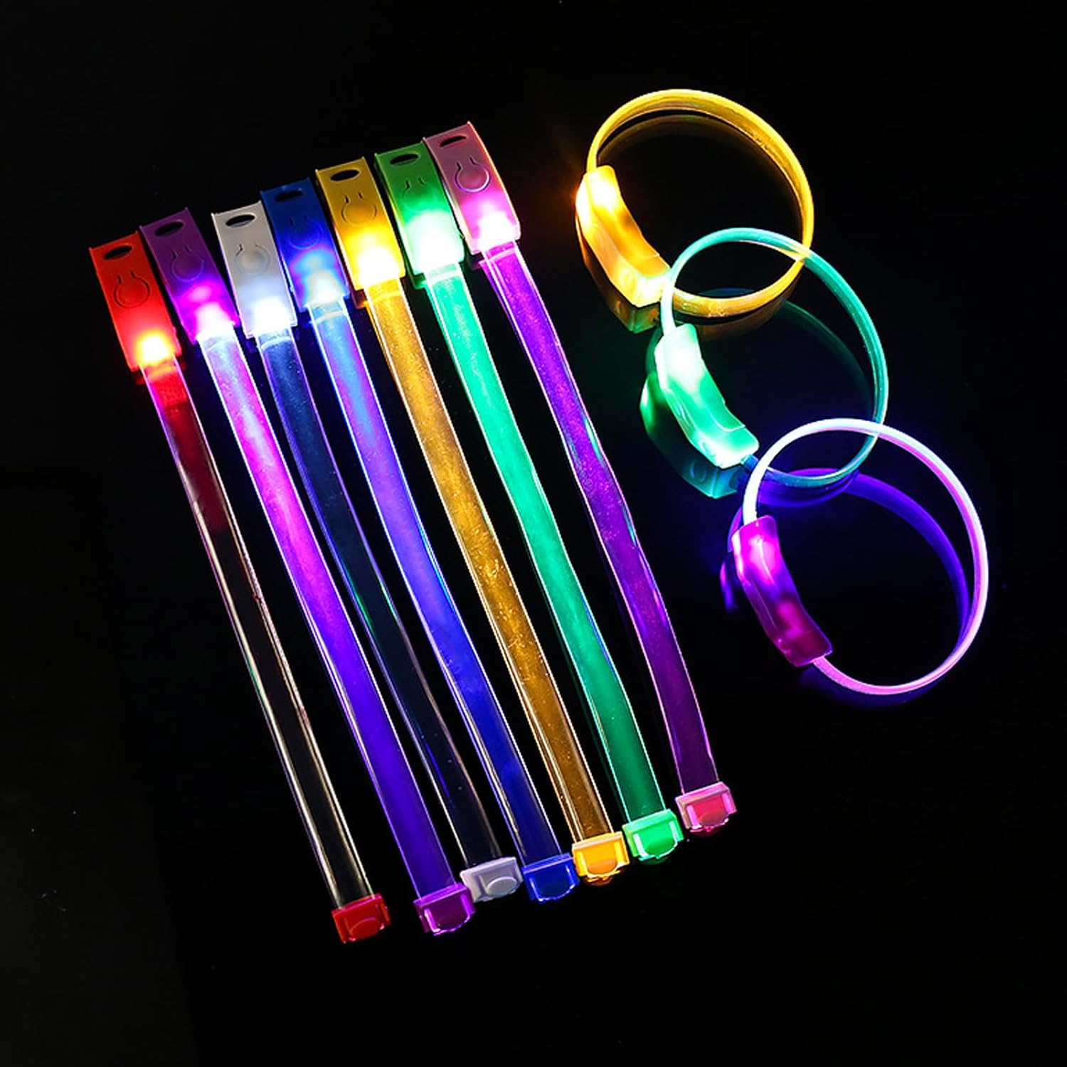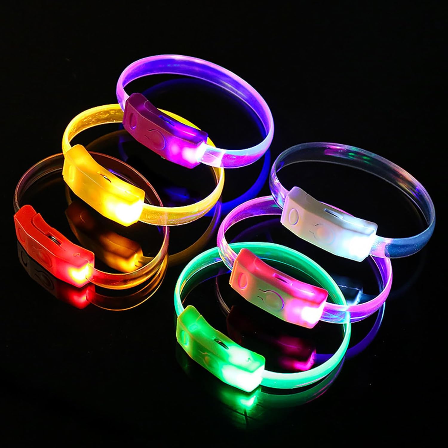 10pcs Multicolori LED Braccialetti Luminosi Braccialetti Per Compleanni E Raves Lampeggiante Fasce Da Polso Accessori Del Partito Caratteristiche: Illumina la tua notte con i nostri braccialetti luminosi a LED, presenta luci LED ad alta luminosità che garantiscono visibilità e migliorano e divertimento durante le attività notturne. Realizzati con materiali, questi braccialetti luminosi offrono una vestibilità comoda, per una lunga durata in qualsiasi evento. Adatto per bambini, adolescenti e adulti, soprattutto amanti delle attività all'aperto e frequentatori di feste. per corse notturne, festival musicali, feste di compleanno e qualsiasi occasione in cui aggiungere atmosfera o è essenziale. Questi braccialetti a LED sono un accessorio essenziale per le feste, portando eccitazione a qualsiasi riunione garantendo al contempo di rimanere visibile ed elegante. Specifiche tecniche: Componente Dimensioni: circa 21,6 x 1,5 cm. Colore: blu, rosso, rosa, giallo, verde, bianco, viola (7 opzionale). Quantità: 10 pezzi. Peso::95g La confezione include: 10 bracciali. Nota: 1. Si prega di considerare un margine di errore di 1-2 cm dovuto alla misurazione manuale. 2. A causa delle differenze tra i diversi monitor, l'immagine potrebbe non riflettere esattamente il colore reale. 3. Questi braccialetti offrono 3 modalità lampeggianti con la semplice pressione di un pulsante.