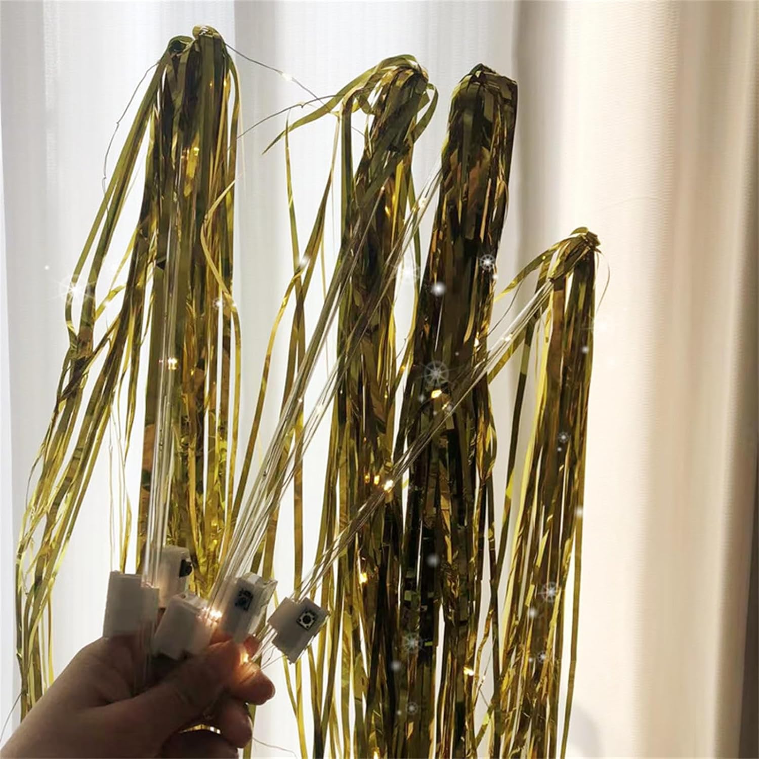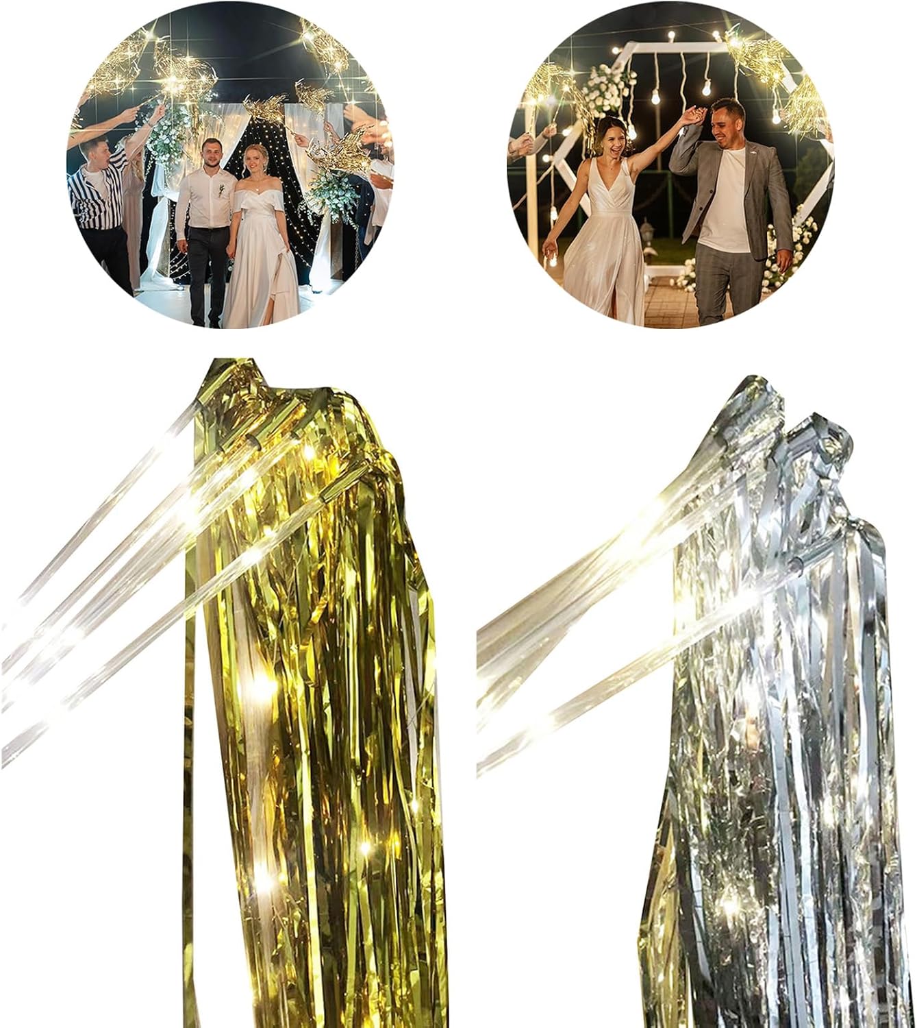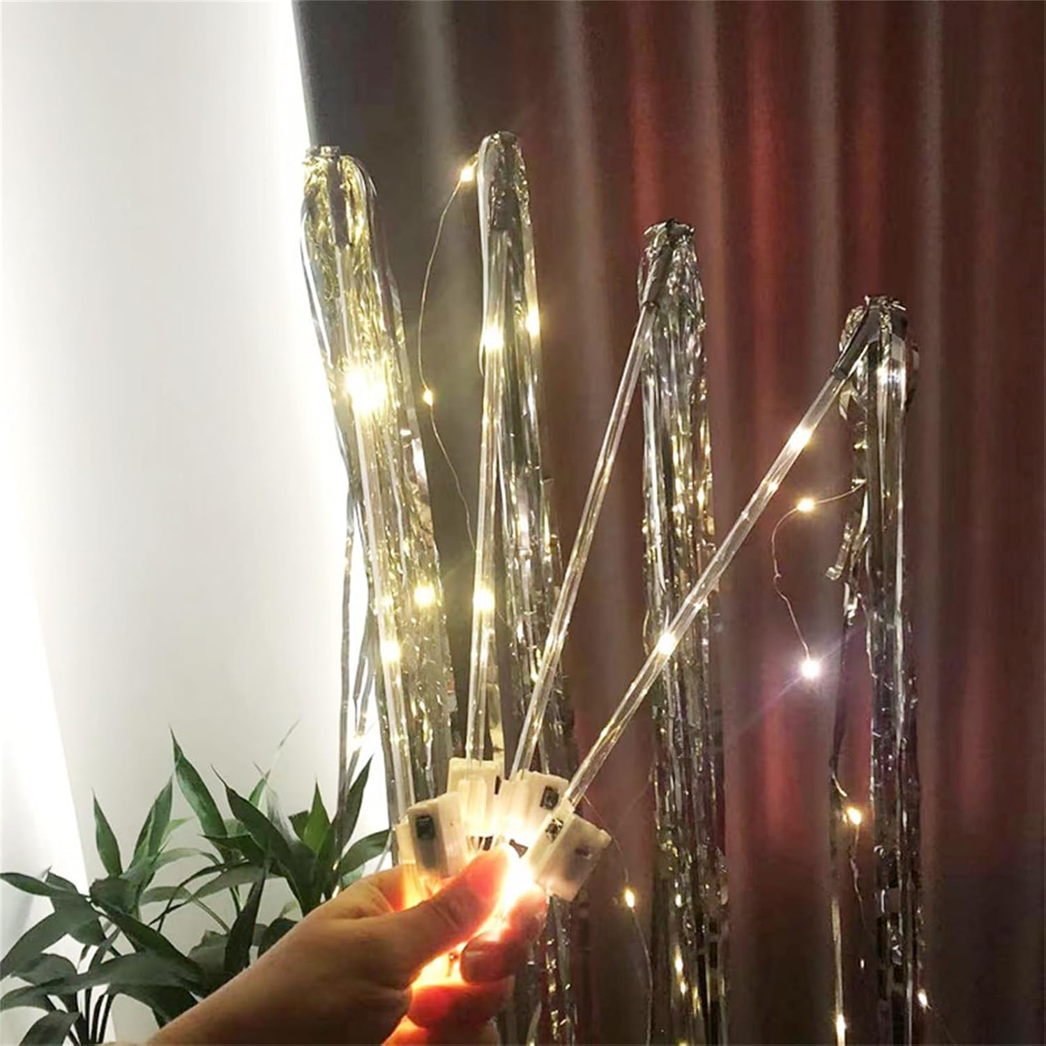 Ideale per bambini, adolescenti e adulti che amano decorazioni artigianali e attività di festa, queste bacchette soddisfano una vasta gamma di appassionati creativi Per migliorare l'atmosfera a matrimoni, feste di compleanno, eventi di Natale e attività notturne all'aperto, queste bacchette creano un'atmosfera da sogno con i loro caldi bagliori Gli orpelli colorati e scintillanti rendono questi bastoncini luminosi non solo un accento decorativo, ma anche un piacere attirare gli ospiti e creare ricordi duraturi Illumina il tuo evento speciale con la nostra bacchetta nuziale con LED bianco caldo, per aggiungere un tocco magico a matrimoni, compleanni e celebrazioni natalizie Ogni bacchetta è dotata di una luce LED da 100 cm e di un bastone in PVC trasparente da 30 cm, completato da orpelli da 50 cm, garantendo durata e facilità d'uso per le tue esigenze di festival