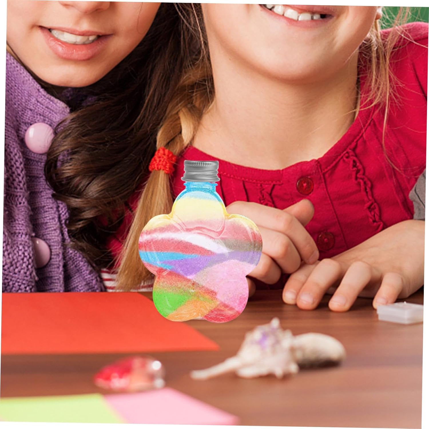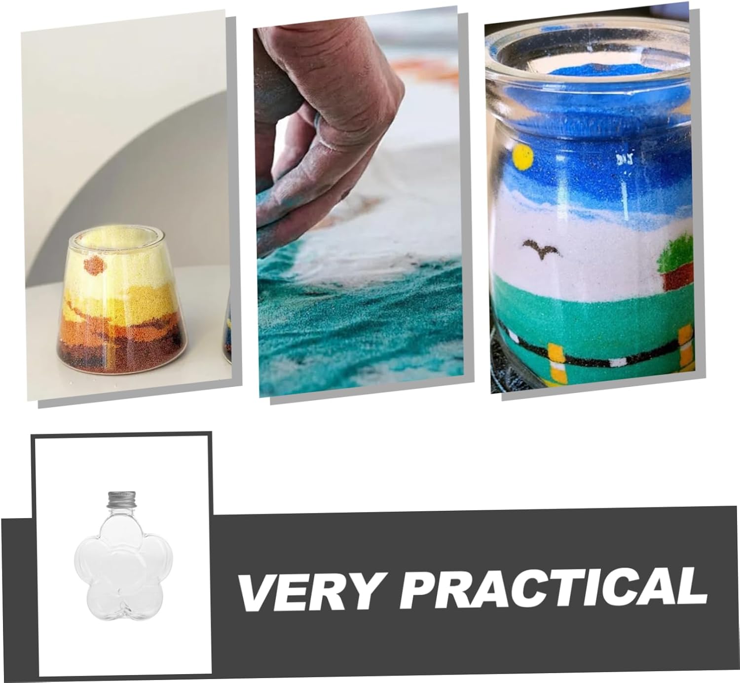 Design unico: bottiglia trasparente a forma di petalo con coperchio, che la rende visivamente accattivante e accattivante per tutte le età Divertimento fai da te: ideale per l'artigianato dei bambini, questa bottiglia per l'arte della sabbia incoraggia la creatività e migliora le capacità motorie Utilizzo versatile: ideale per matrimoni, feste di compleanno e celebrazioni varie, aggiungendo un tocco di romanticismo e gioia Prodotto squisito: con il suo design unico e la confezione elegante, è un prodotto eccellente per amici e parenti Materiale durevole: realizzata in plastica, questa bottiglia è resistente e facile da pulire, preservando i tuoi bellissimi ricordi per anni