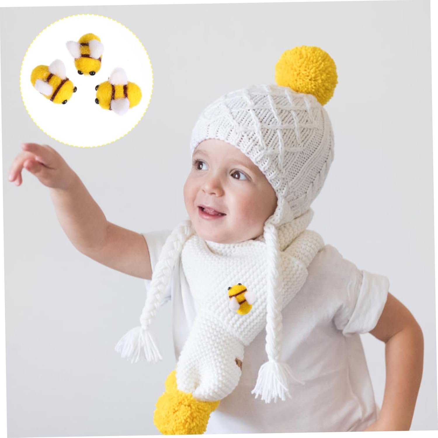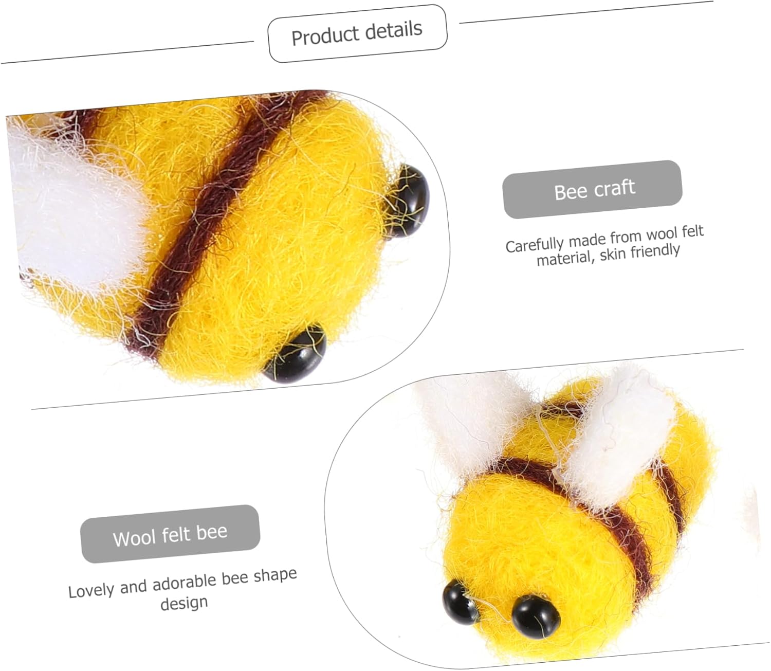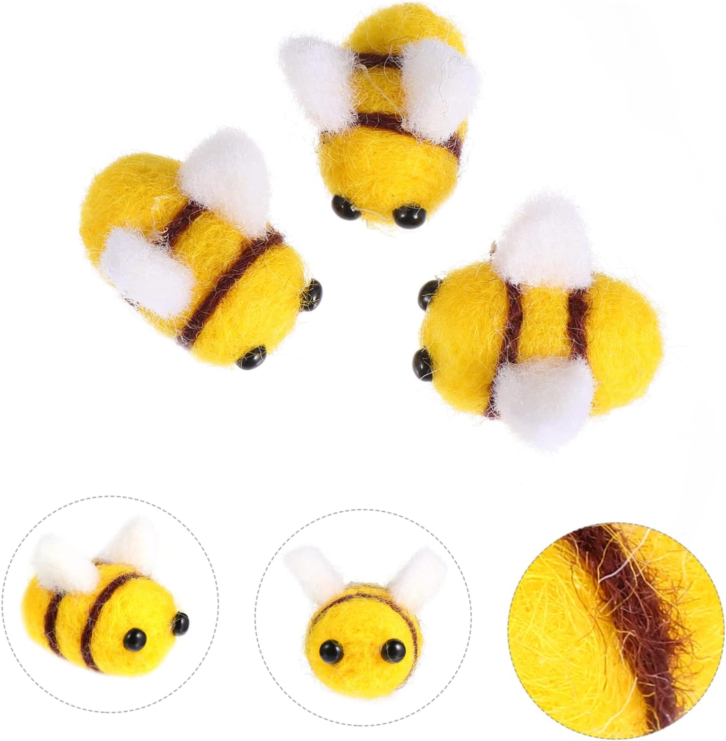 Decorazioni a forma di ape: riceverai 10 pezzi di adorabili palline di feltro a forma di ape in una confezione, quantità adeguata per realizzare adorabili oggetti artigianali, abbellimenti in feltro a forma di ape per l'artigianato Accessori per costumi da ape: queste palline di feltro non hanno fori per perline, ma sono disponibili per essere incollate o infilate insieme con un ago, feltro api Decorazione a forma di ape: installazione semplice, che può essere collegata ad altri oggetti con ago, filo o colla, api in feltro Api in feltro per bambini: puoi usare la colla per attaccarle a borse, decorativi, sciarpe, guanti, ecc., per realizzare oggetti artigianali fai da te, mini api in feltro per lavori artigianali Costume da ape - realizzato in feltro di lana, adatto per cucire e realizzare vari oggetti artigianali, feltro d'ape