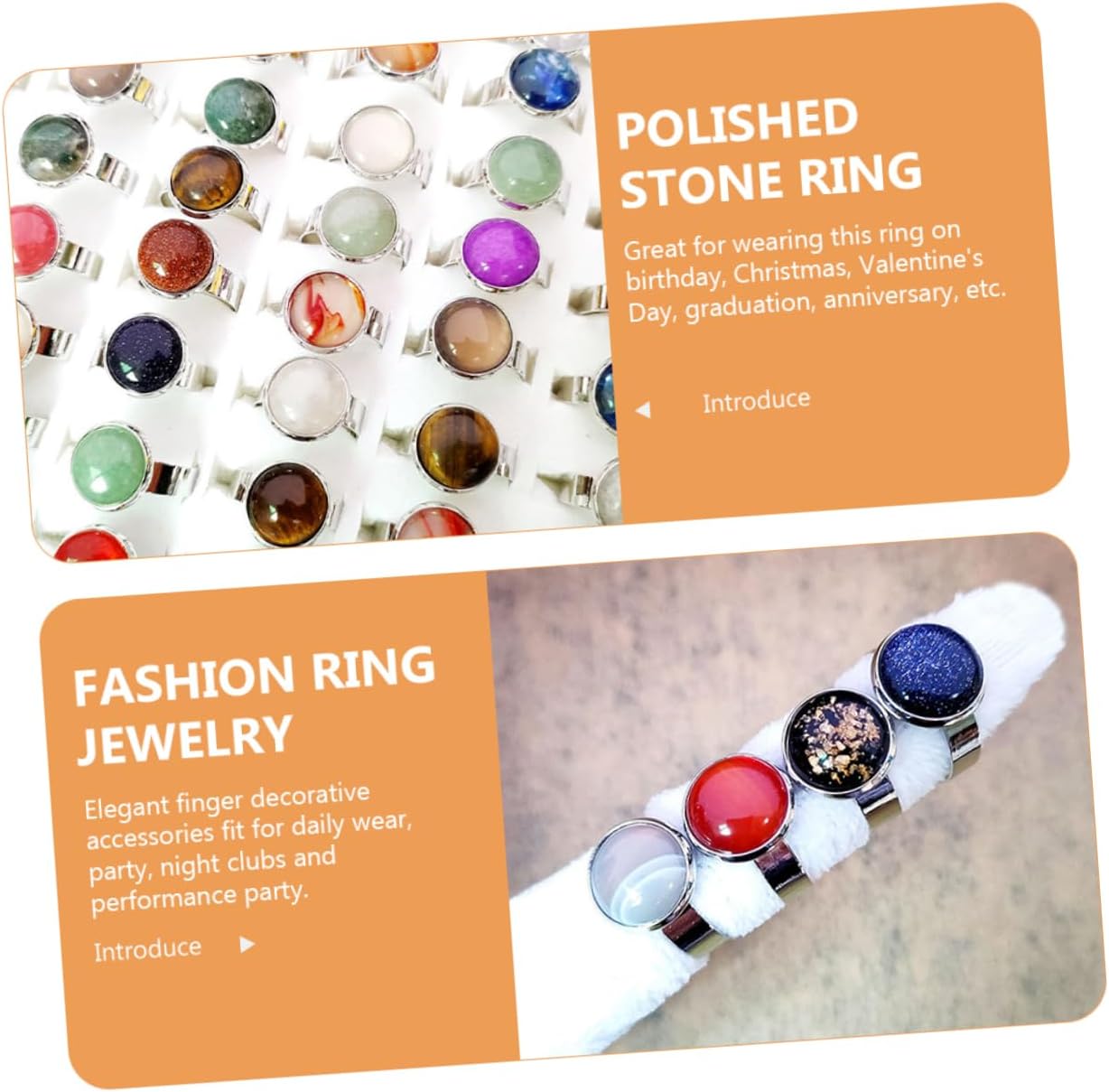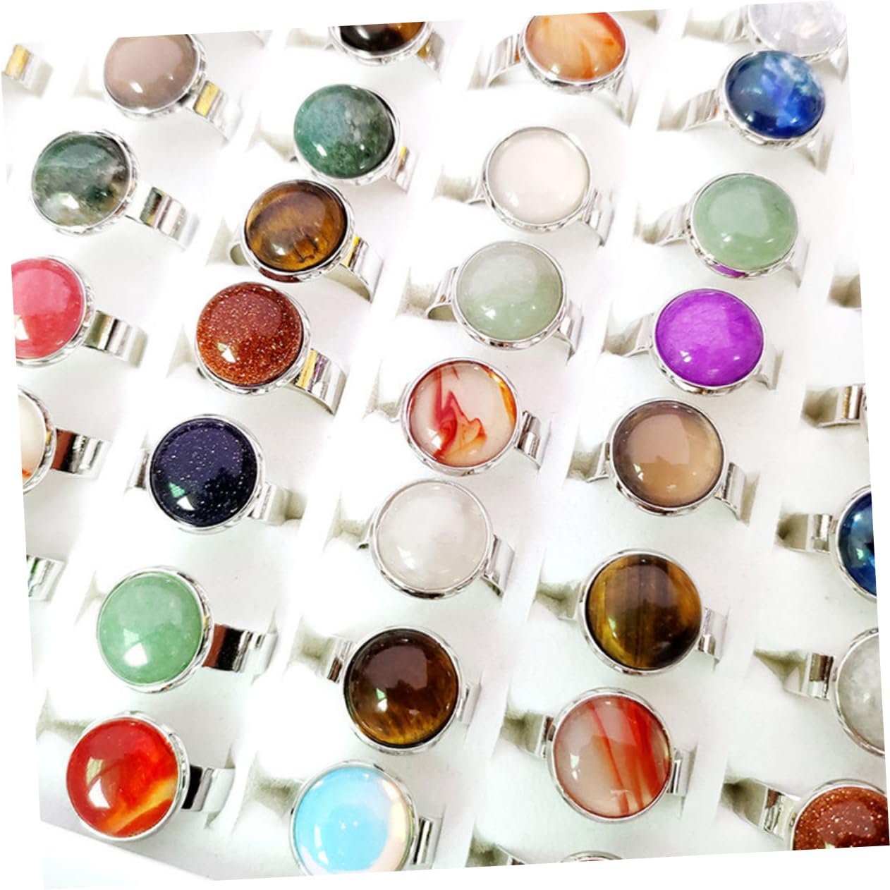dei pacchetti Caratteristiche -Materiale: lega, anello regolabile in pietra - Dimensioni: 2,60X2,40X1,20 cm/1,02X0,94X0,47 pollici anelli importanti per le donne -Colore: anello alla moda con colori assortiti Informazioni sulle merci anello gioiello Bello, personalità e tendenza aggiungono più fascino a te. anello aperto per donna L'anello aperto con pietra lucida accattivante è molto alla moda e attraente, adatto per essere indossato per lavoro, viaggi, matrimoni, cerimonie, lauree, appuntamenti e vocazioni, ecc.