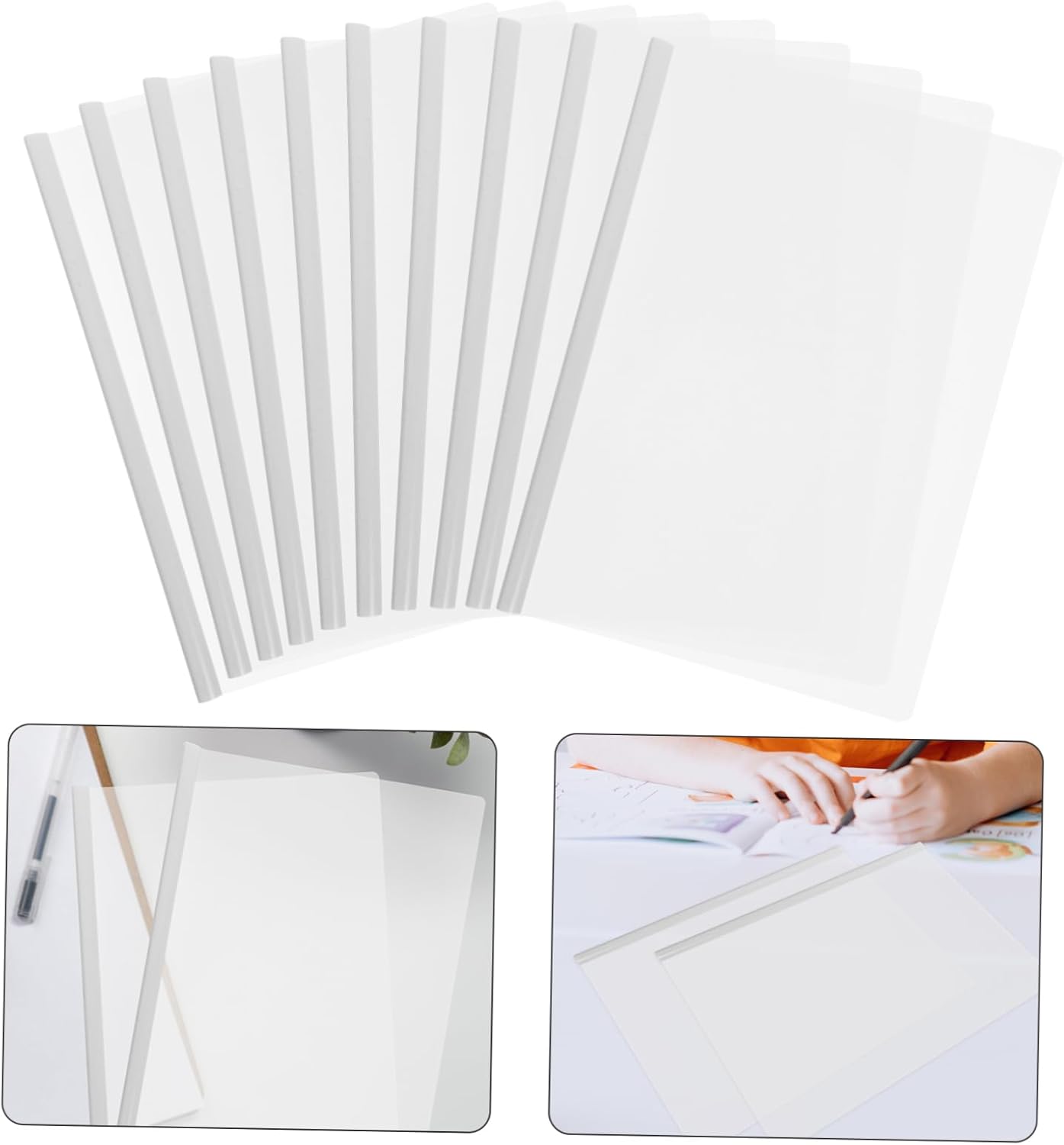 Clip di fissaggio dei file: la cartella documenti con barra scorrevole può classificare i tuoi file mantenendo le aree di lavoro ben organizzate, cartelle di carta Pratico e comodo per l'uso quotidiano: questo prodotto è progettato per essere pratico e comodo per l'uso quotidiano, cartelle di file, cartella di report Cartelle per curriculum: ideali per insegnanti, studenti, impiegati e chiunque abbia bisogno di portare con sé file, cartelle trasparenti Copertina trasparente per report: il buon materiale plastico e la lavorazione artigianale rendono le cartelle portadocumenti resistenti alla rottura e alla deformazione Cartella portadocumenti per curriculum: realizzata in buon materiale plastico, pratica e per un uso duraturo, raccoglitore di presentazione