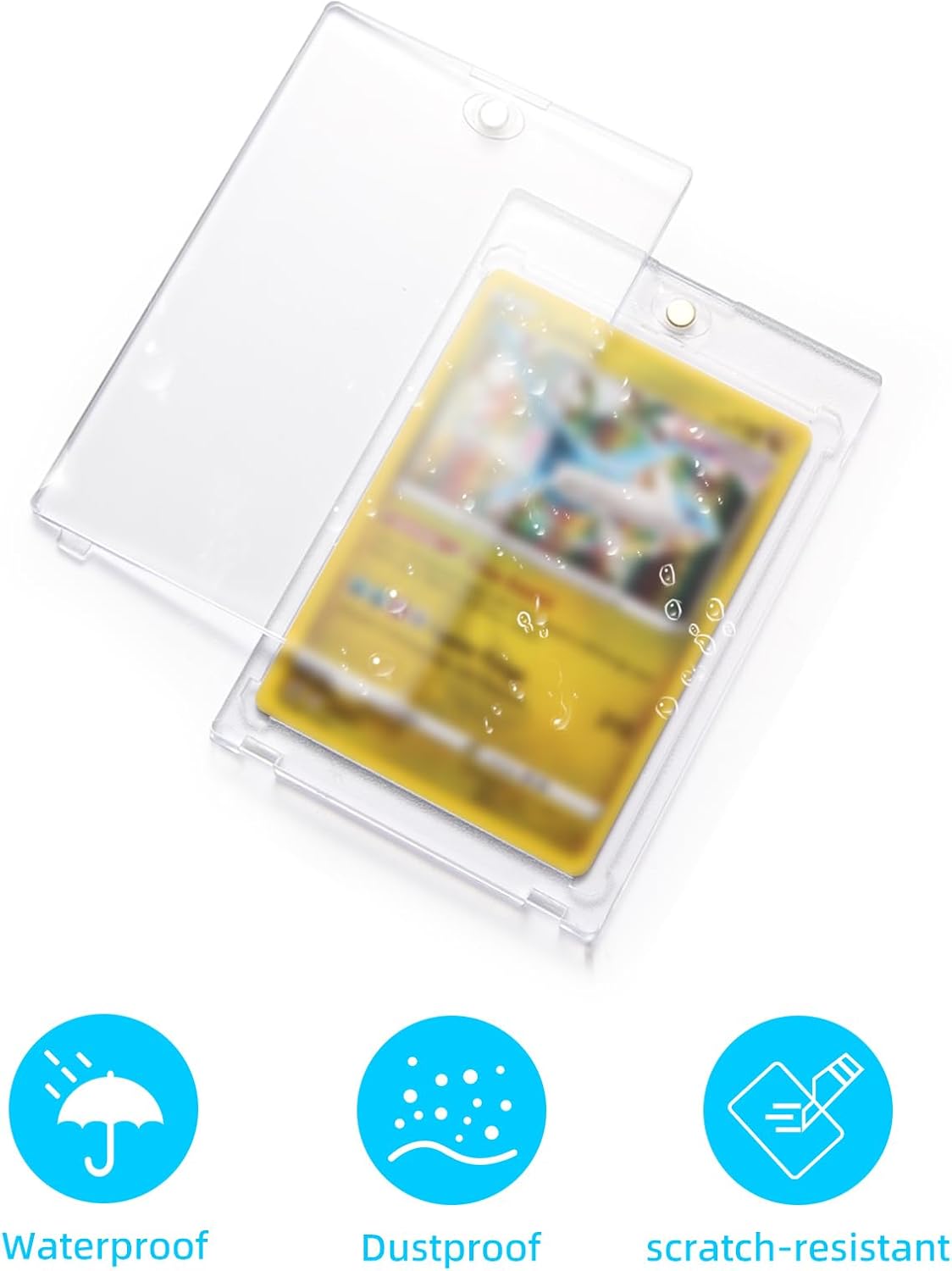 【Specifiche del prodotto】10x Clip magnetici 35pt. Dimensioni: 11x7,3x0,68 cm, adatti alla maggior parte delle carte da gioco, proteggono da cadute, piegature, polvere e impronte digitali 【Apertura/chiusura magnetica】La custodia utilizza magneti nella parte superiore per garantire una chiusura stabile delle due sezioni. Apertura/chiusura sicura senza strumenti né procedure complicate 【Protezione UV e angoli smussati】Le custodie bloccano i raggi UV per prevenire ingiallimento o sbiadimento delle tue collezioni. Angoli smussati per migliorare la protezione dei bordi delle carte 【Doppia faccia trasparente】Totale trasparenza su entrambe le facce, dettagli delle carte visibili senza doverle estrarre per ammirare la tua collezione 【Campo di applicazione】Adatto a quasi tutti i formati di carte, carte sportive e carte da scambio. Perfetto per conservare carte preziose o come premio per bambini