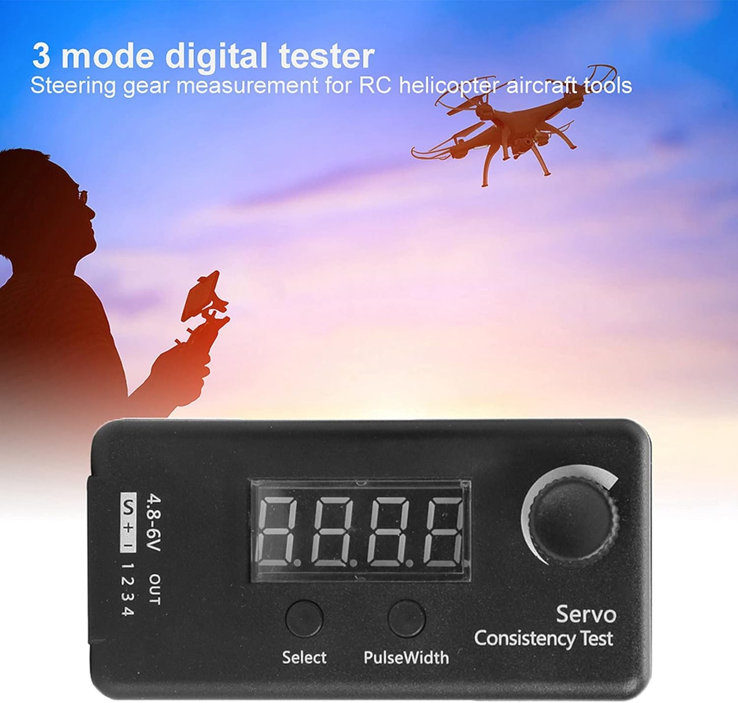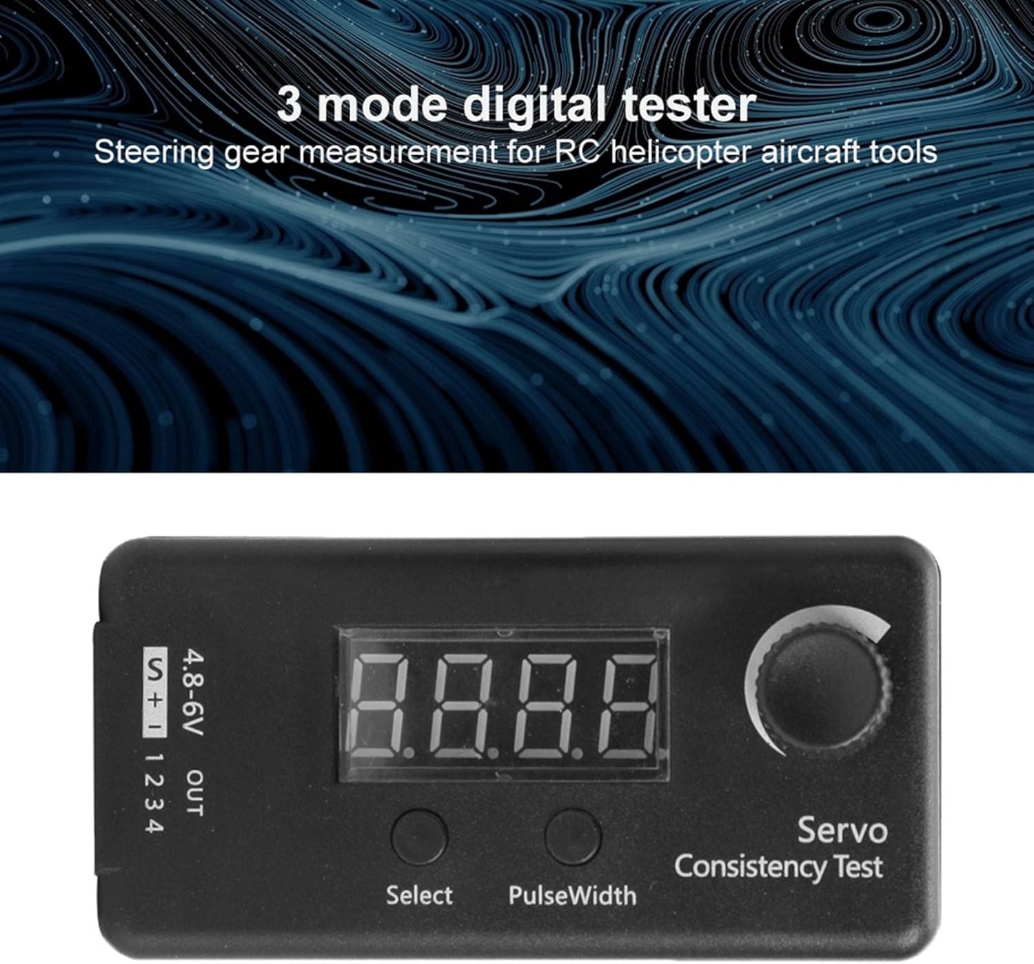 Test accurato: per confrontare il controllo della scatola dello sterzo del segnale di uscita del servosterzo, è possibile utilizzare una precisione di 2us (1 millisecondo = 1000 microsecondi). È possibile verificare se la scatola dello sterzo può reagire a piccole modifiche. Regolabile: potenziometro rotativo per ridurre o aumentare la larghezza dell'impulso di uscita. Test insieme: è possibile sincronizzare il controllo dell'uscita di 4 servi. Segnale PPM: con la funzione di test del segnale PPM sul display, il segnale di ingresso PPM cambia, mentre il segnale di ingresso PPM passa automaticamente a manuale (manuale). Ciclo del segnale servo analogico 20us 50H, frequenza 50Hz. 3: S-1 manuale (manuale) / S-2 bit (neutro) / S-3 automatico (automatico)