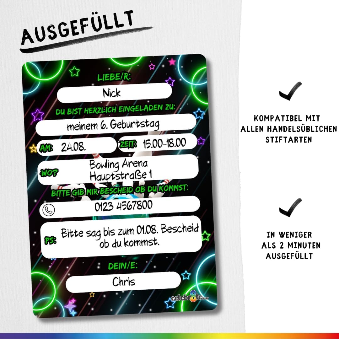 Motivo bowling – per tutti gli amici di bowling che hanno una preferenza per questo sport. Delizia tutti gli ospiti di compleanno con questo fantastico design. Si riempie in modo rapido e semplice: grazie ai campi indicati è super facile da riempire. In questo modo è possibile invitare anche gruppi di bambini più grandi in modo rapido e semplice Materiale di alta qualità: stampato su carta resistente da 350 g. La parte anteriore è rifinita con finitura lucida, mentre il retro rimane scrivibile con tutte le penne comuni Contenuto della confezione: 12 biglietti d'invito per bowling, di alta qualità, stampati in formato cartolina DIN A6 (148 x 105 mm). Made in Germany, stampa ecologica.