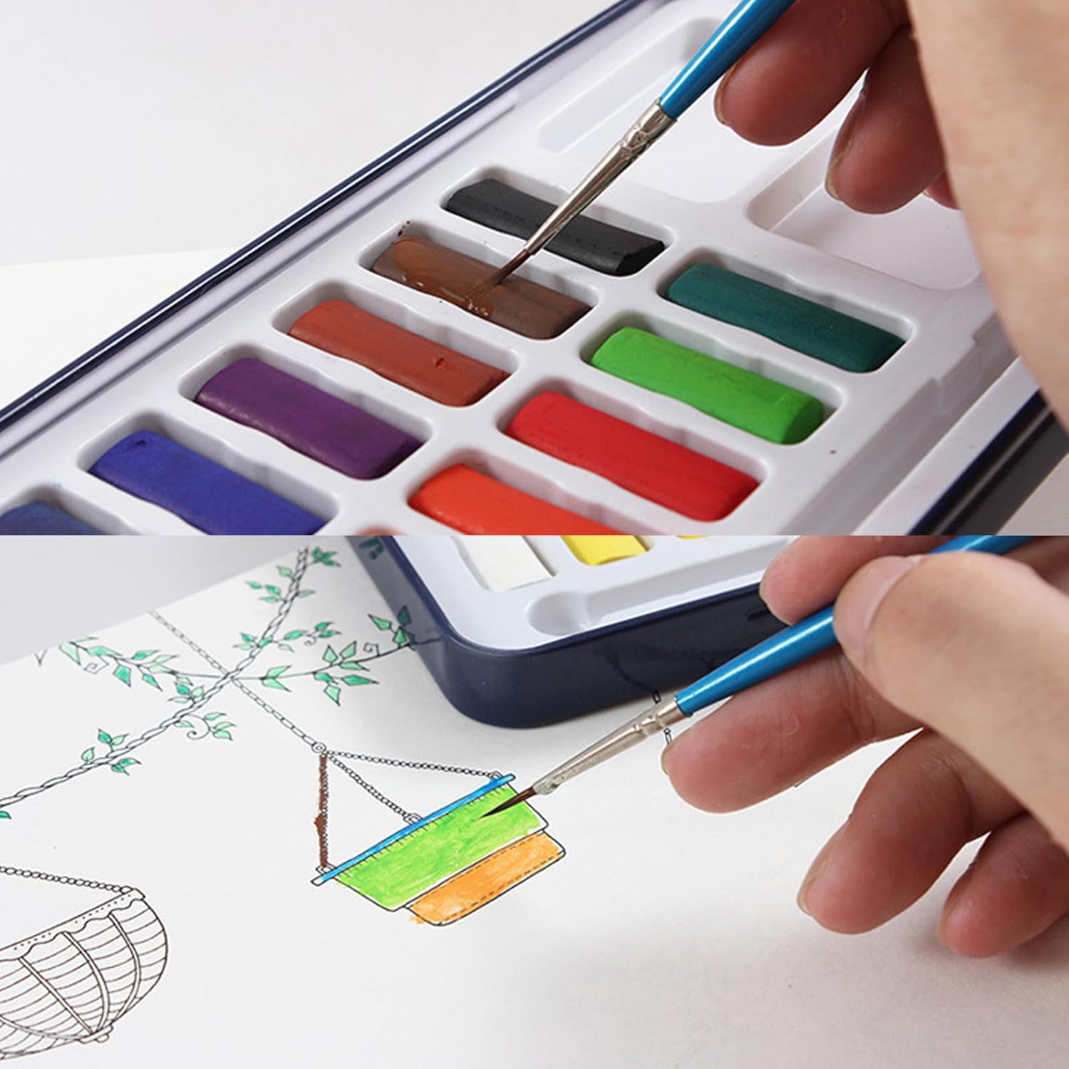 Questi acquerelli solidi professionali sono perfetti per tutti i pittori, principianti, artisti, studenti e bambini che dipingono su carta, tessuto, legno, pietra, artigianato. Grande aiuto per aggiungere e brillare le loro opere d'arte. 12 18 o 24 colori vivaci, la vernice ad acquerello ha un alto grado di colorazione, più brillante sotto una forte luce. Sia sulla carta bianca/nera, è molto piena di colore e fornisce un effetto brillante scintillante. La vernice solida è stata macinata finemente, solubilità rapida in acqua, grande diffusione, colore uniformemente miscelato, elevata resistenza alla luce e alta saturazione. Può essere facilmente miscelato con altri colori per effetti unici. Tutto ben organizzato in una custodia in metallo. Compatto e portatile. La sua consistenza liscia si asciuga in grassetto, funziona alla grande con penne a pennello e spugne per diversi effetti sorprendenti. pigmenti solidi acquerello, e sicuro, molto . Perfetto per vacanze, compleanni, Natale per studenti, principianti. Molto adatto per incoraggiare la passione dei bambini per l'arte e.