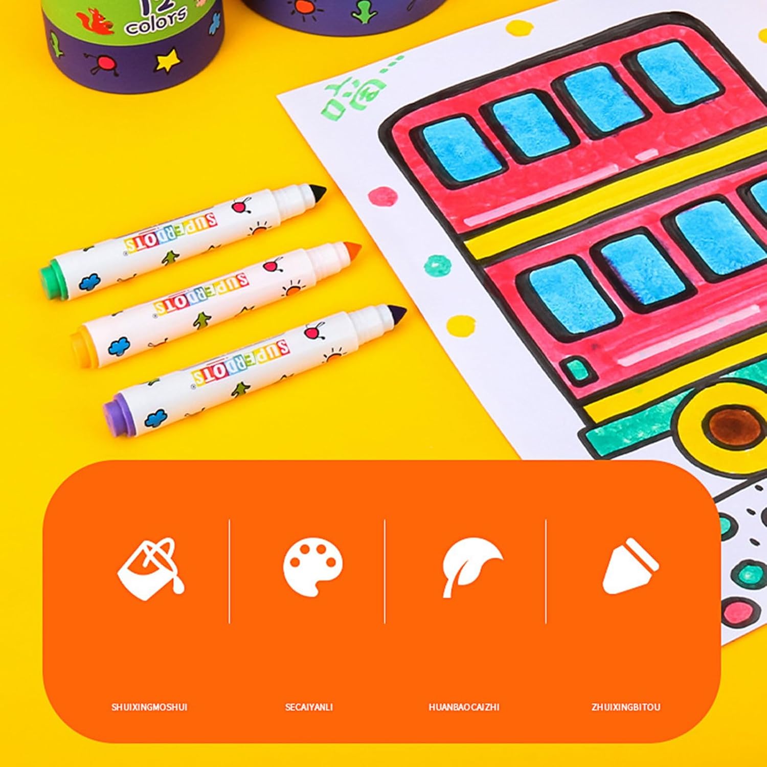 Con una scatola portaoggetti, puoi portare ovunque, andare a scuola, viaggiare, dipingere all'aperto Questi pennarelli ad acquerello offrono colori più ricchi e punte più flessibili. La confezione contiene 12/24/36 penne acquerellabili a colori Inodore e facile da lavare. Utilizzare acqua calda, con un po 'di sapone, sarà molto più pulito Questi pennarelli ad acquerello con punta larga, ideali per libri da colorare, scarabocchiare, manga e calligrafia artistica, regalo di compleanno, per bambini, studenti Colori vivaci, adatti per realizzare biglietti, scrapbooking, biglietti di Natale, biglietti regalo, inviti di nozze, biglietti di auguri, punti di evidenziazione, libri da colorare, disegni artistici